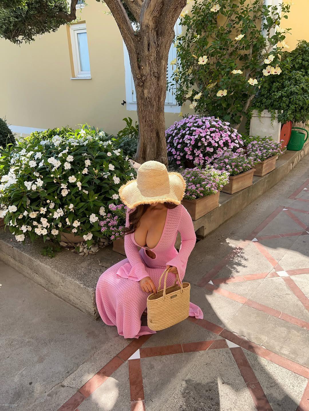 La estrella australiana de TikTok Ella Grace Cervetto aparece en un vestido rosa mostrando su escote.