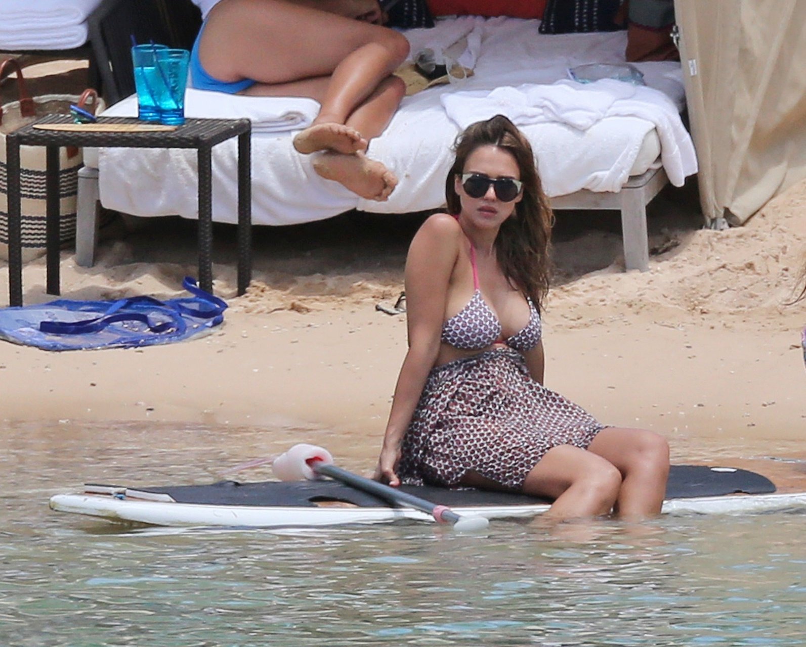 Jessica Alba llega a la playa con una pequeña pancita de embarazo. La estrella morena está de vacaciones con su familia, 17/07/2017.