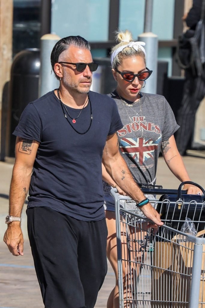 Lady Gaga lleva a su novio Christian con ella a hacer la compra en el soleado Malibu, 14/07/2018. La cantante pop de 32 años eligió usar tacones monstruosos y shorts para ir al supermercado.