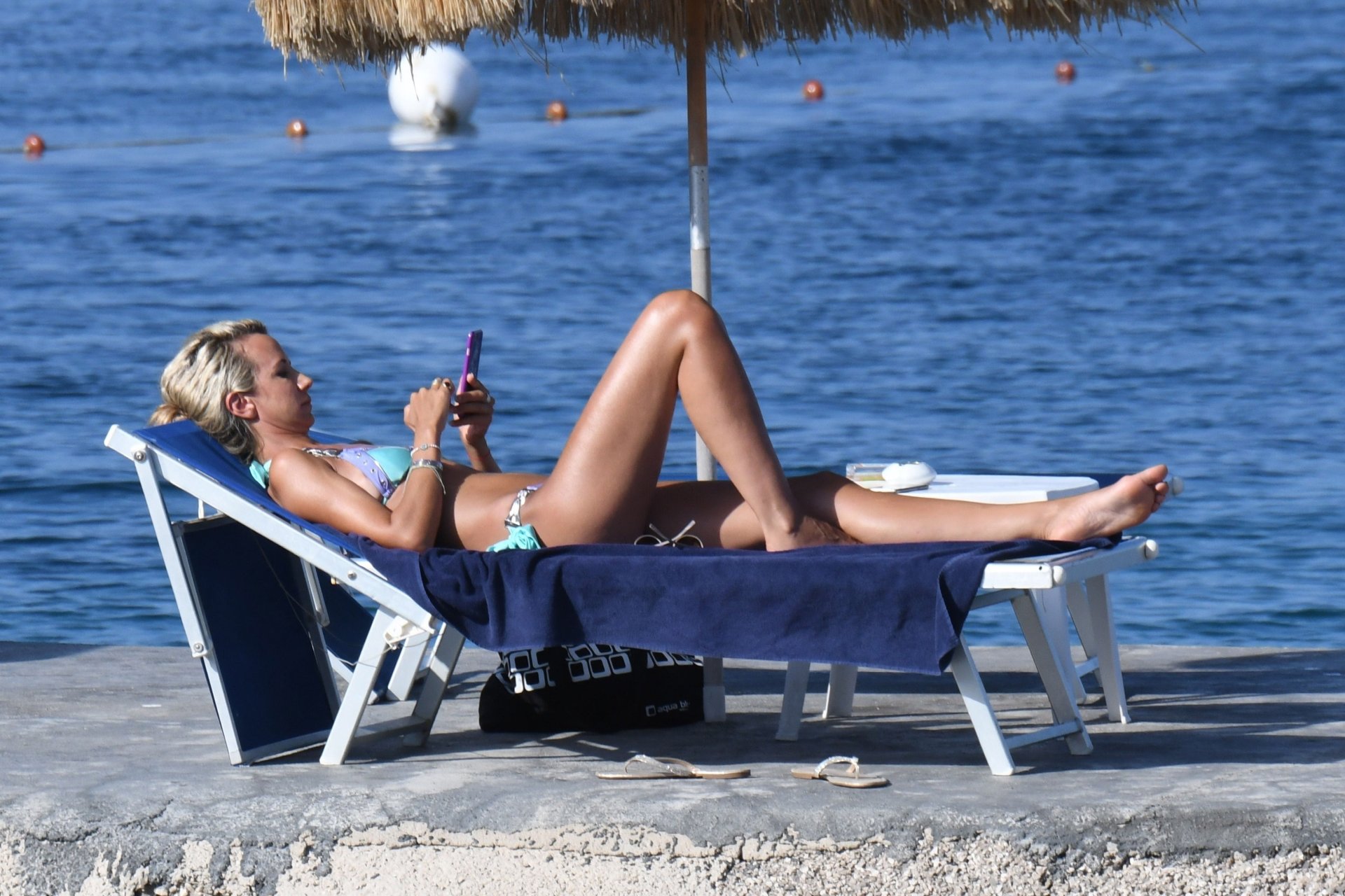 Lady Victoria Hervey se ve en bikini en el Hotel Regina Isabella durante unas vacaciones en Ischia, 21/07/2018. La rubia de 41 años mostró su cuerpo delgado a los paparazzi.