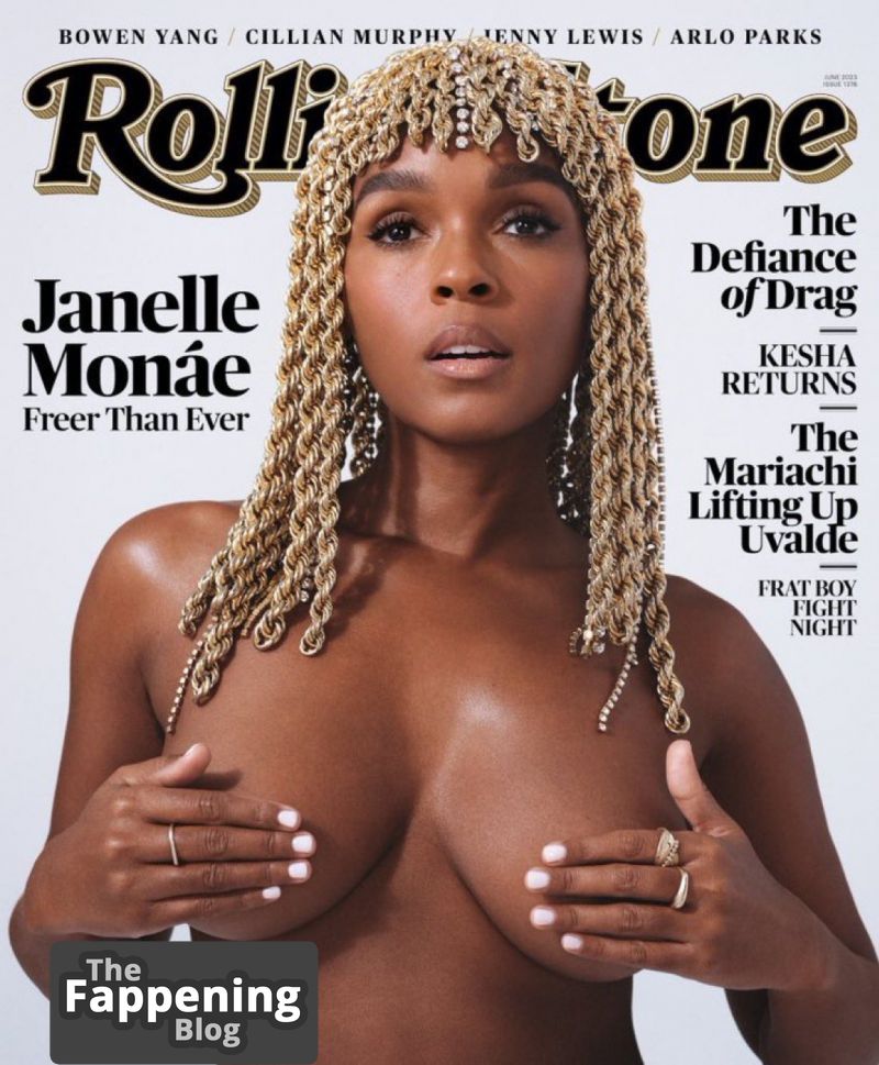 La colección de Janelle Monae está llena de contenido explícito, con fotos sin camiseta mostrando sus pechos, un amplio escote sin sostén, glúteos expuestos y su cuerpo de modelo ajustado en atuendos reveladores.