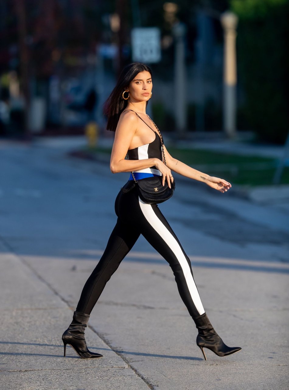 La diseñadora de trajes de baño Nicole Williams muestra su envidiable físico con un diminuto bikini de estampado de leopardo en Miami Beach, Florida, 10/12/2019. La impresionante morena corrió hacia el océano para un baño refrescante mientras las temperaturas invernales aumentaban.