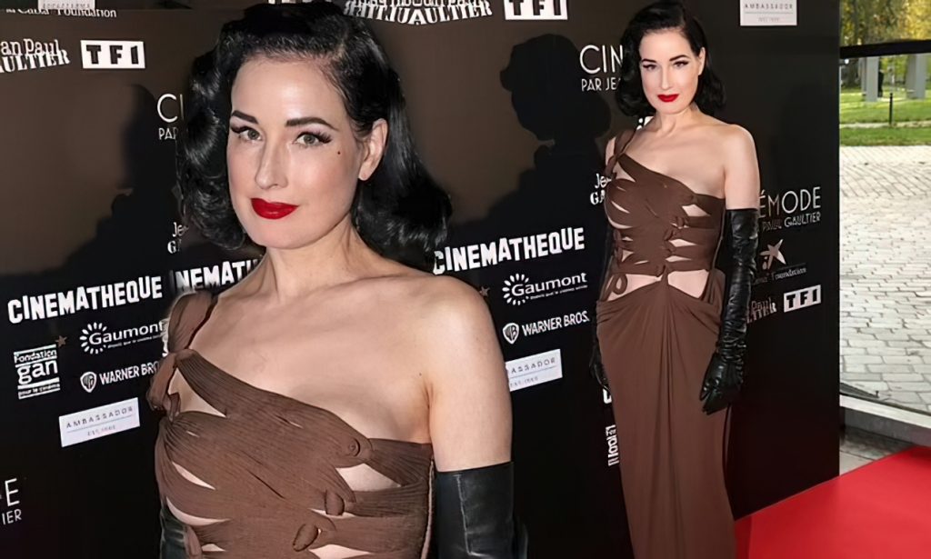 Modelo y bailarina Dita Von Teese fue fotografiada asistiendo a la exposición Jean Paul Gaultier Cinemode en la Cinemateca durante la Semana de la Moda de París Prêt-à-Porter Primavera/Verano 2022 en París, Francia, 10/03/2021.