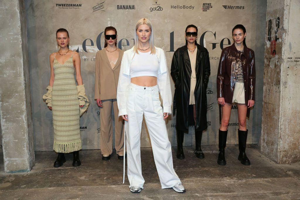 Lena Gercke sin sostén y modelos muestran creaciones de LeGer by Lena Gercke en About You Fashion Week en Kraftwerk, Berlín, 24/01/2021.