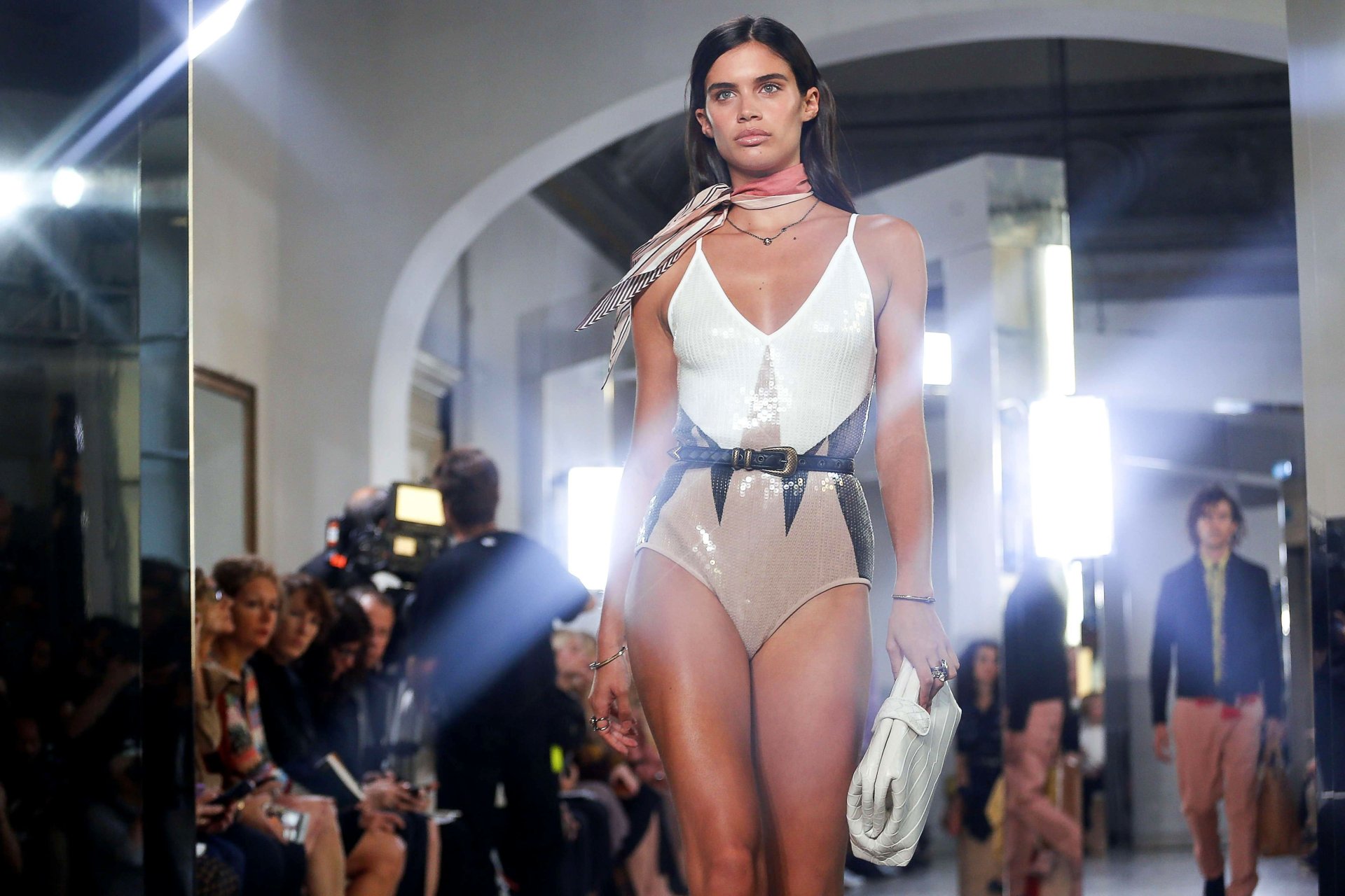 Supermodelo Sara Sampaio desfila en el show de Bottega Veneta Primavera/Verano 2018 durante la Semana de la Moda de Milán en Milán, 23/09/2017.
