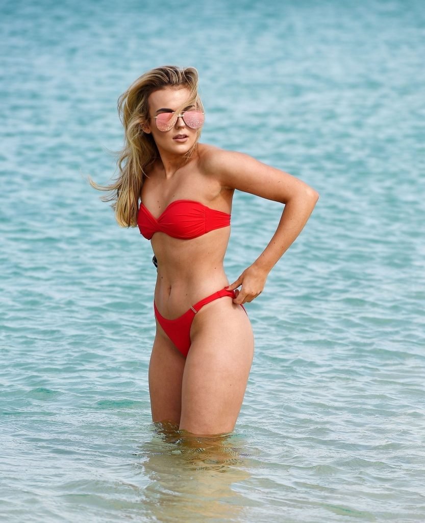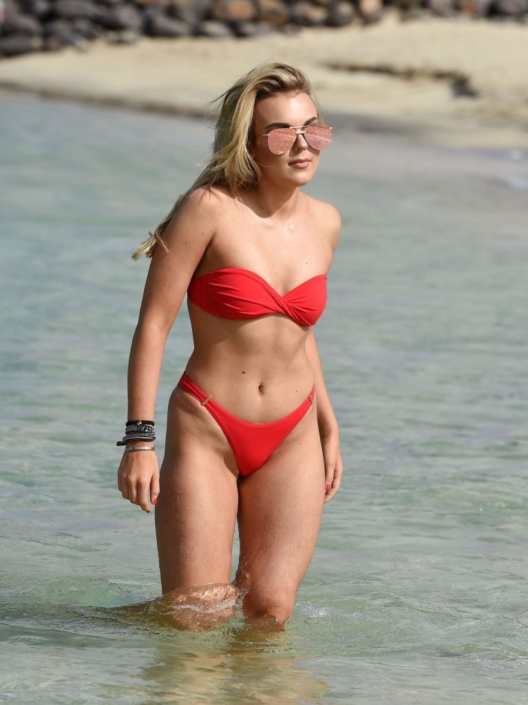 Cantante escocesa Tallia Storm, 19, muestra su cuerpo sexy con un bikini rojo ardiente mientras disfruta de un día libre filmando Celebs Go Dating en Cabo Verde, 31/01/2018.