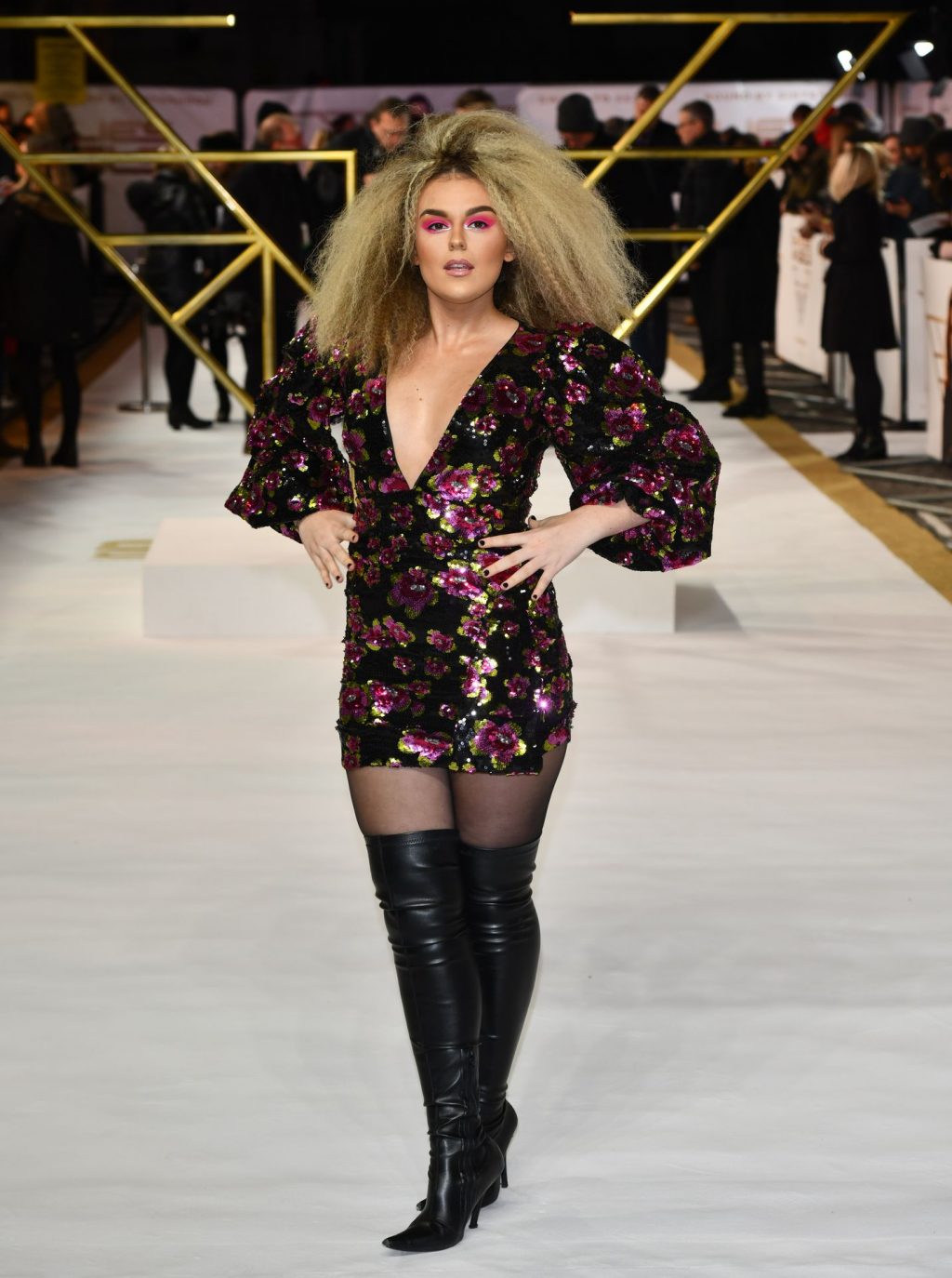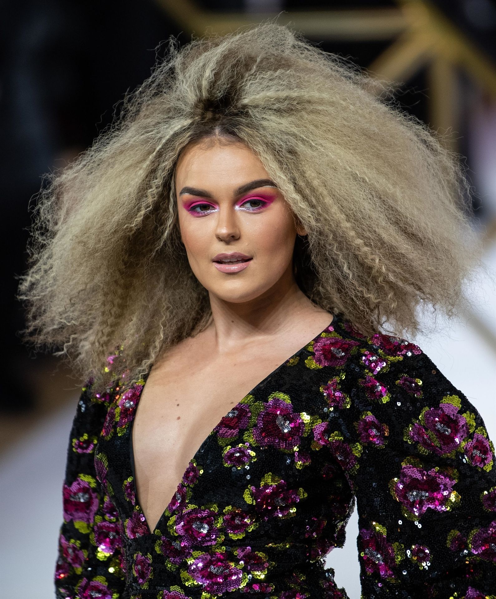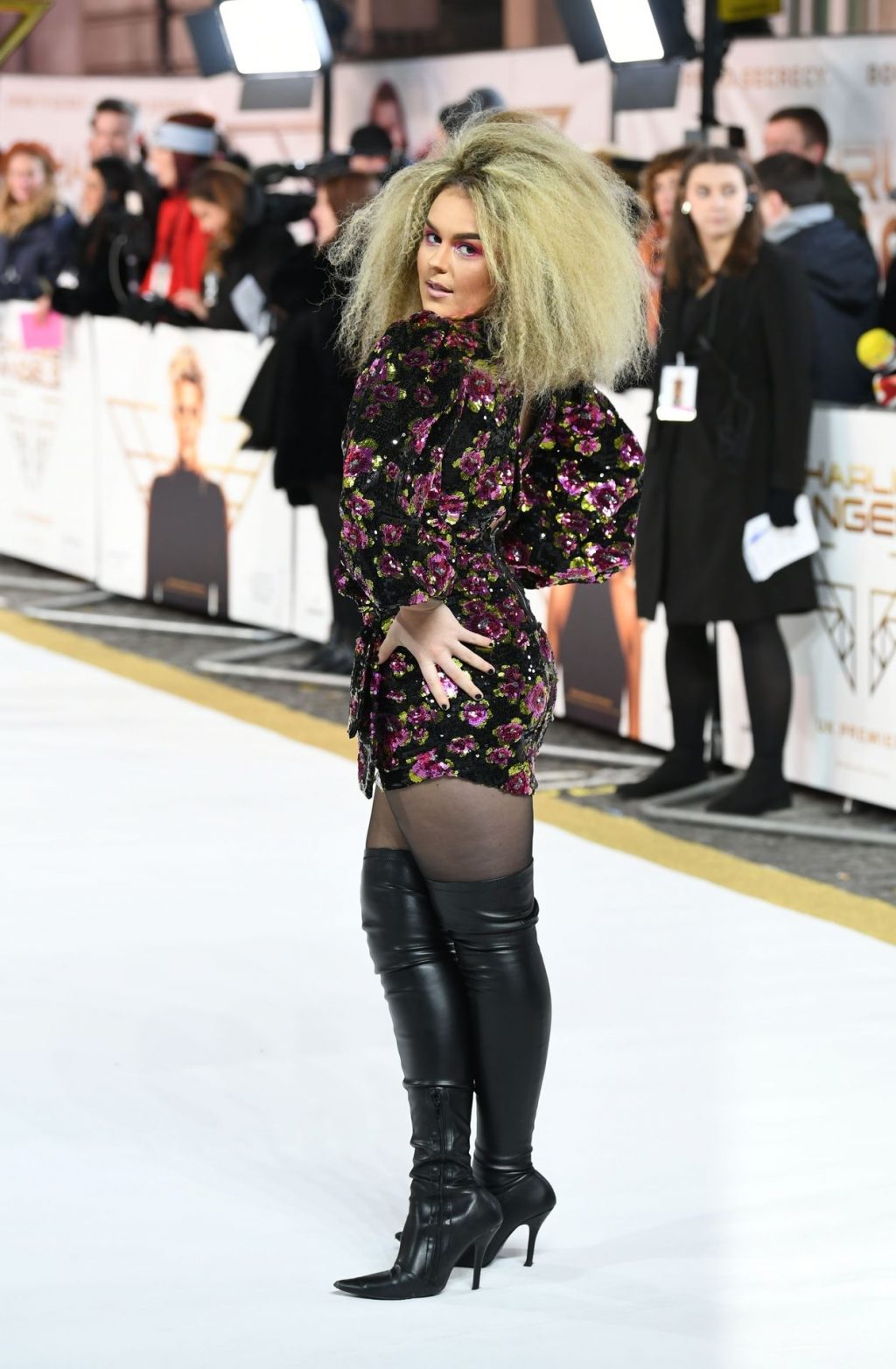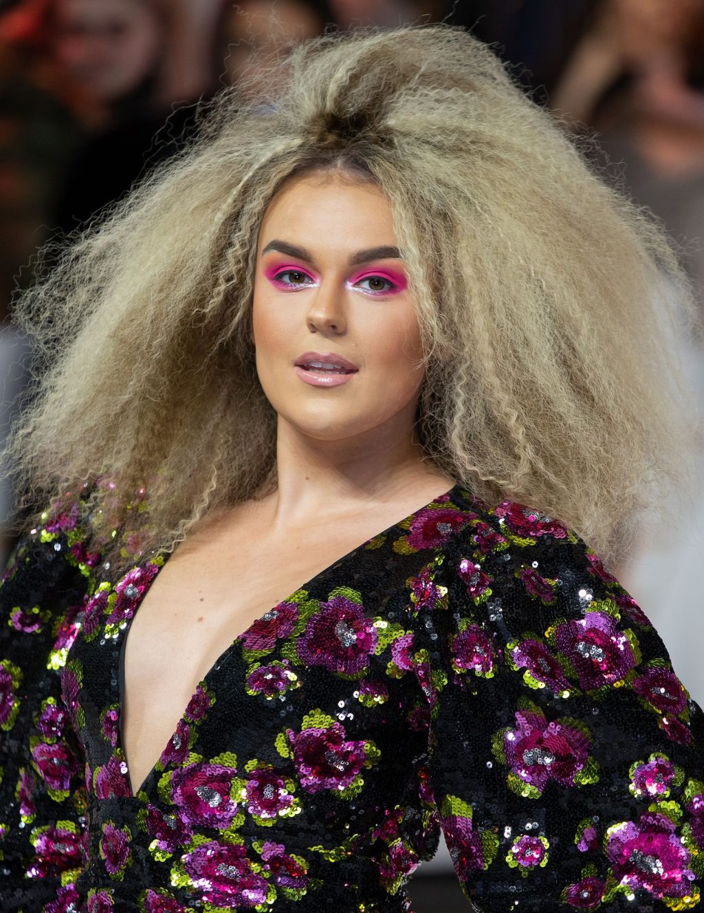 La cantante sin pechos Tallia Storm asiste al estreno de la película Charlie’s Angels en Curzons Mayfair en Londres, 20/11/2019. ¡Toda la atención de los invitados se centró en su peinado!