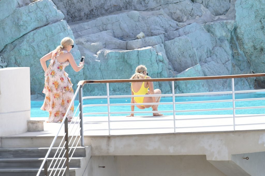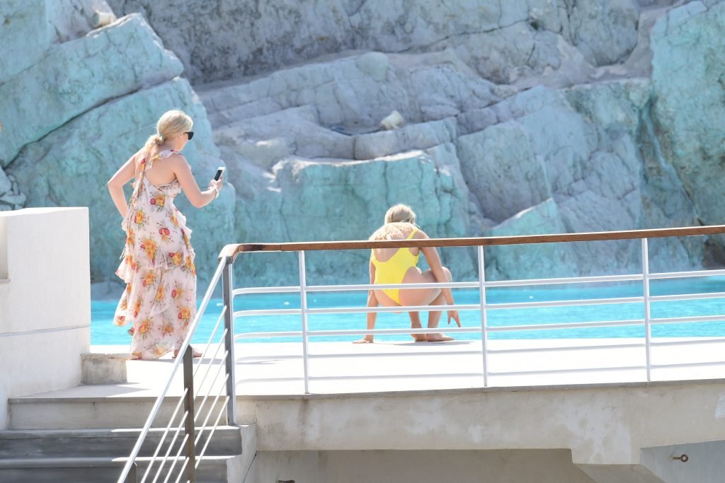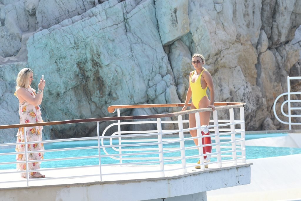 Tallia Storm se ve en el Hotel Eden Roc con un traje de baño amarillo durante el 71º Festival de Cine de Cannes en Francia, 10/05/2018. La cantante de 19 años tomó algunas fotos junto a la piscina y luego se cambió a un bikini turquesa.
