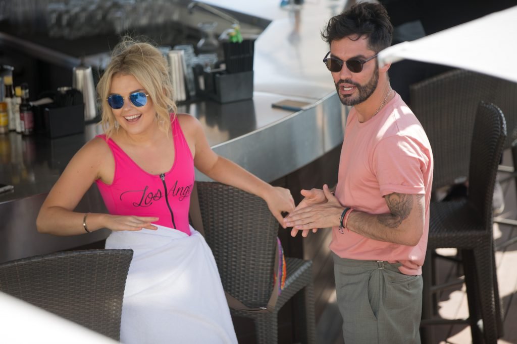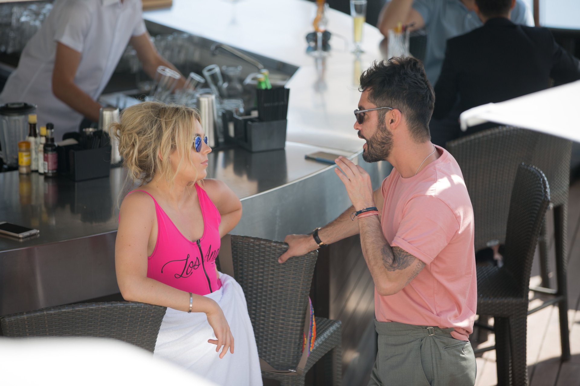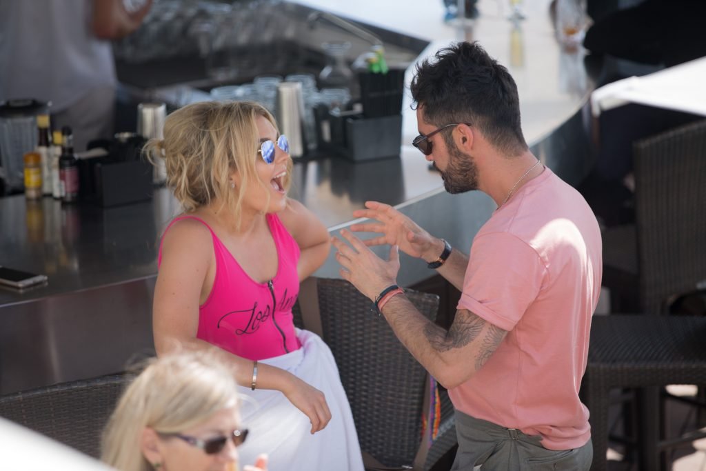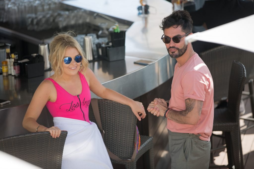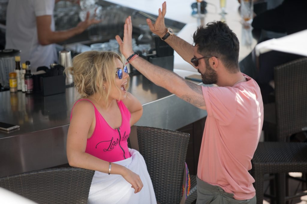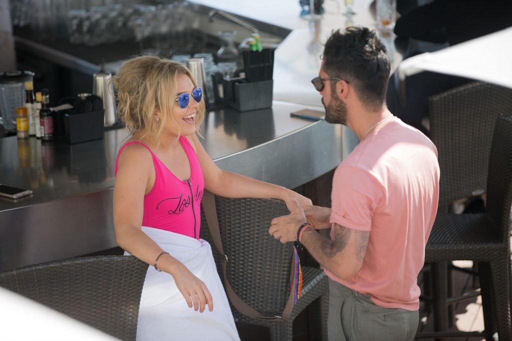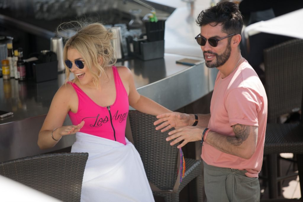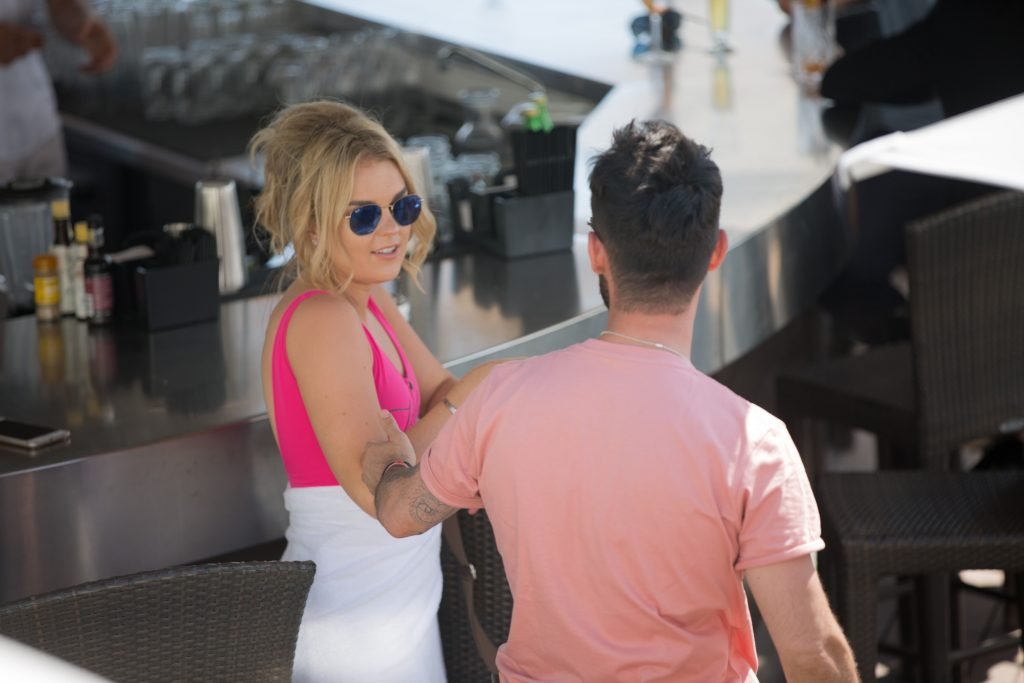 Tallia Storm disfruta de un día soleado con un traje de baño de una pieza ‘Los Angeles’ de neón rosa en la playa de Cannes, 12/05/2018. Tallia Storm es una cantante y estrella de reality TV de Glasgow, Escocia.