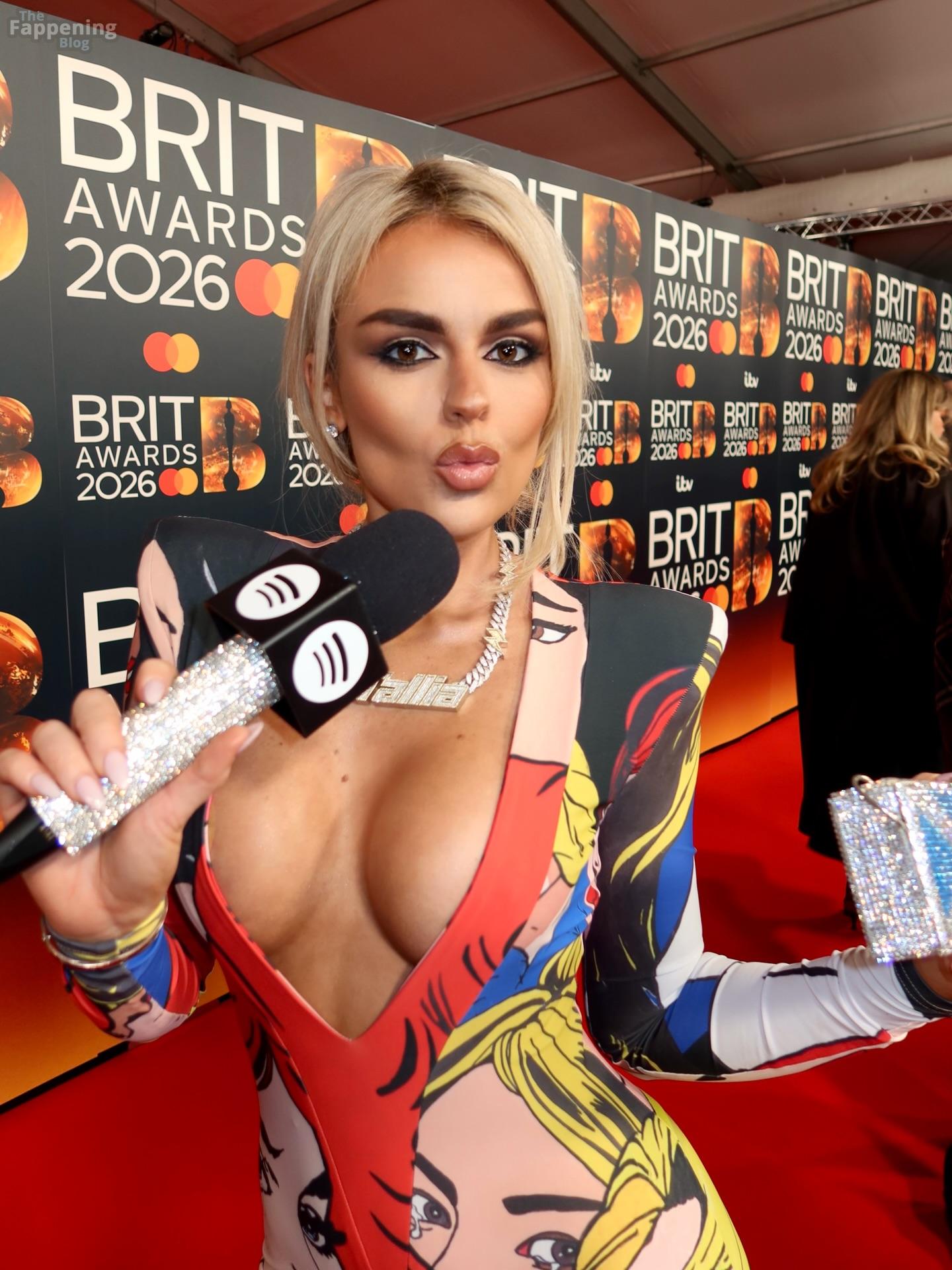 Tallia Storm posa en la alfombra roja durante los BRIT Awards en la Co-op Live Arena, en Manchester.