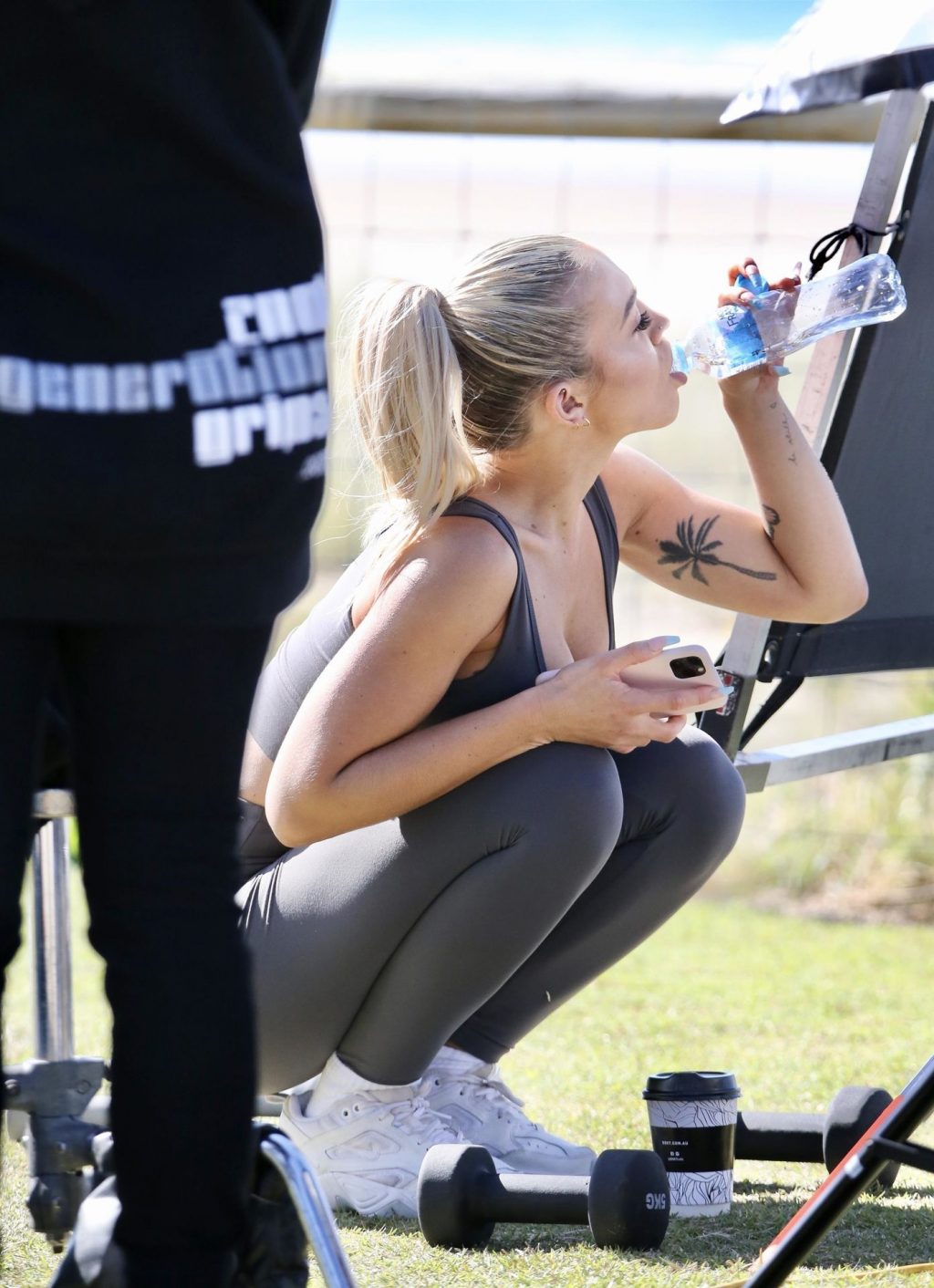 Modelo Tammy Hembrow realiza contenido para su aplicación de fitness en Mermaid Beach, Australia, 04/06/2020.