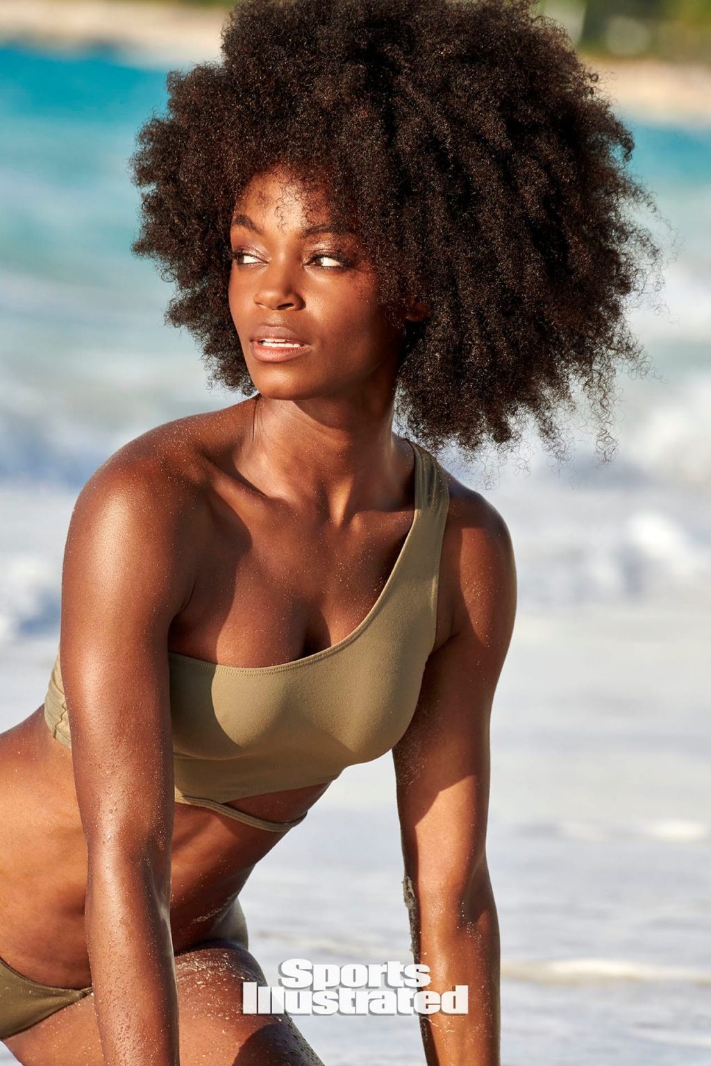 Modelo afroamericana muestra su cuerpo en forma y sexy en la playa con bikinis en una sesión de fotos para la Edición de Trajes de Baño 2020 de Sports Illustrated.