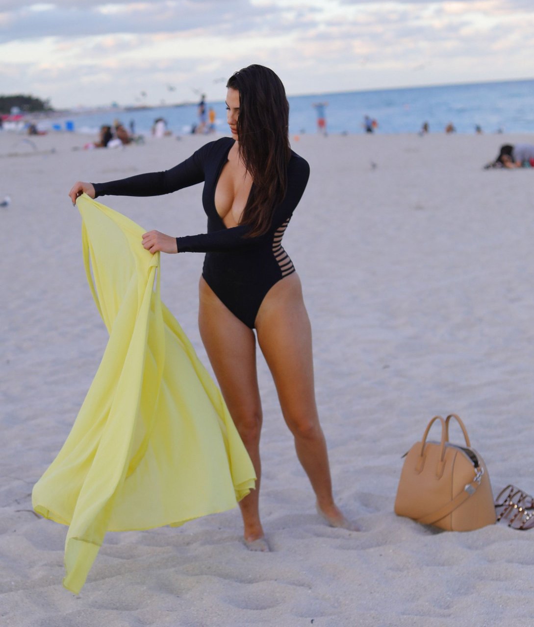 La modelo francesa Tao Wickrath casi se sale de su traje de baño mojado mientras ríe y muestra sus curvas después del fin de semana de los Globos de Oro en Miami, 01/08/2019.