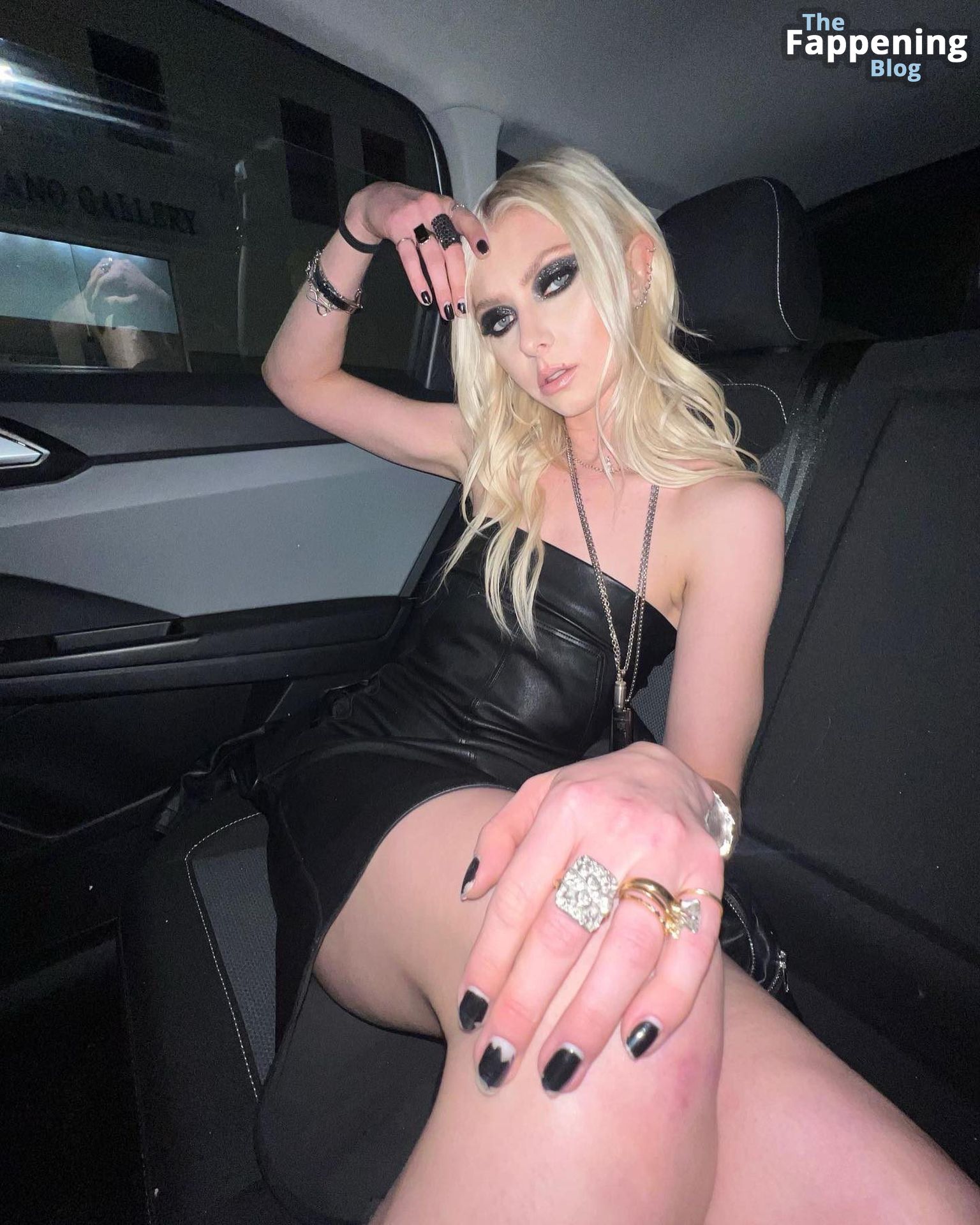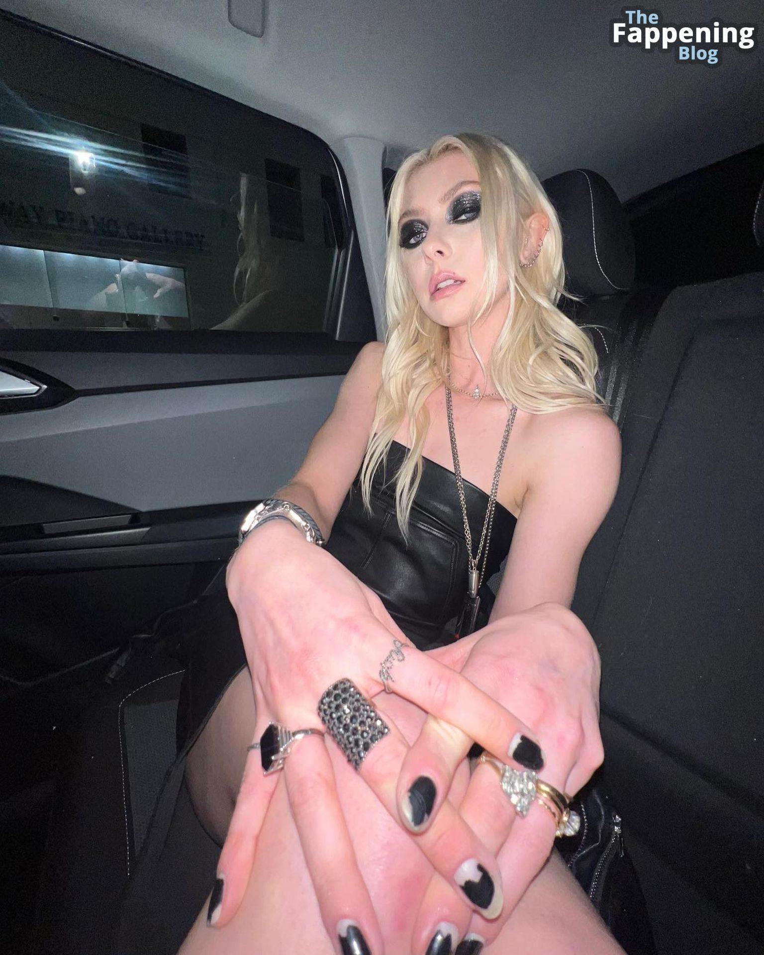 La cantante estadounidense Taylor Momsen muestra sus piernas con moretones en las rodillas mientras posa con un vestido corto y botas en la parte trasera de un coche – Instagram, 02/06/2023.