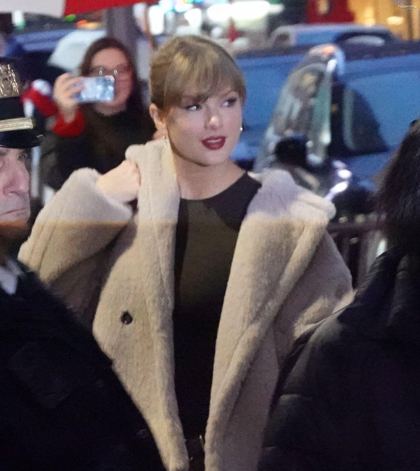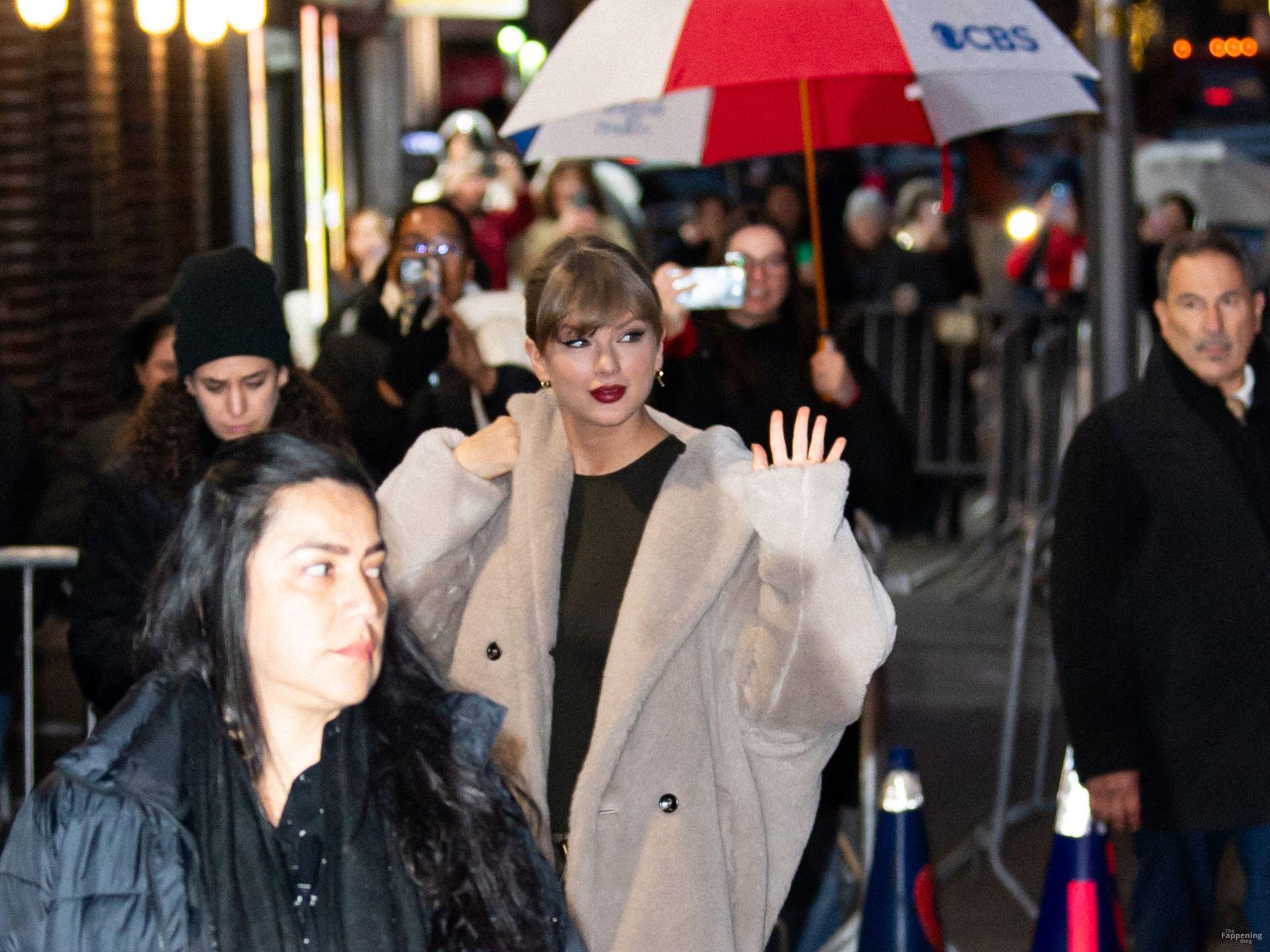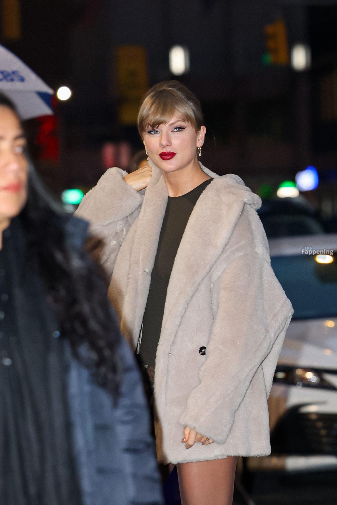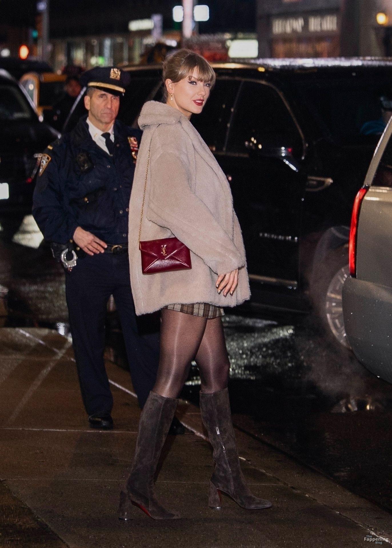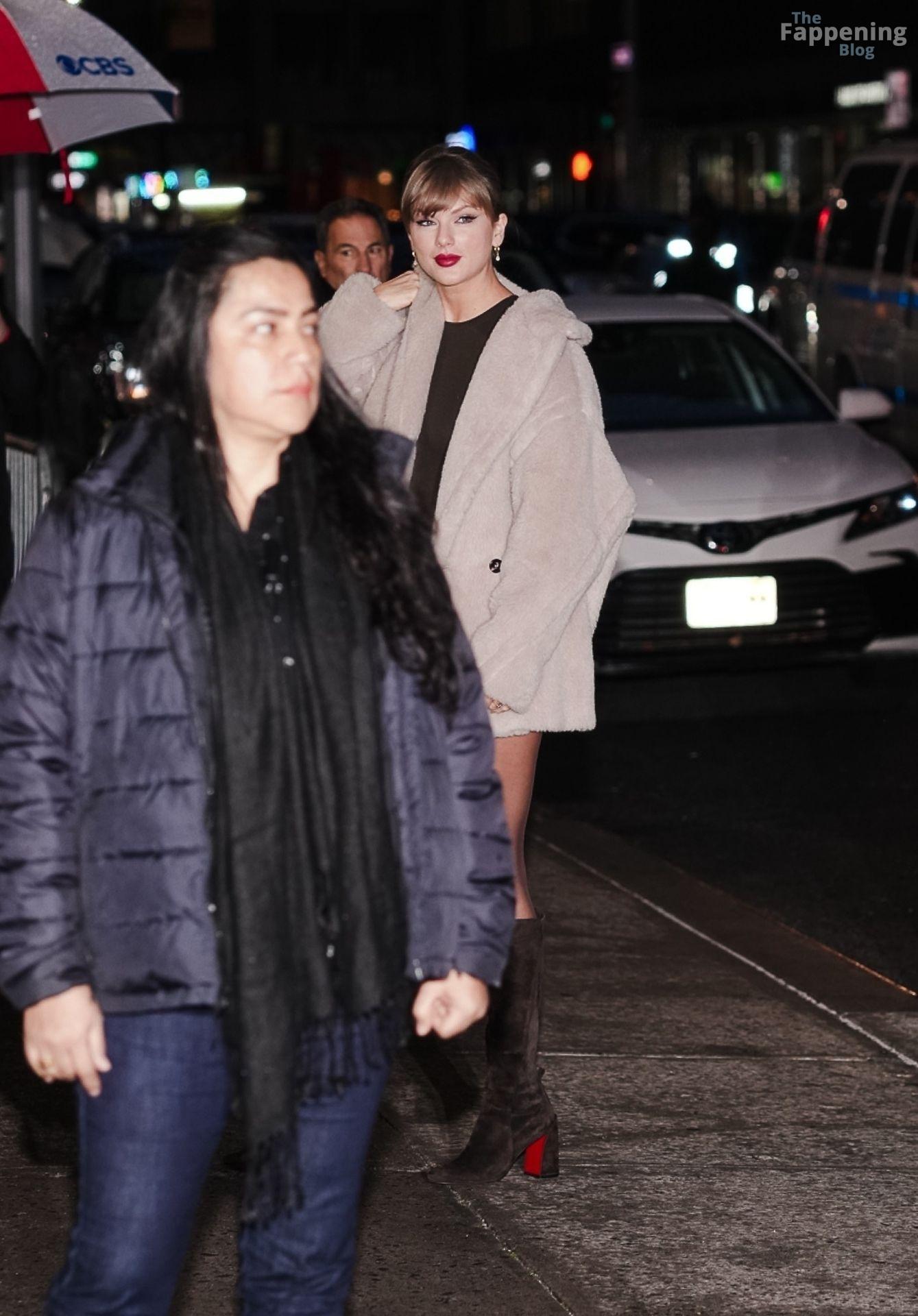 Tay‑Tay estuvo en NYC. Lució un mini vestido de cuadros y sin tirantes en Colbert – piernas y escote a la vista.