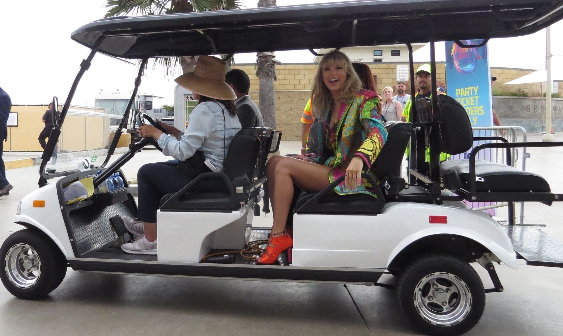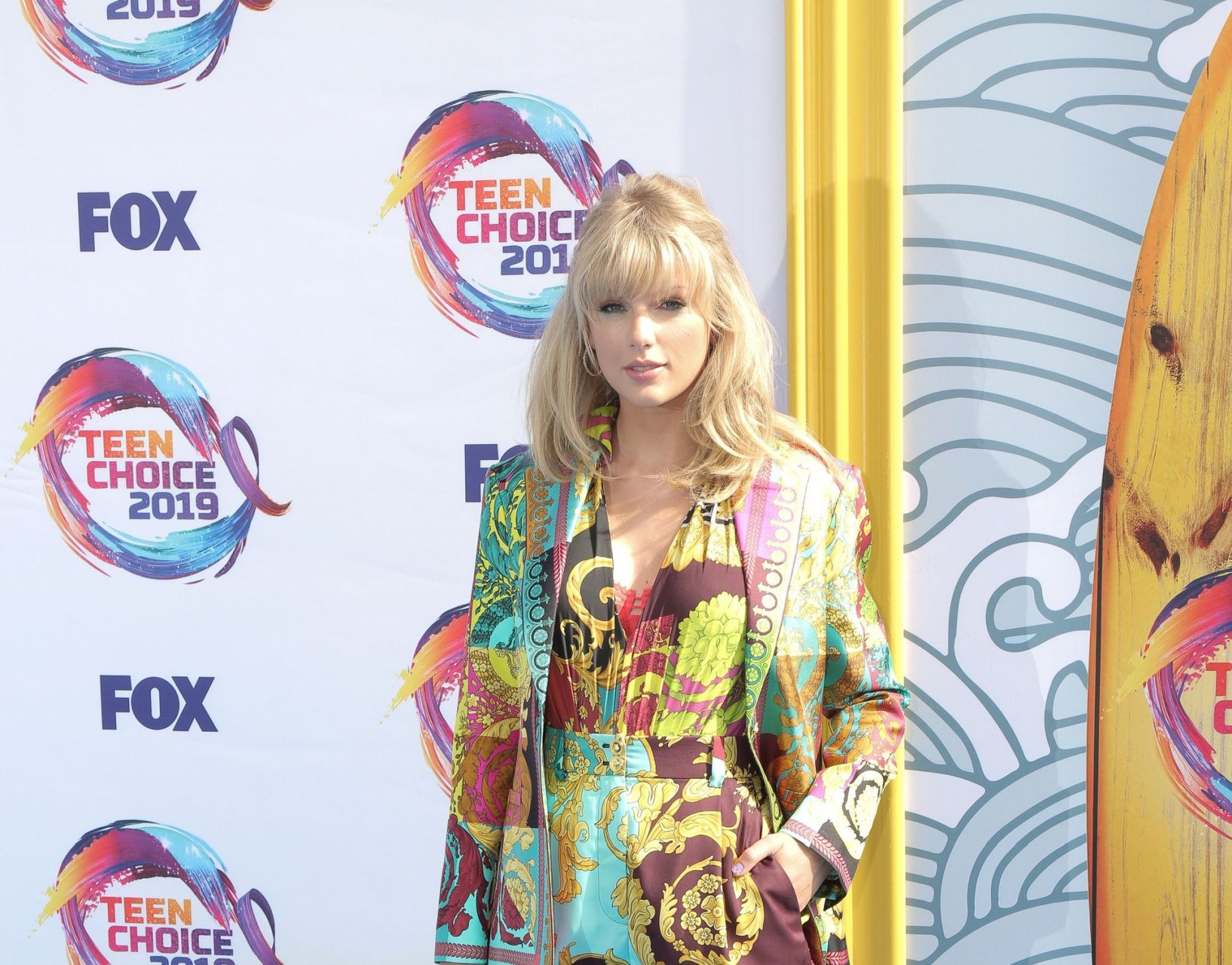 La cantante de piernas largas Taylor Swift llevaba un body de Versace, shorts y blazer con zapatos Kat Maconie, pendientes Misahara y anillos de Irene Neuwirth, VRAM y Emily P Wheeler, y llega a los Teen Choice Awards 2019 de FOX celebrados en Hermosa Beach Pier Plaza en Hermosa Beach, 11/08/2019.