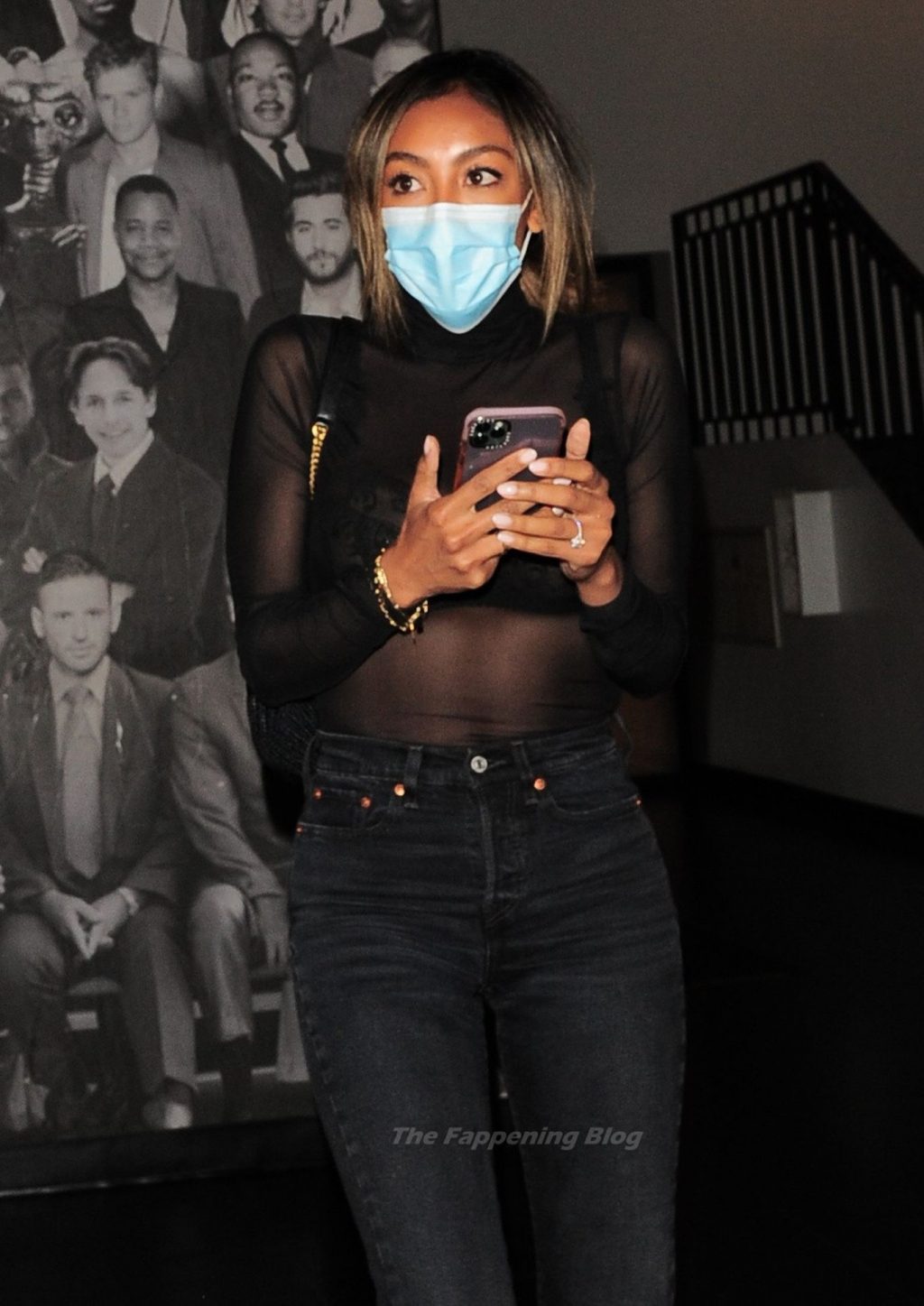 Estrella de Bachelorette Tayshia Adams es vista luciendo a la moda con una blusa transparente mientras llega al Catch Restaurant en West Hollywood, 26/04/2021.