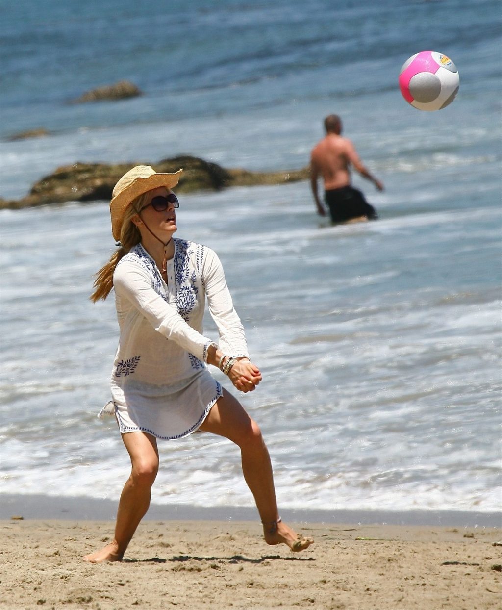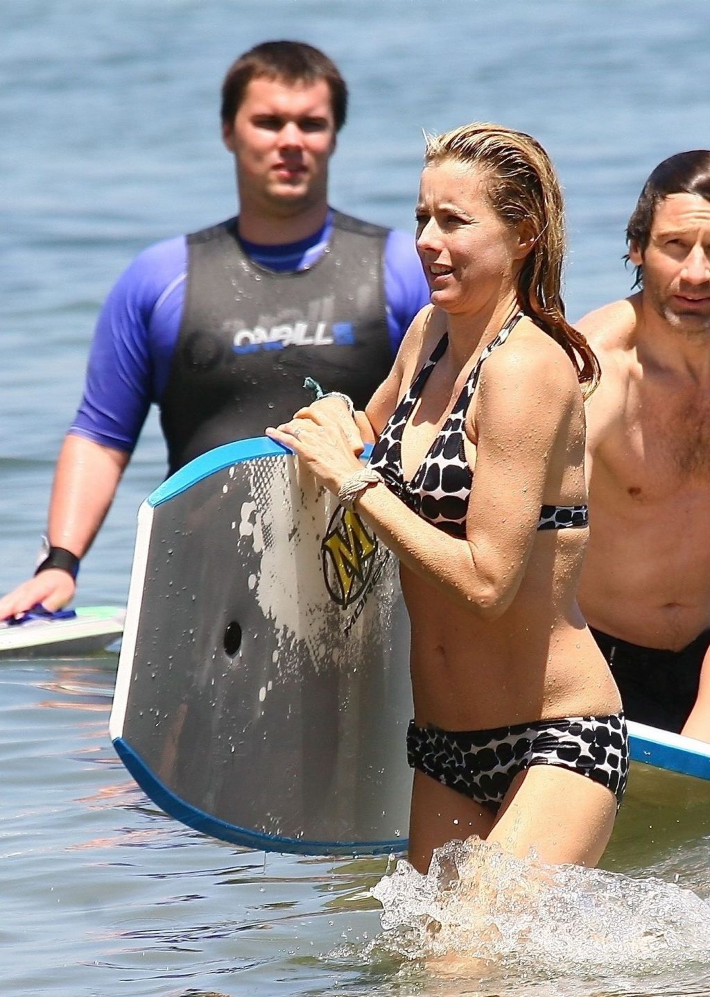 Actores/productores David Duchovny y Téa Leoni disfrutan de un día en la playa con sus hijos en Malibu, 21/06/2009.