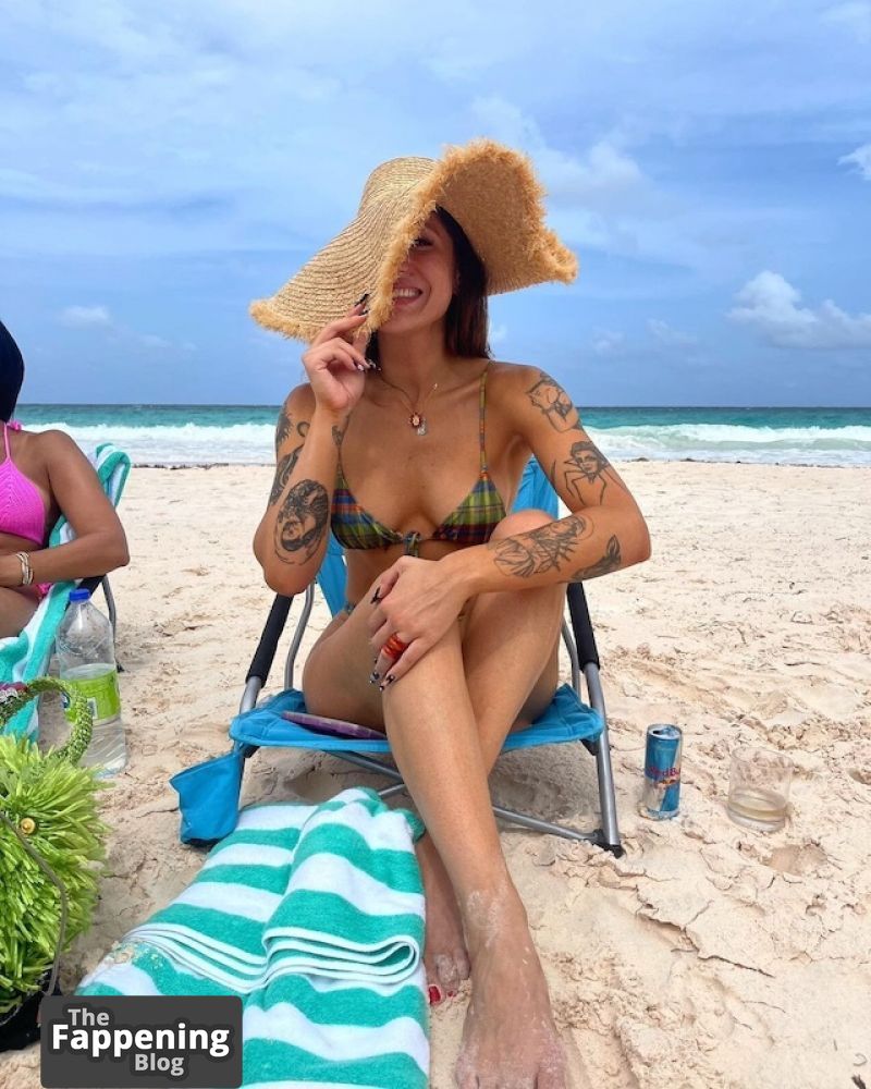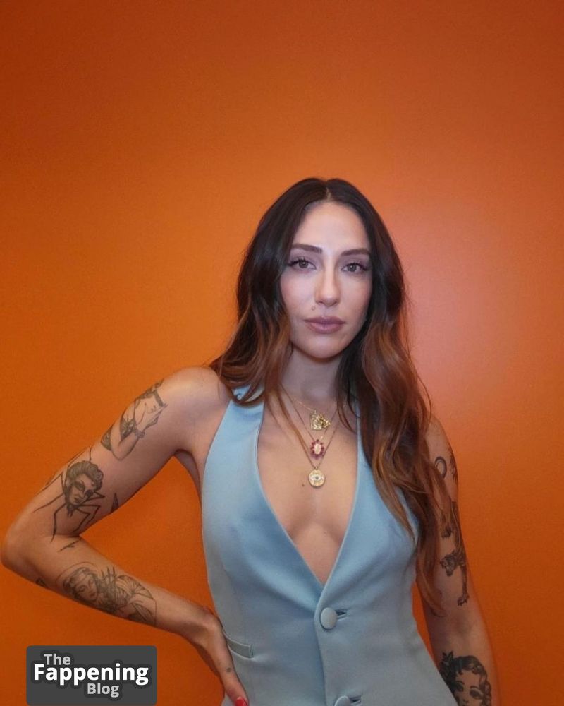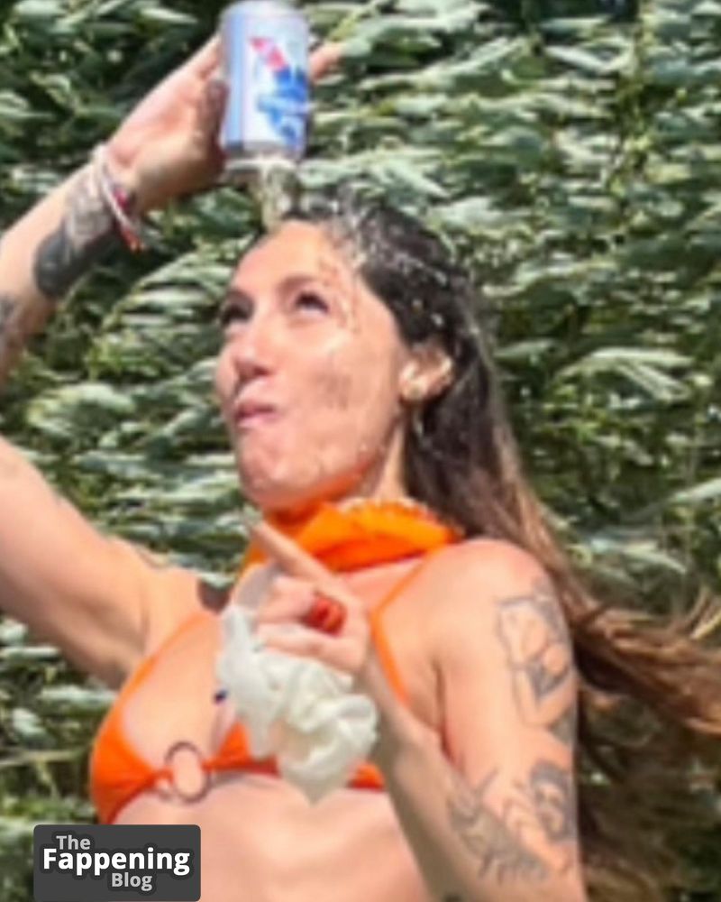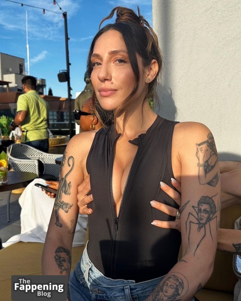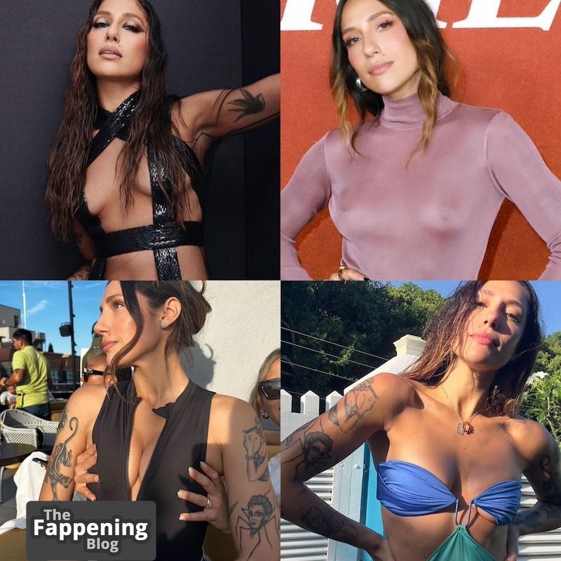 La colección de fotos de Tefi Pessoa muestra sus tomas parcialmente desnudas, revelando sus pechos descubiertos, escote amplio sin sostén, pezones expuestos, glúteos atractivos, piernas seductoras y figura esbelta.