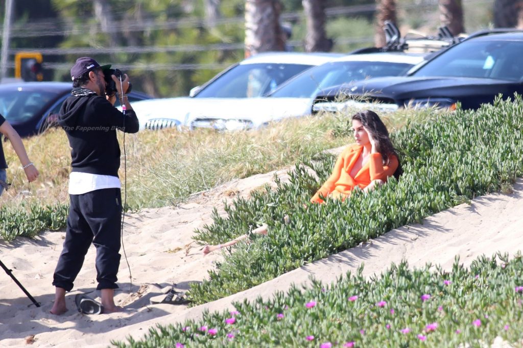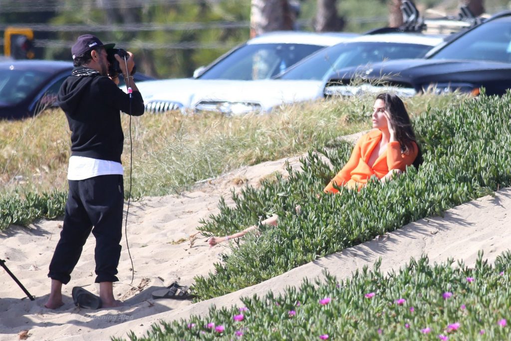 Teodora Djuric se viste con un vestido de diseñador mientras realiza una sesión de fotos de moda en Santa Mónica, 17/04/2021.
