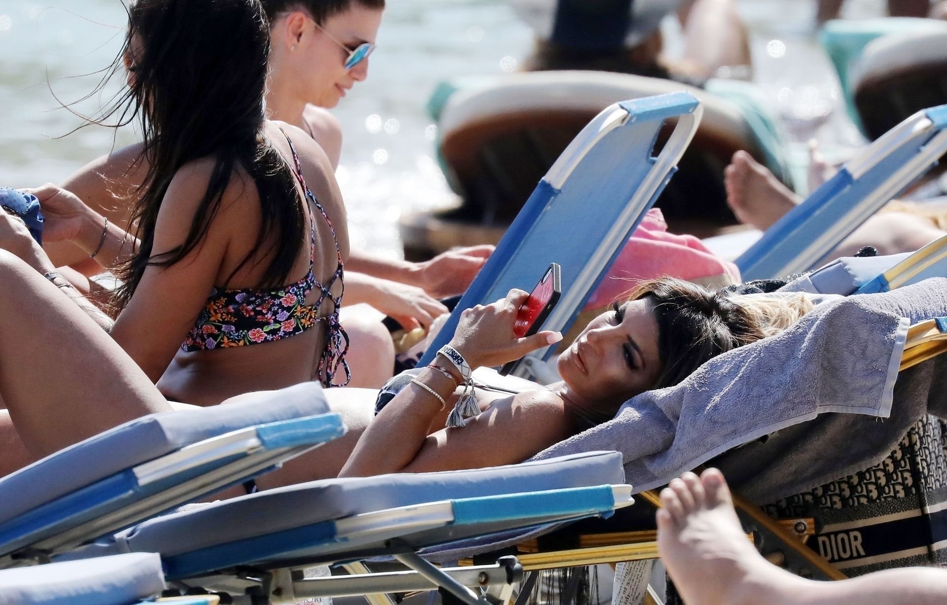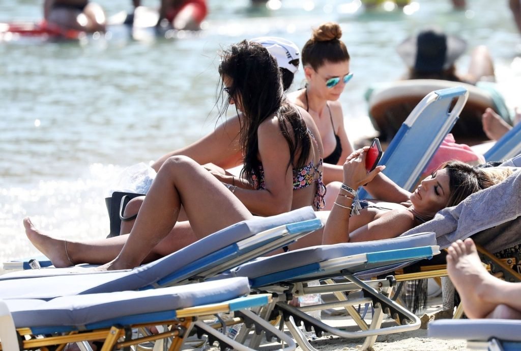 La estrella de “The Real Housewives of New Jersey”, Teresa Giudice, fue fotografiada relajándose en la playa mientras disfrutaba de unas vacaciones de verano en Mykonos, 25/08/2019. La estrella de la televisión reality parecía de buen ánimo mientras bailaba con sus amigos.