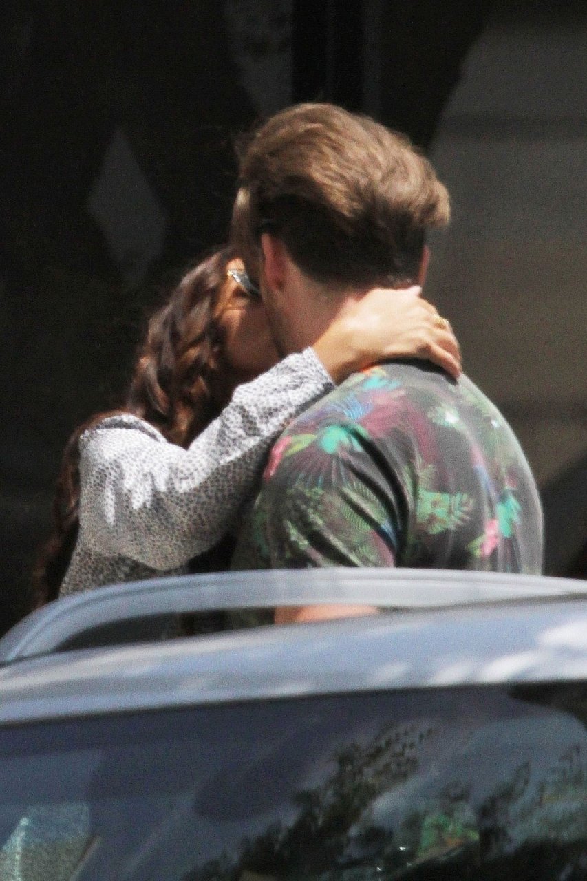 La reportera de entretenimiento y actriz Terri Seymour (47) y su novio de mucho tiempo Clark Mallon se muestran cariñosos durante su cita para almorzar en el lugar de moda para celebridades, Joan’s on Third en Studio City, 08/07/2019.