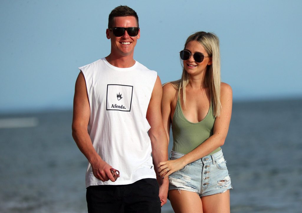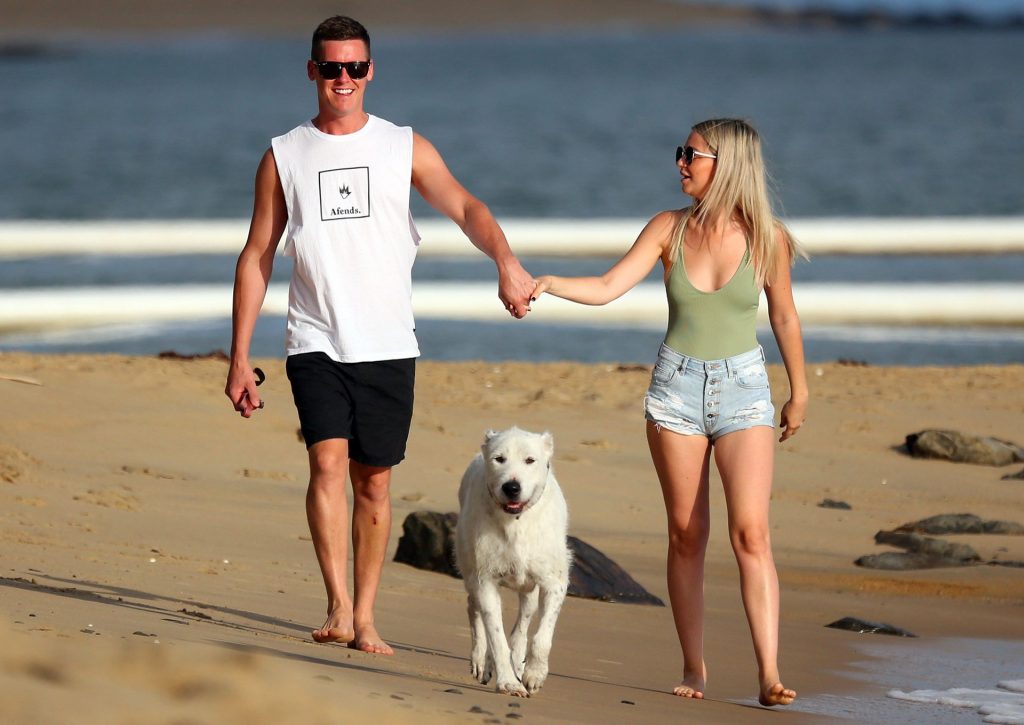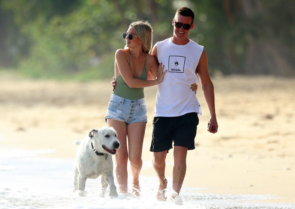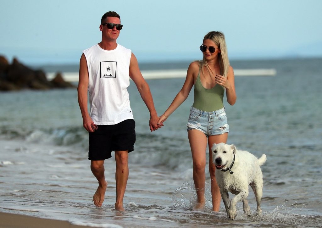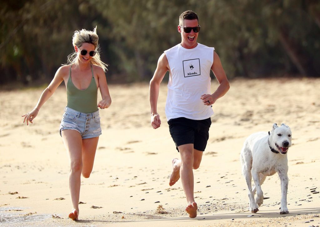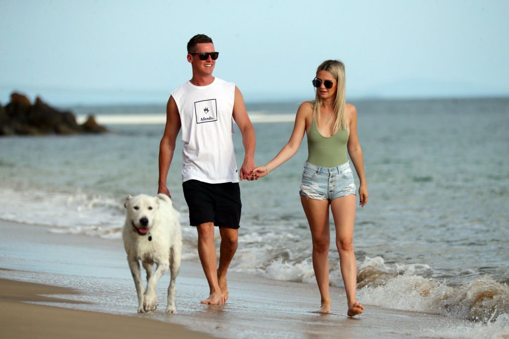 Ganadores de la serie de televisión ‘The Block’ 2019 Tess y Luke Struber salen a pasear por la playa con su perro Tilly en su ciudad natal de Cairns después de ganar el programa de telerrealidad y embolsarse AU $750,000.