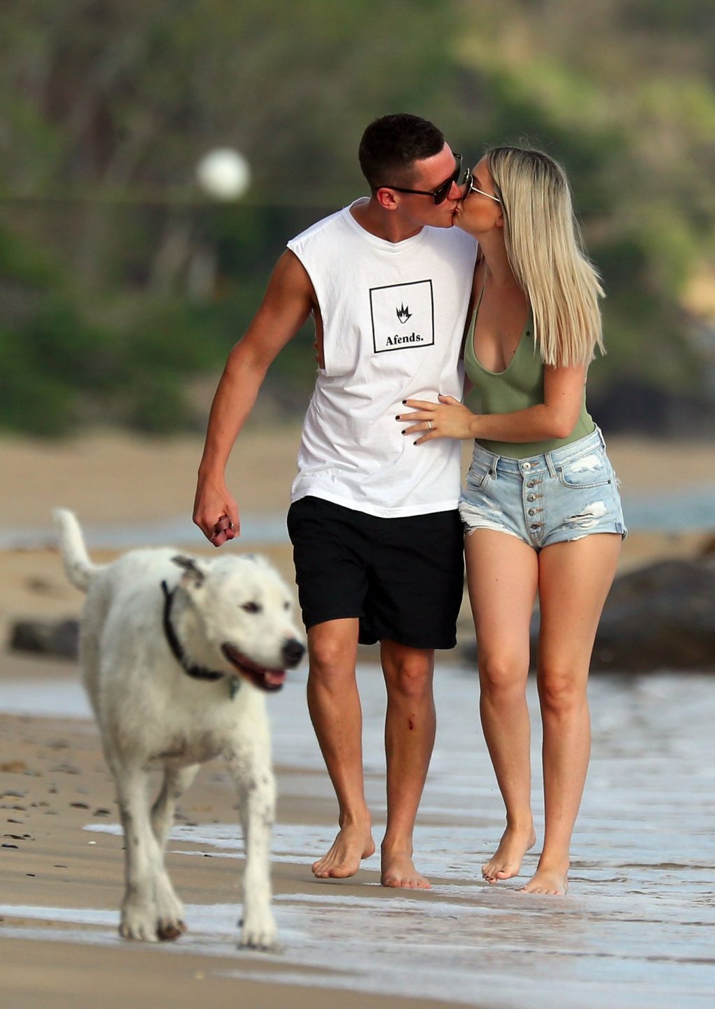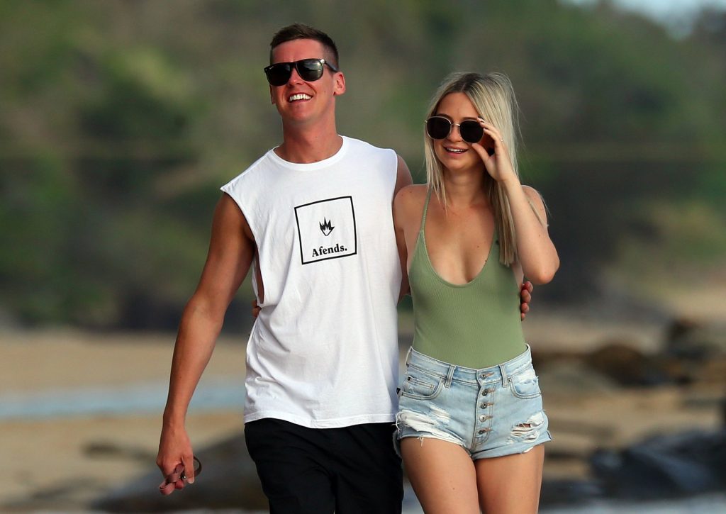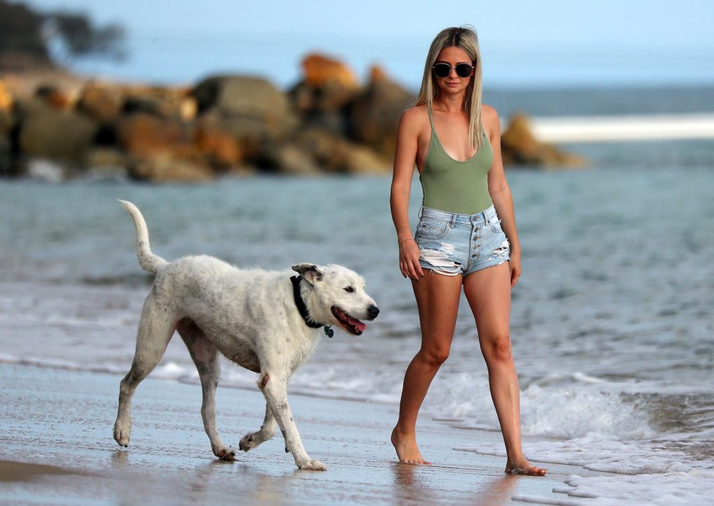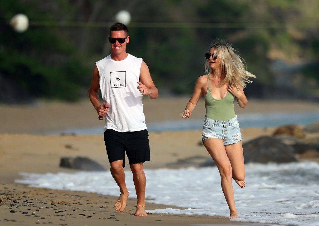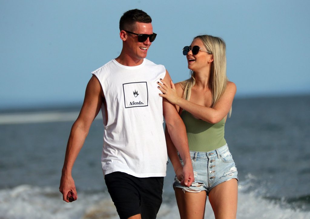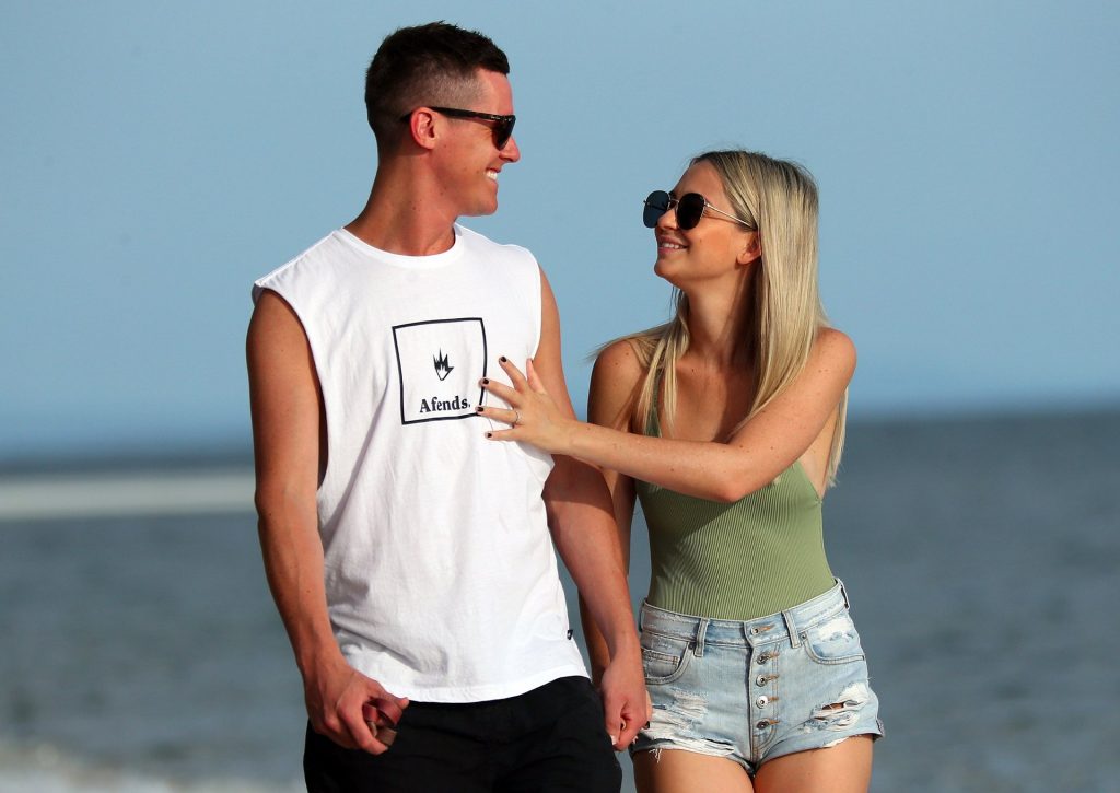 Ganadores de la serie de televisión ‘The Block’ 2019 Tess y Luke Struber salen a pasear por la playa con su perro Tilly en su ciudad natal de Cairns después de ganar el programa de telerrealidad y embolsarse AU $750,000.