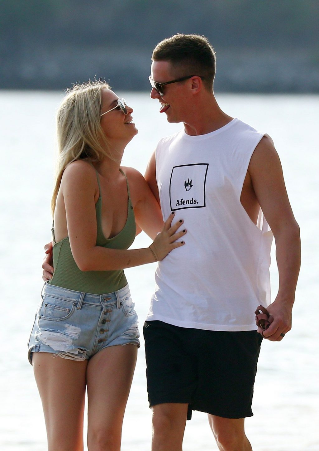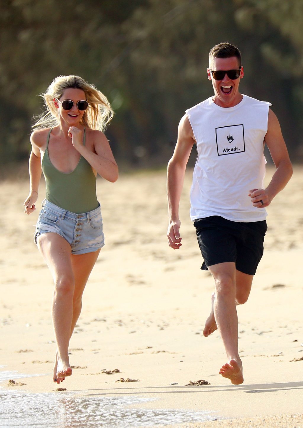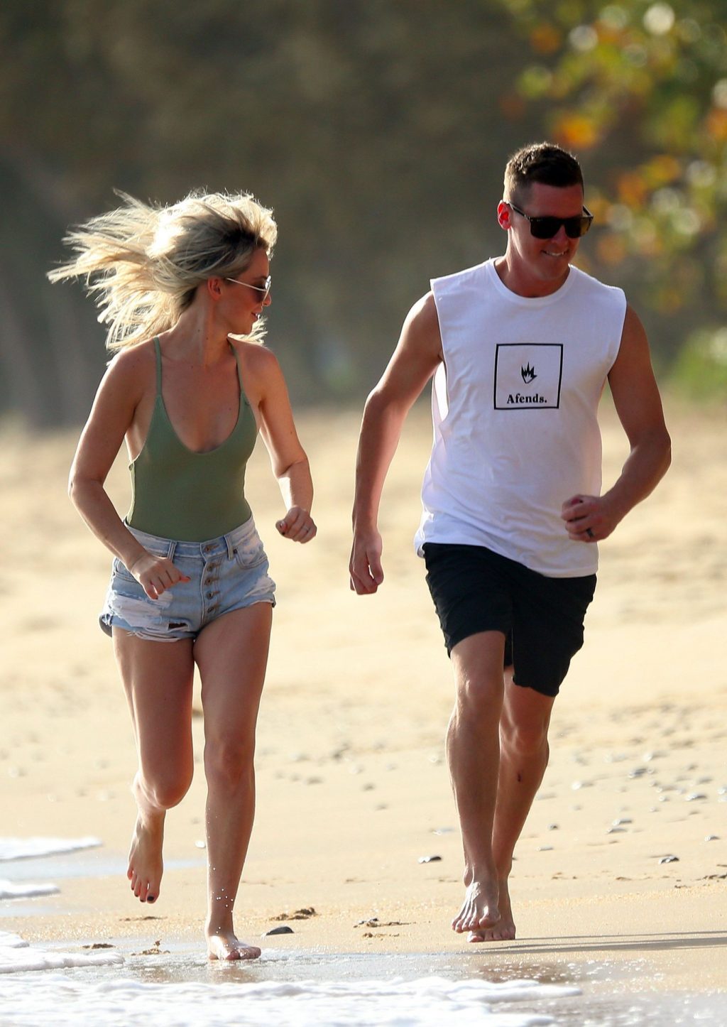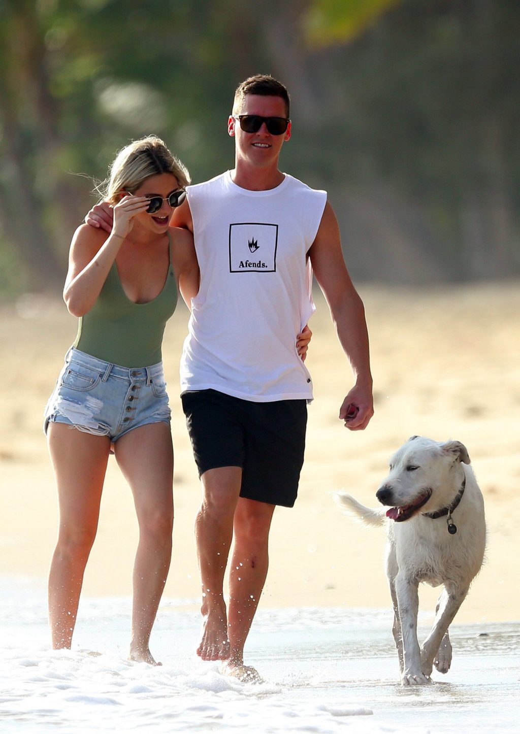 Ganadores de la serie de televisión ‘The Block’ 2019 Tess y Luke Struber salen a pasear por la playa con su perro Tilly en su ciudad natal de Cairns después de ganar el programa de telerrealidad y embolsarse AU $750,000.