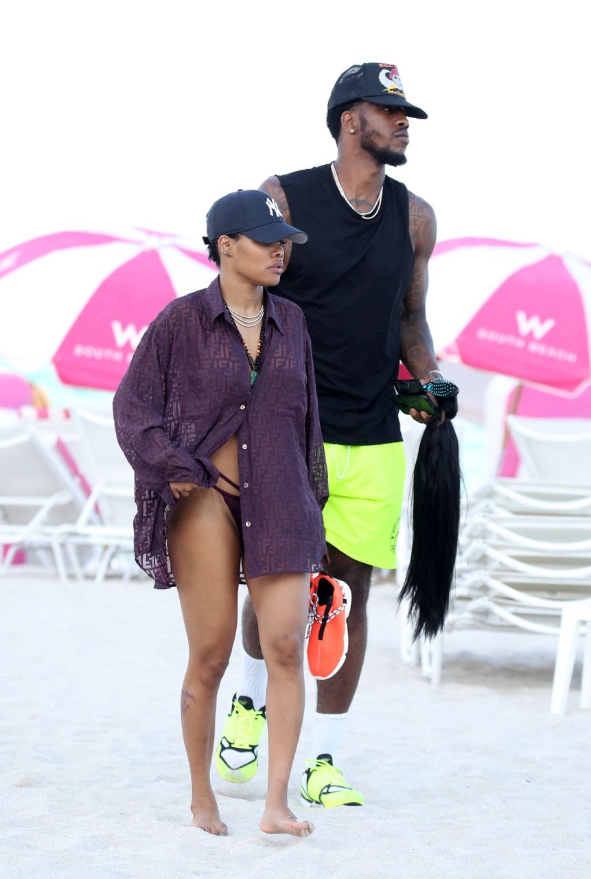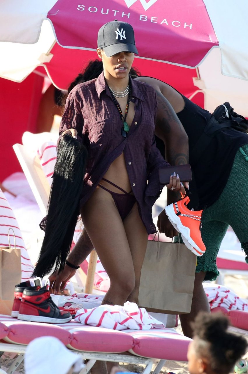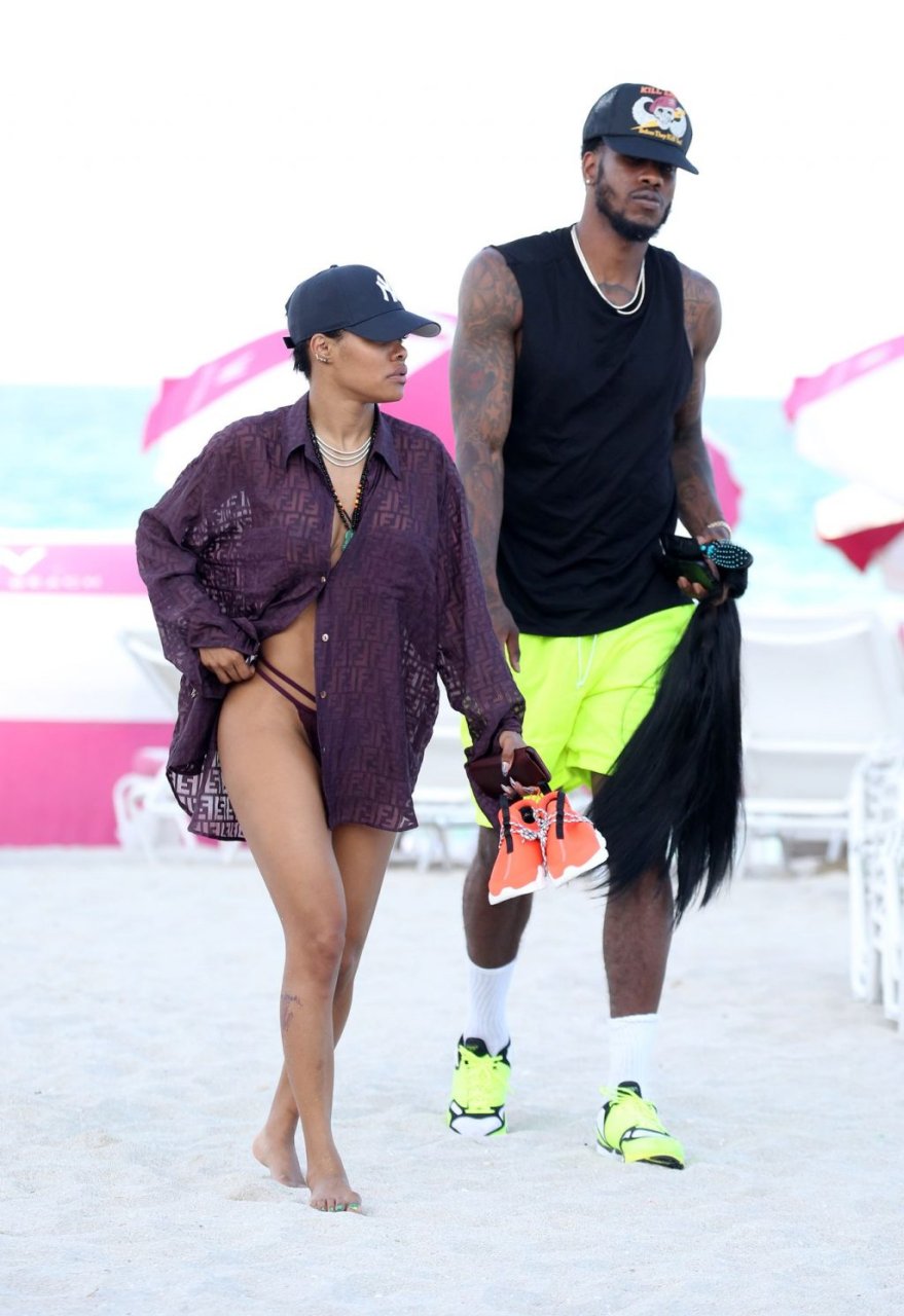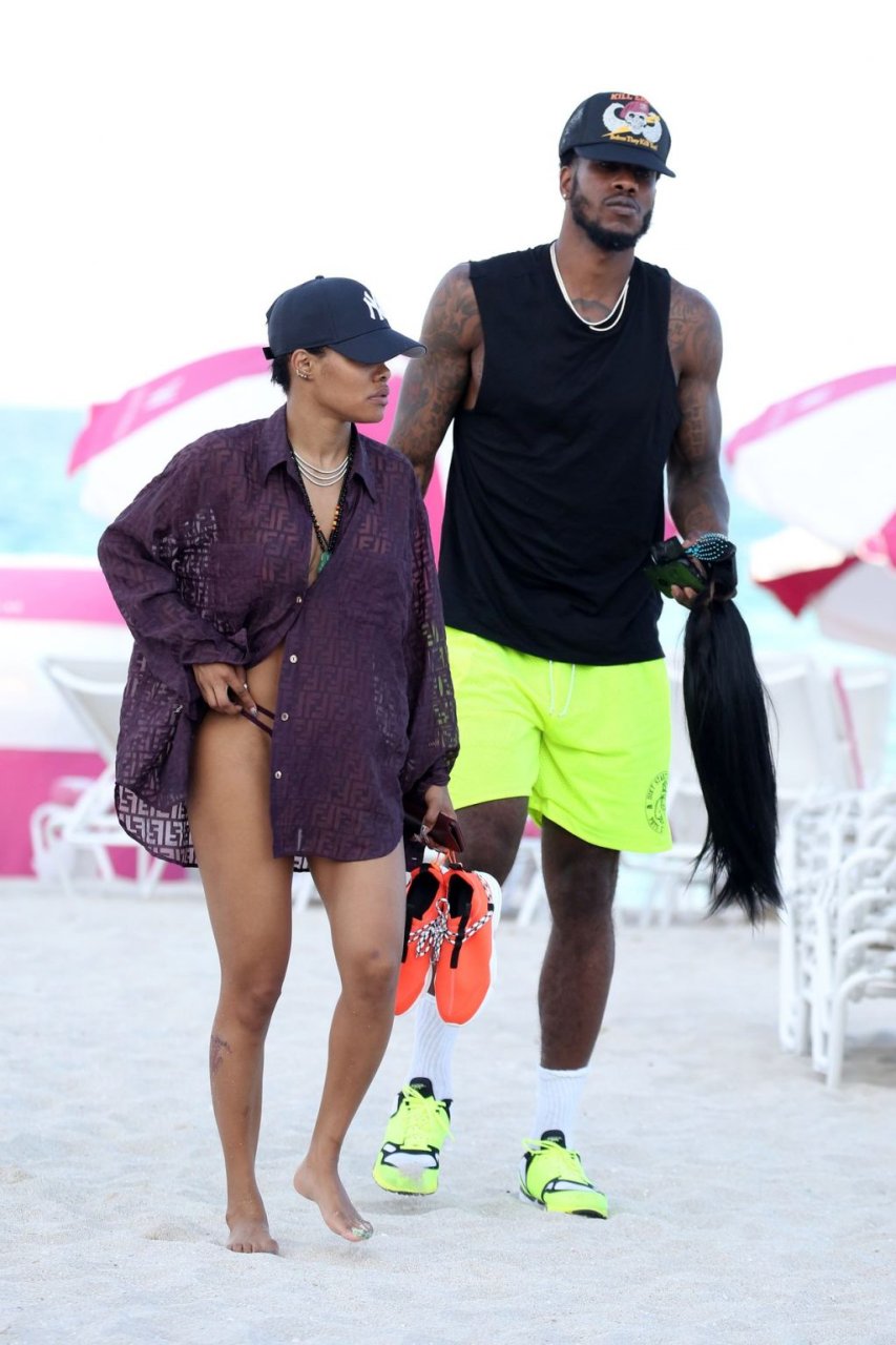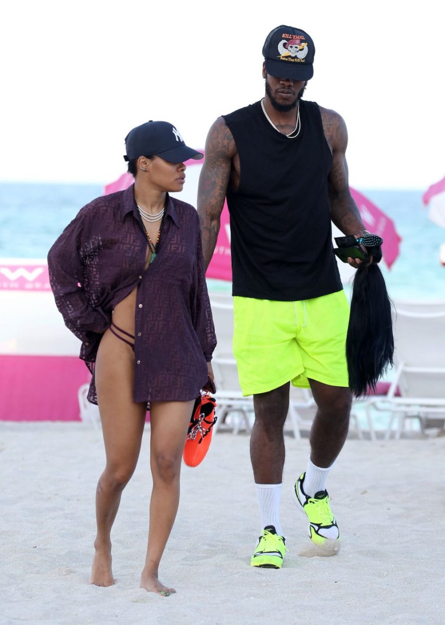 La cantante Teyana Taylor (28) pasa un día en la playa en familia con su esposo, el jugador de la NBA de Houston Rockets Iman Shumpert, y su hija en Miami Beach, Florida, 02/07/2019.