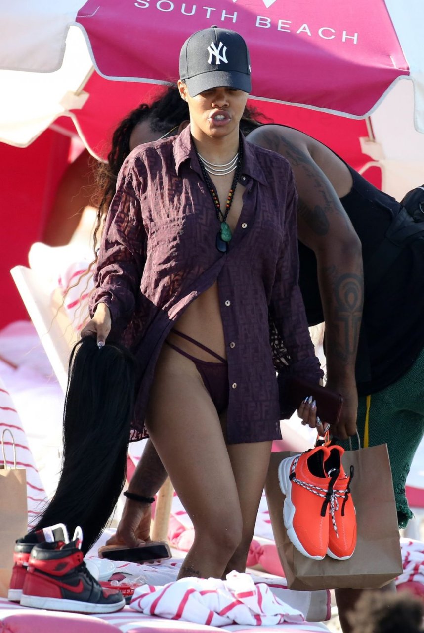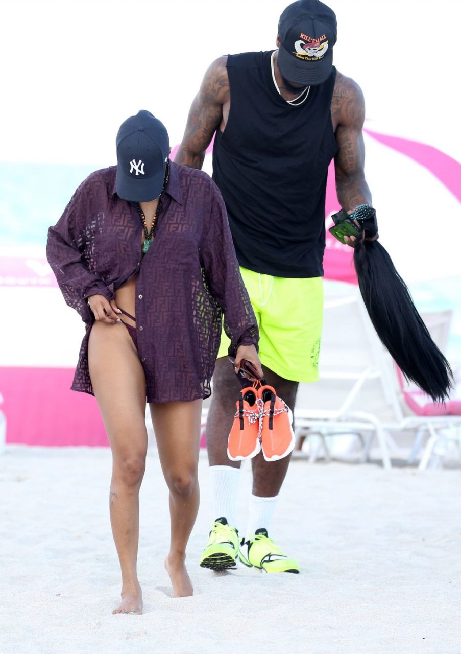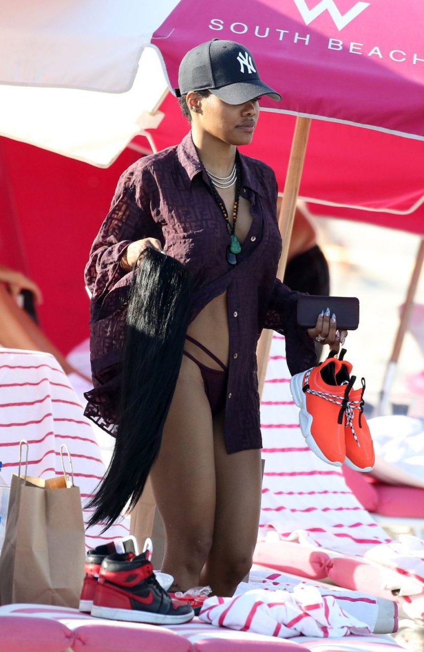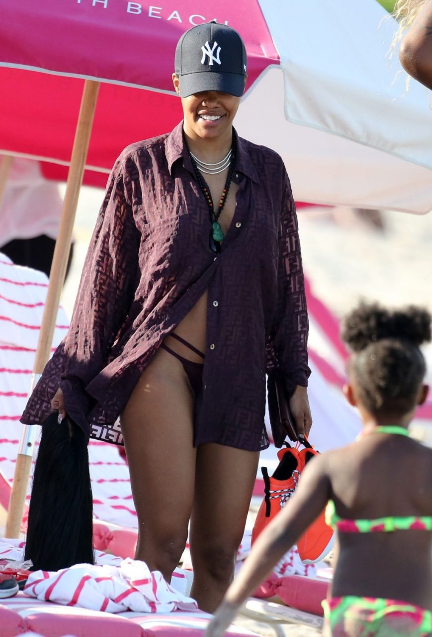 La cantante Teyana Taylor (28) pasa un día en la playa en familia con su esposo, el jugador de la NBA de Houston Rockets Iman Shumpert, y su hija en Miami Beach, Florida, 02/07/2019.