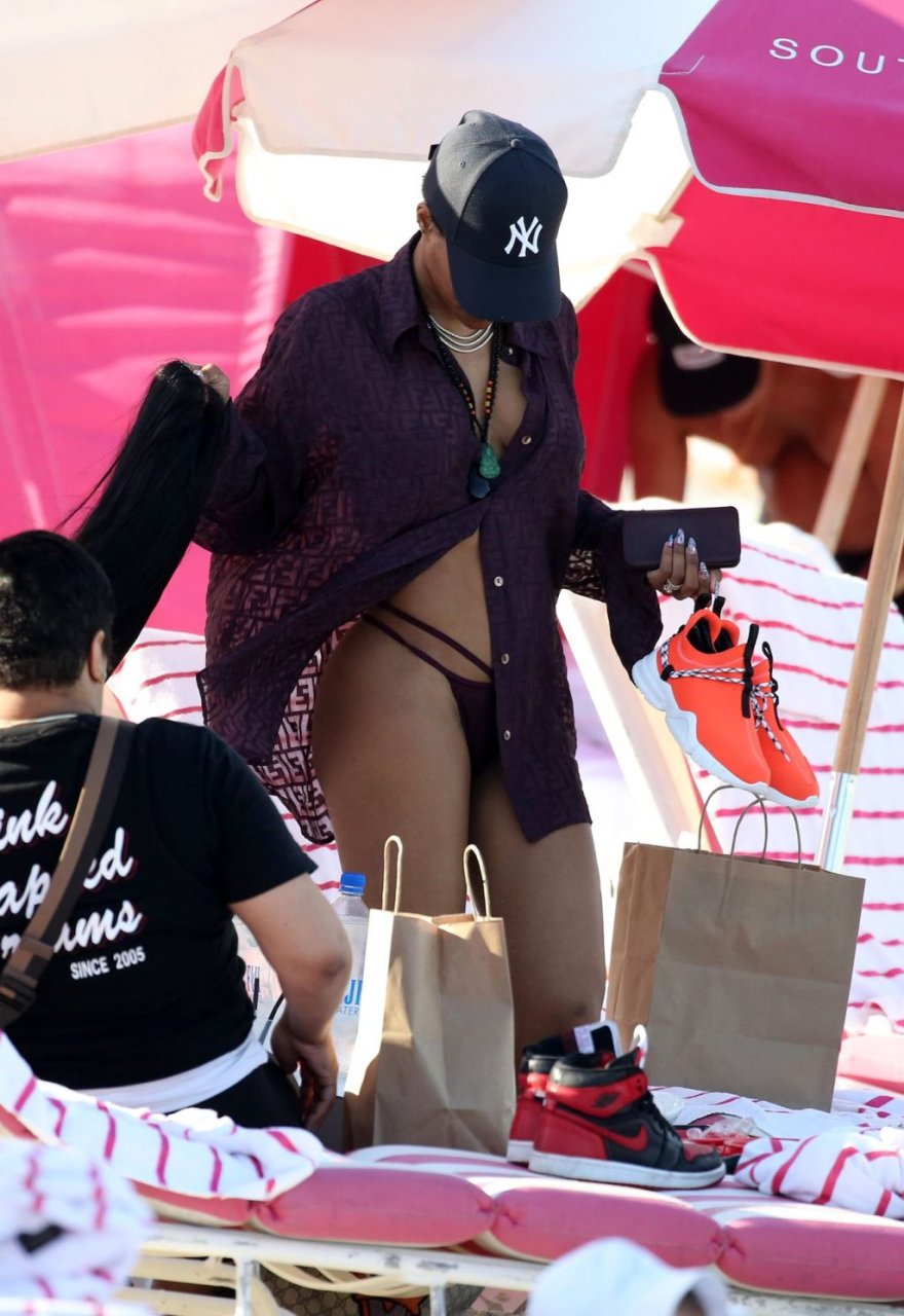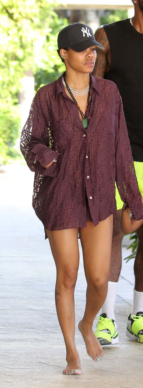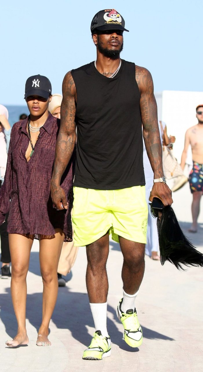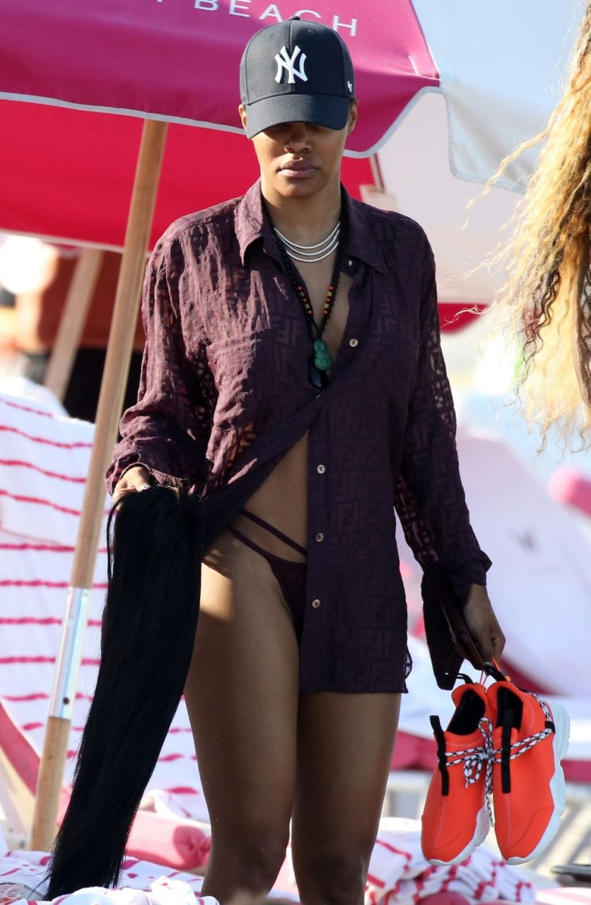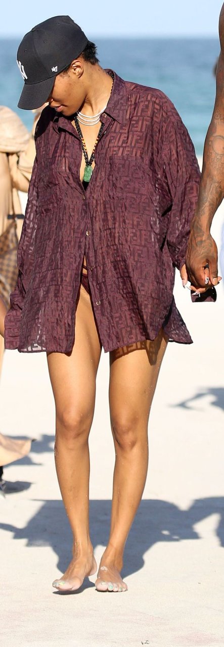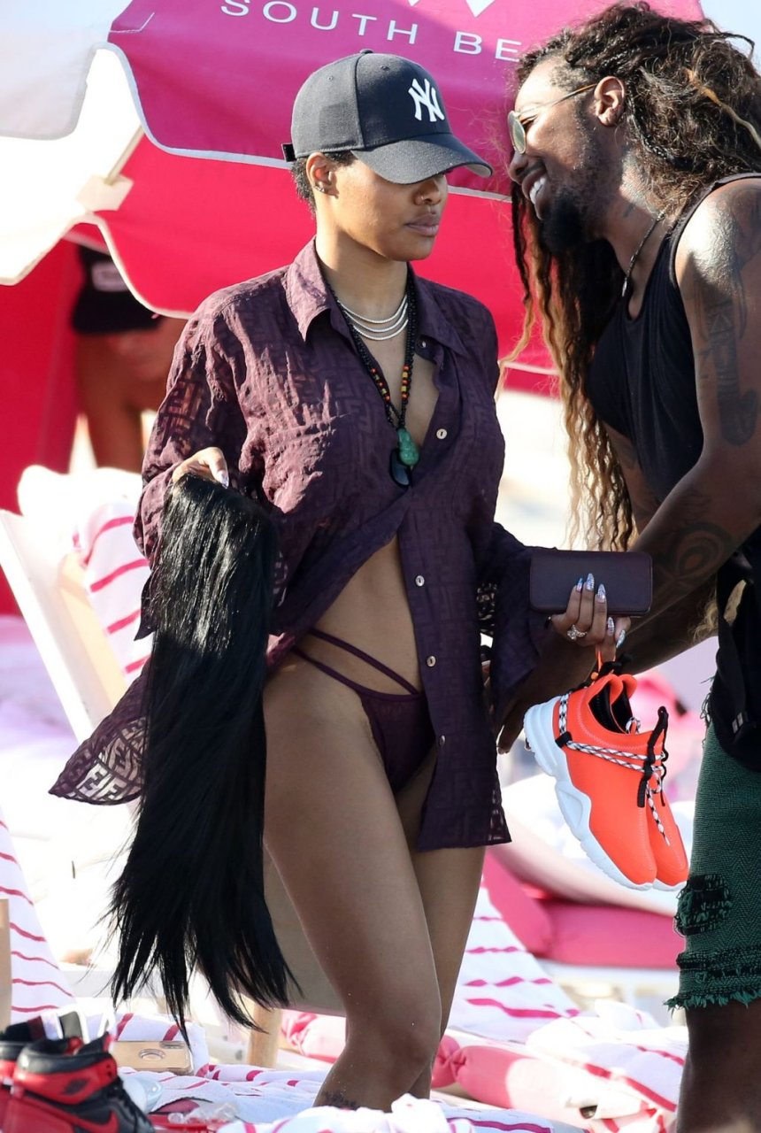 La cantante Teyana Taylor (28) pasa un día en la playa en familia con su esposo, el jugador de la NBA de Houston Rockets Iman Shumpert, y su hija en Miami Beach, Florida, 02/07/2019.