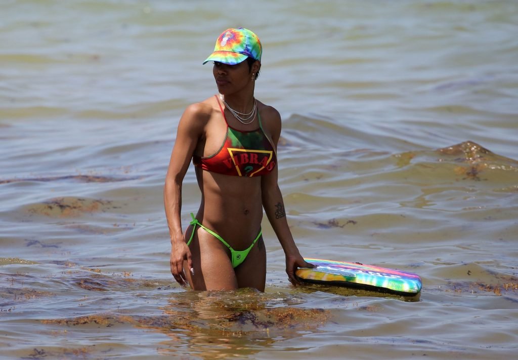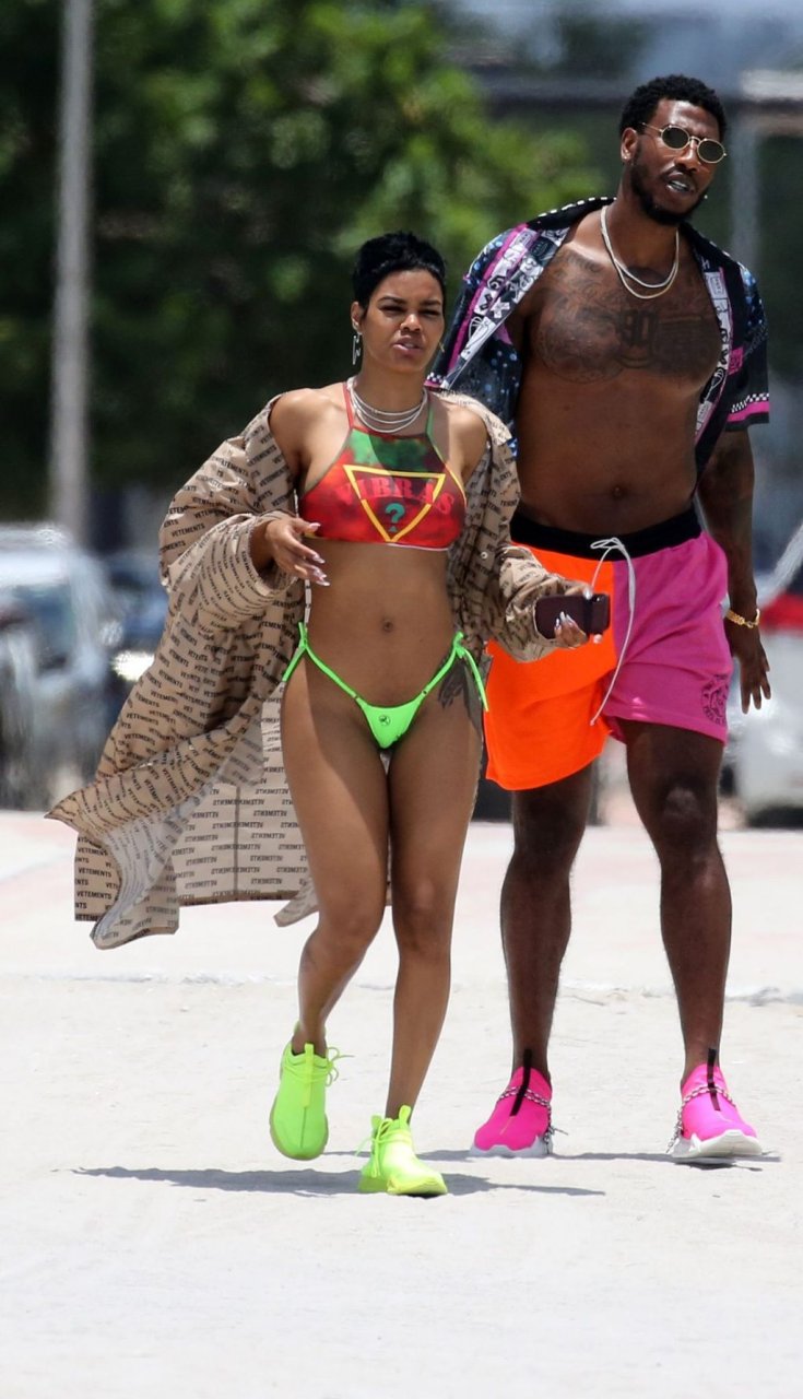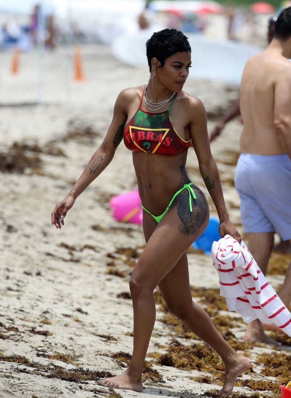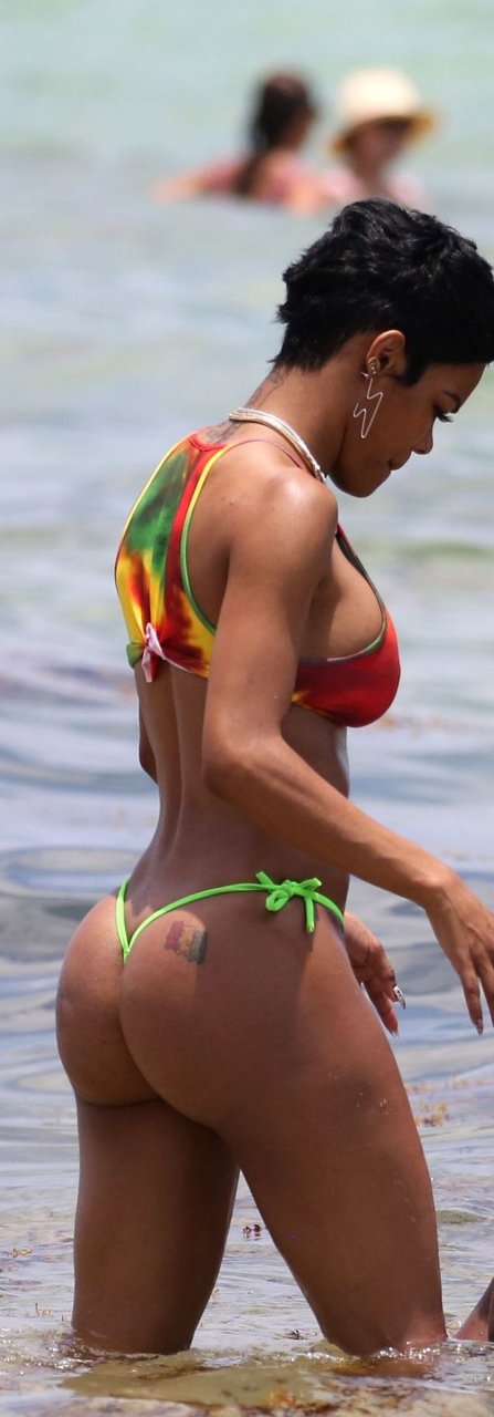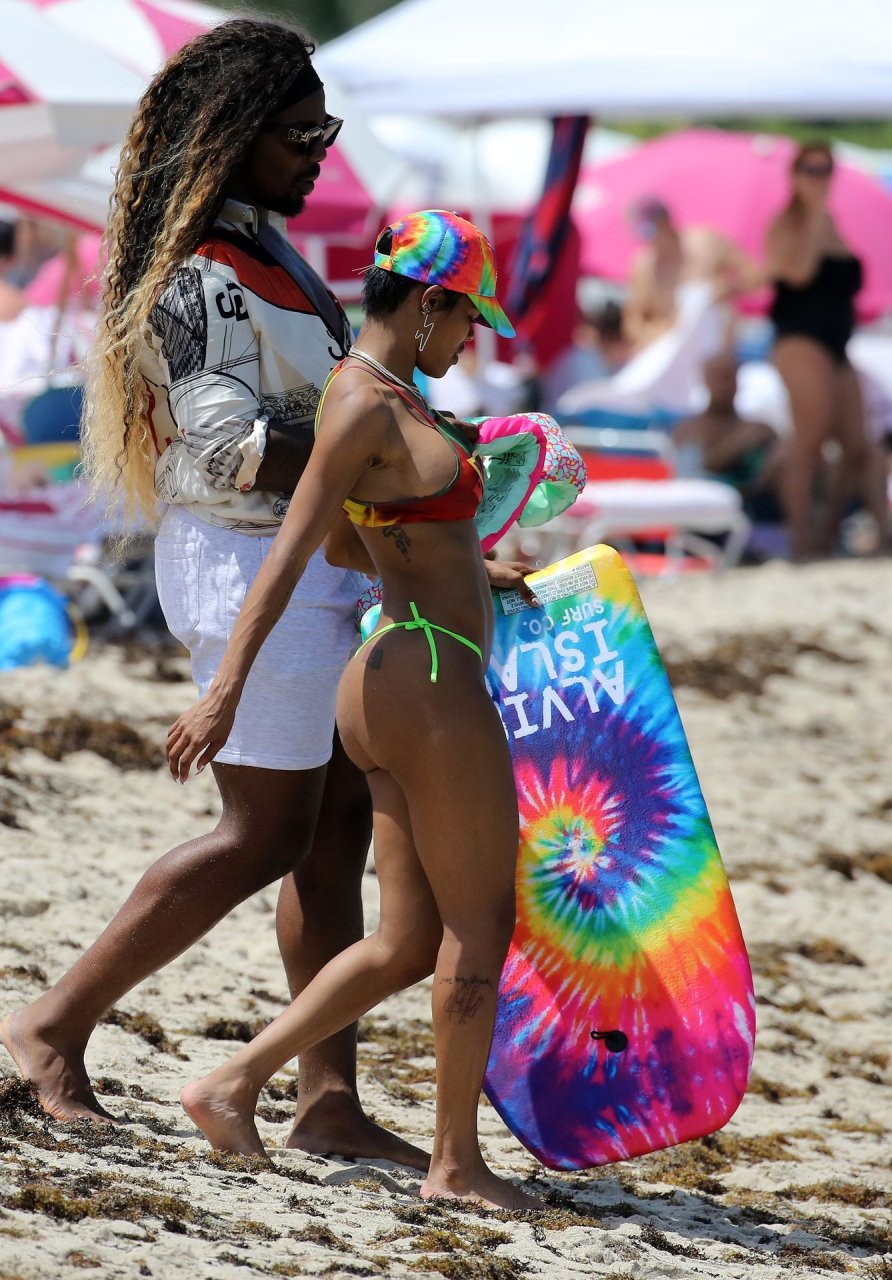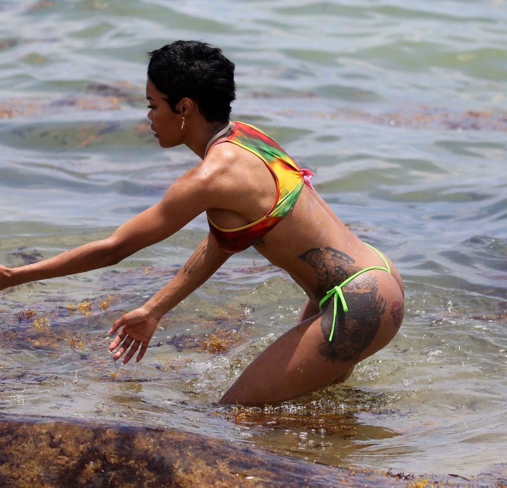 La cantante Teyana Taylor lleva un diminuto bikini de mezcla mientras disfruta del 4 de julio con su esposo, el jugador de la NBA Iman Shumpert, y su hija en Miami Beach, 04/07/2019.