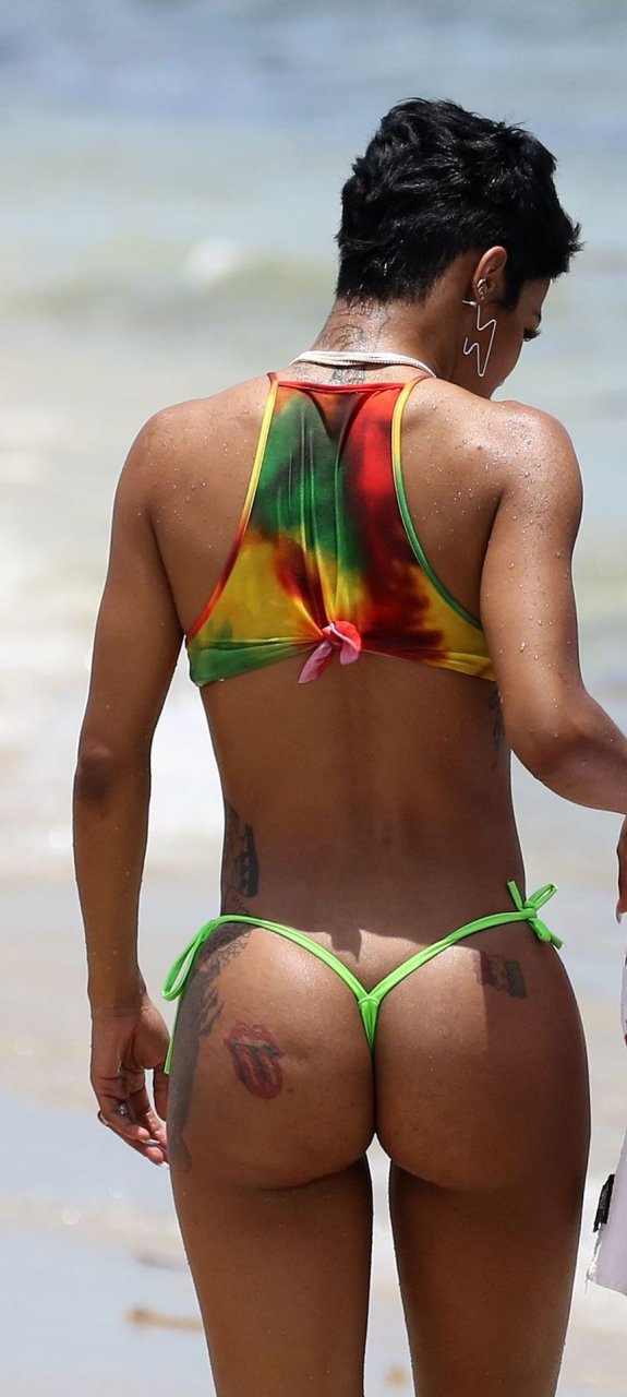Omg, un trasero redondo y un micro bikini mejor conocido como bikini brasileño. Esto le queda perfectamente, me gustaría ver más fotos de ella en la playa, muy sexy, ¡me puso duro!
