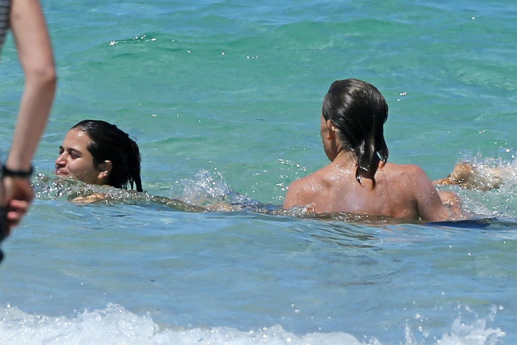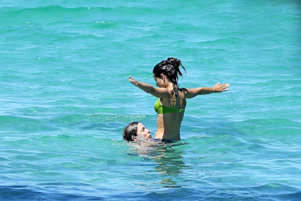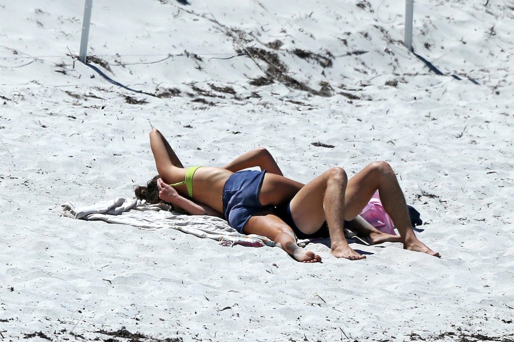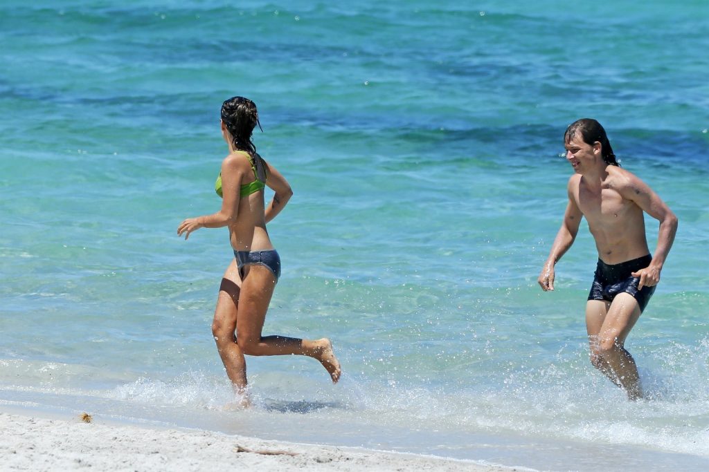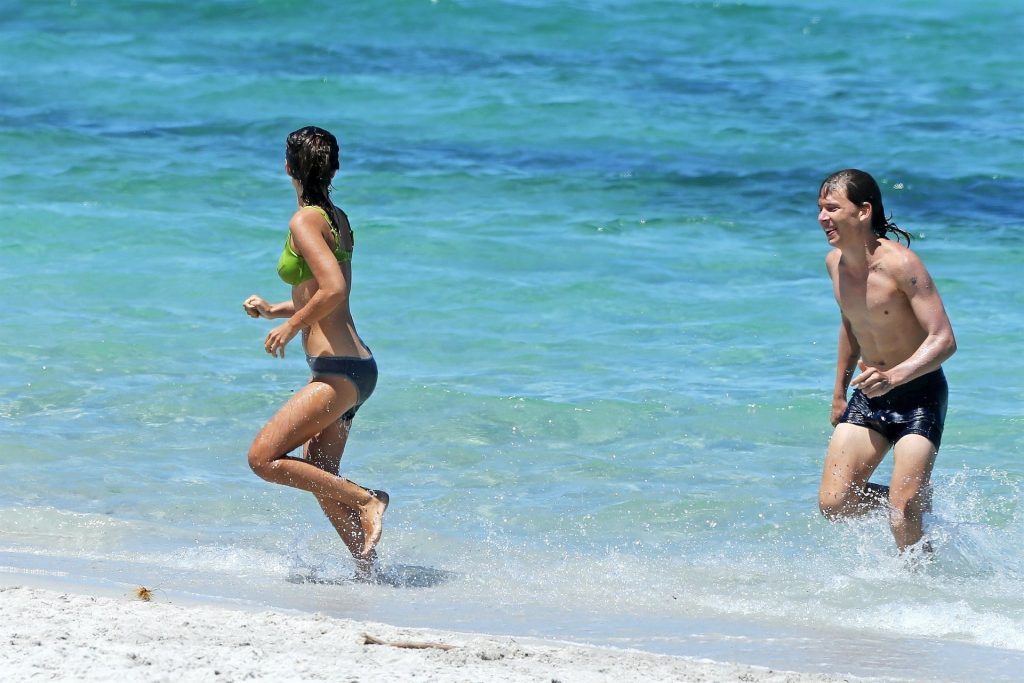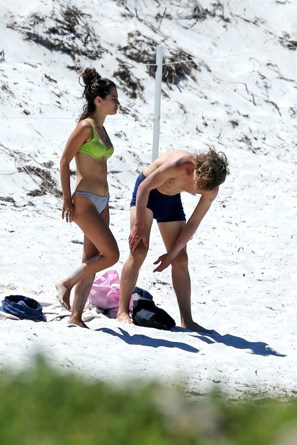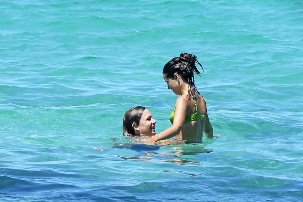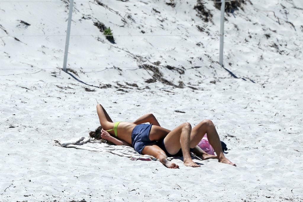 Tiger Lily Hutchence (23) está completamente enamorada del líder de Pond, Nick Allbrook, en la playa de Perth, Australia, 30/11/2019. La pareja se desnudó hasta la ropa interior. Tiger Lily parecía estar llorando cuando llegó a la playa antes de que su novio Nick la consolara. La joven pareja jugó en el agua juntos, luciendo muy enamorados antes de subirse a sus bicicletas.