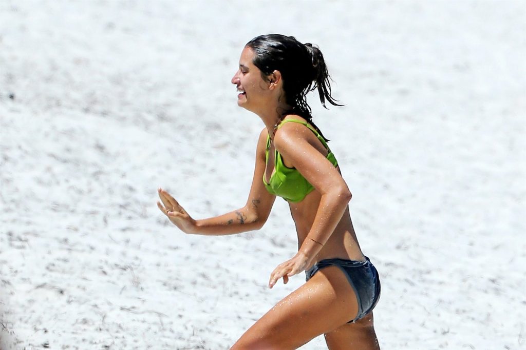 Tiger-Lily lleva un top de bikini mucho más grande aquí, quizás porque no quiere que sus pezones se salgan como la última vez, pero sus bragas de baño están demasiado sueltas y tiene que estar subiéndolas para evitar que su vello púbico quede expuesto al mundo.