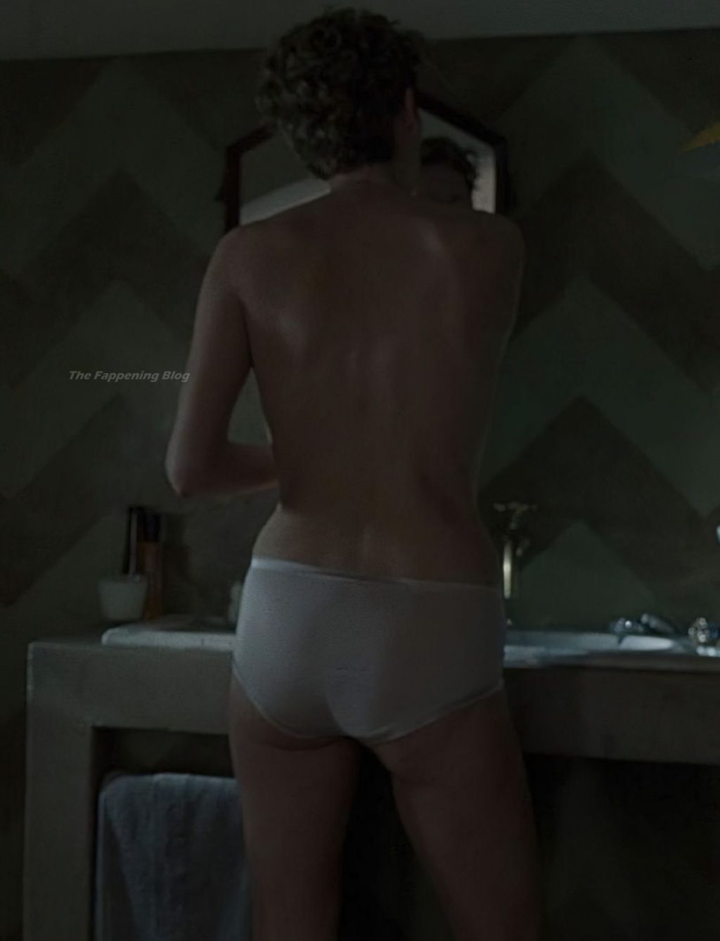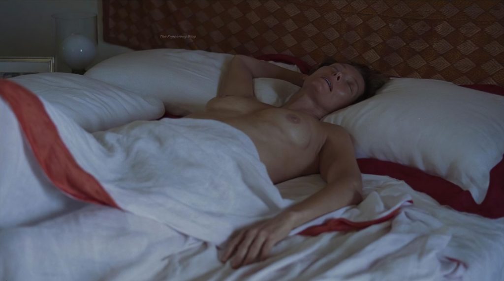 Tilda Swinton is nude as she rides a guy in bed, then being flipped underneath him. She then gives us a look at her breasts and bush as she gets out of bed and walks toward the camera.