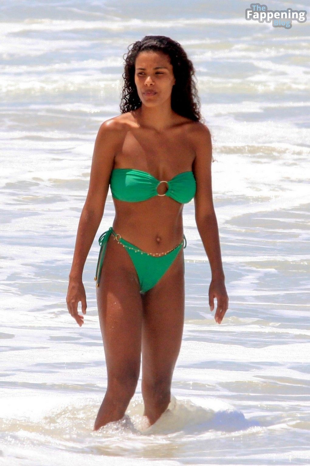 Tina Kunakey y Vincent Cassel fueron vistos en la playa: Tina con un traje de baño blanco con lunares negros tomaba el sol y nadaba, y Vincent con un bañador negro surcaba las olas en paddle surf.