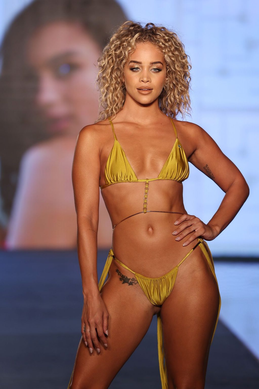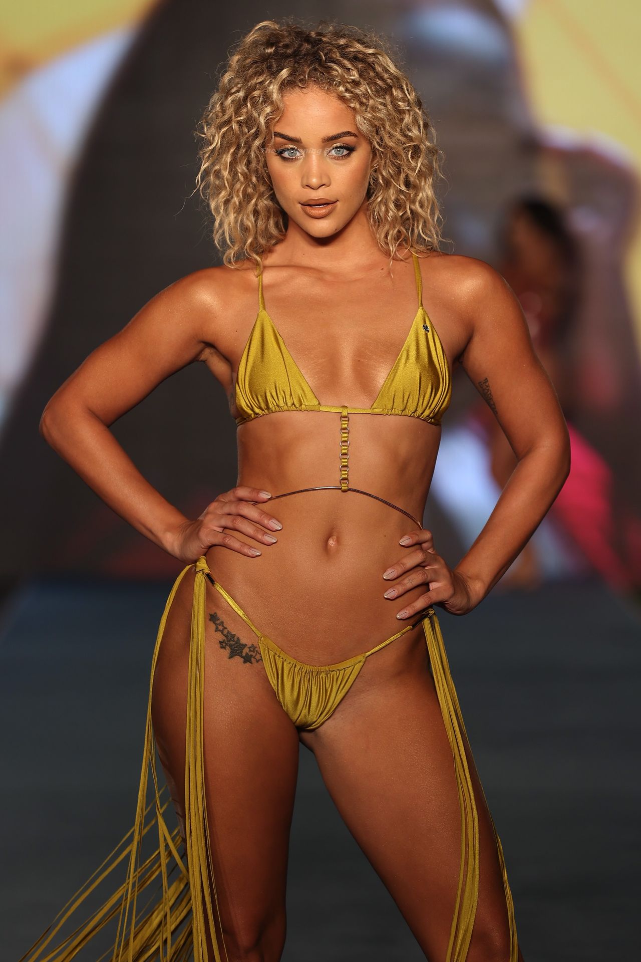 La modelo Jasmine Sanders camina por la pasarela durante el desfile de trajes de baño de Sports Illustrated 2021 en Paraiso Miami Beach en Mondrian South Beach, 10/07/2021.