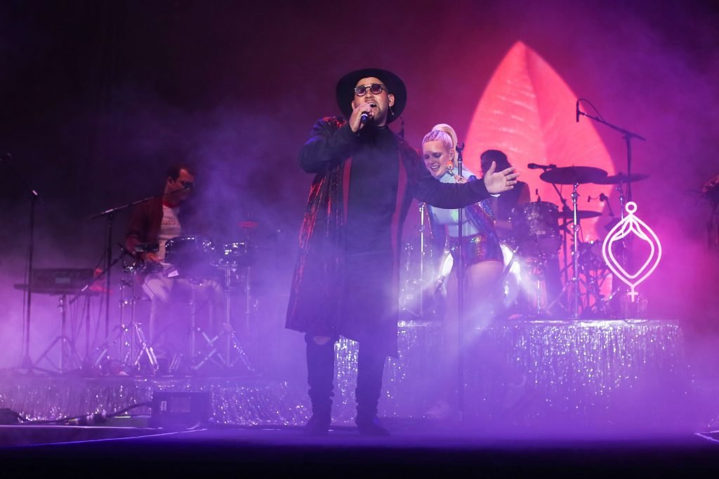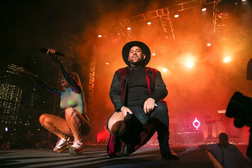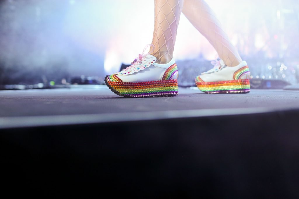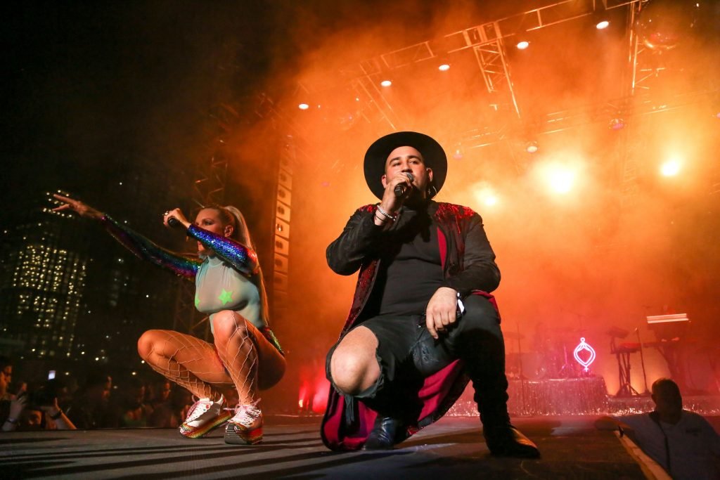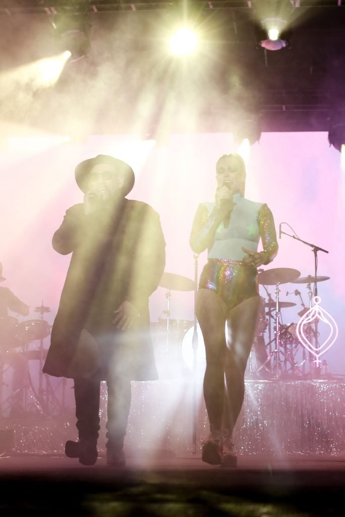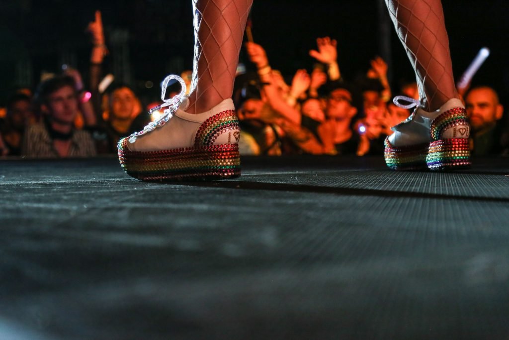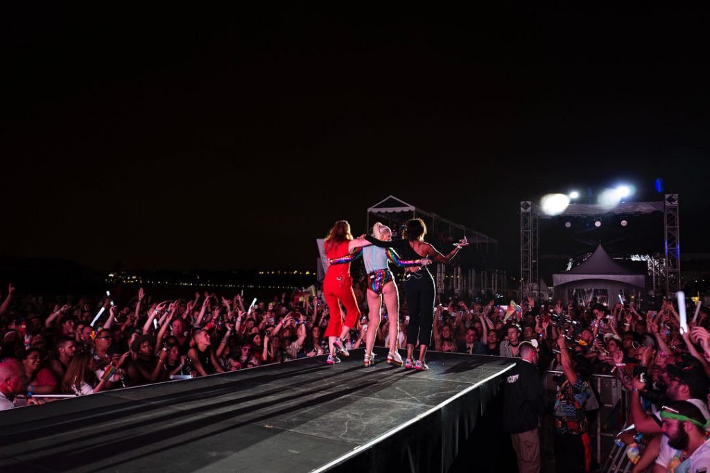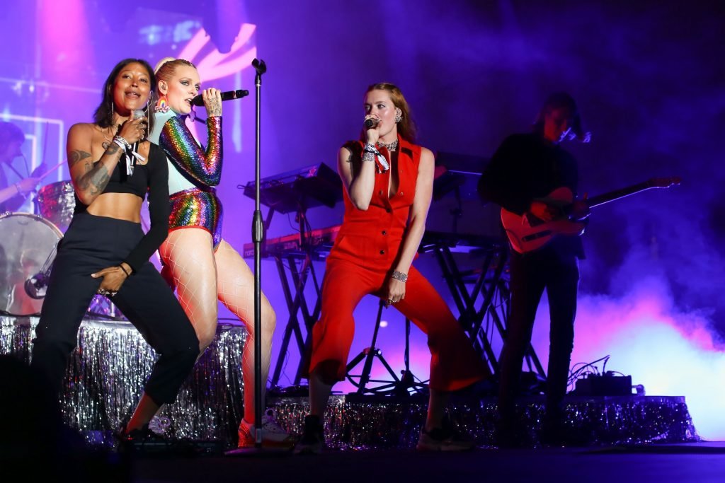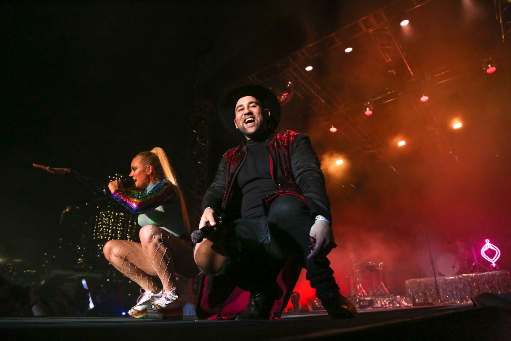Tove Lo actúa en el escenario en Pride Island en Nueva York, 23/06/2018. La cantante sueca de 30 años llevaba una blusa de malla azul con pasties, a veces mostrando su delgado trasero.