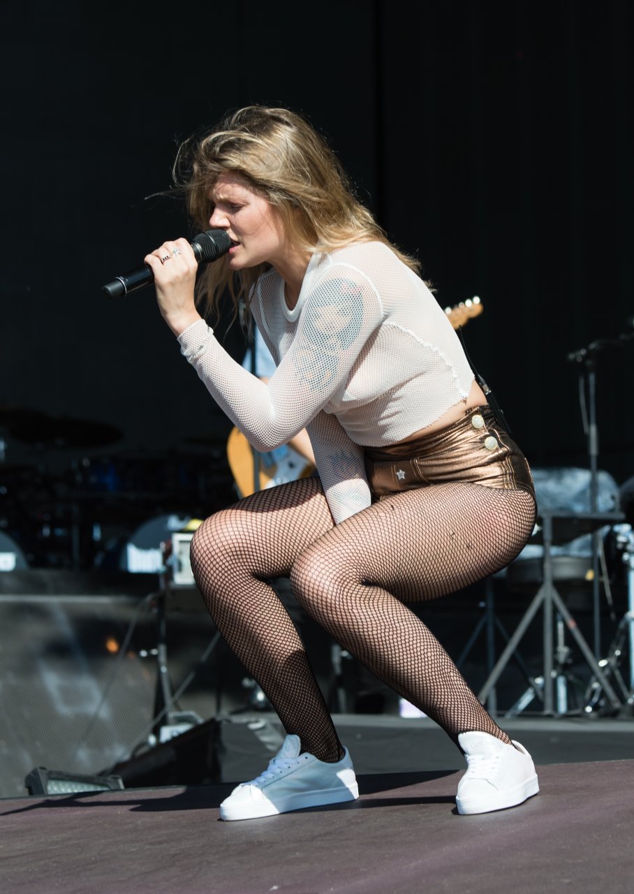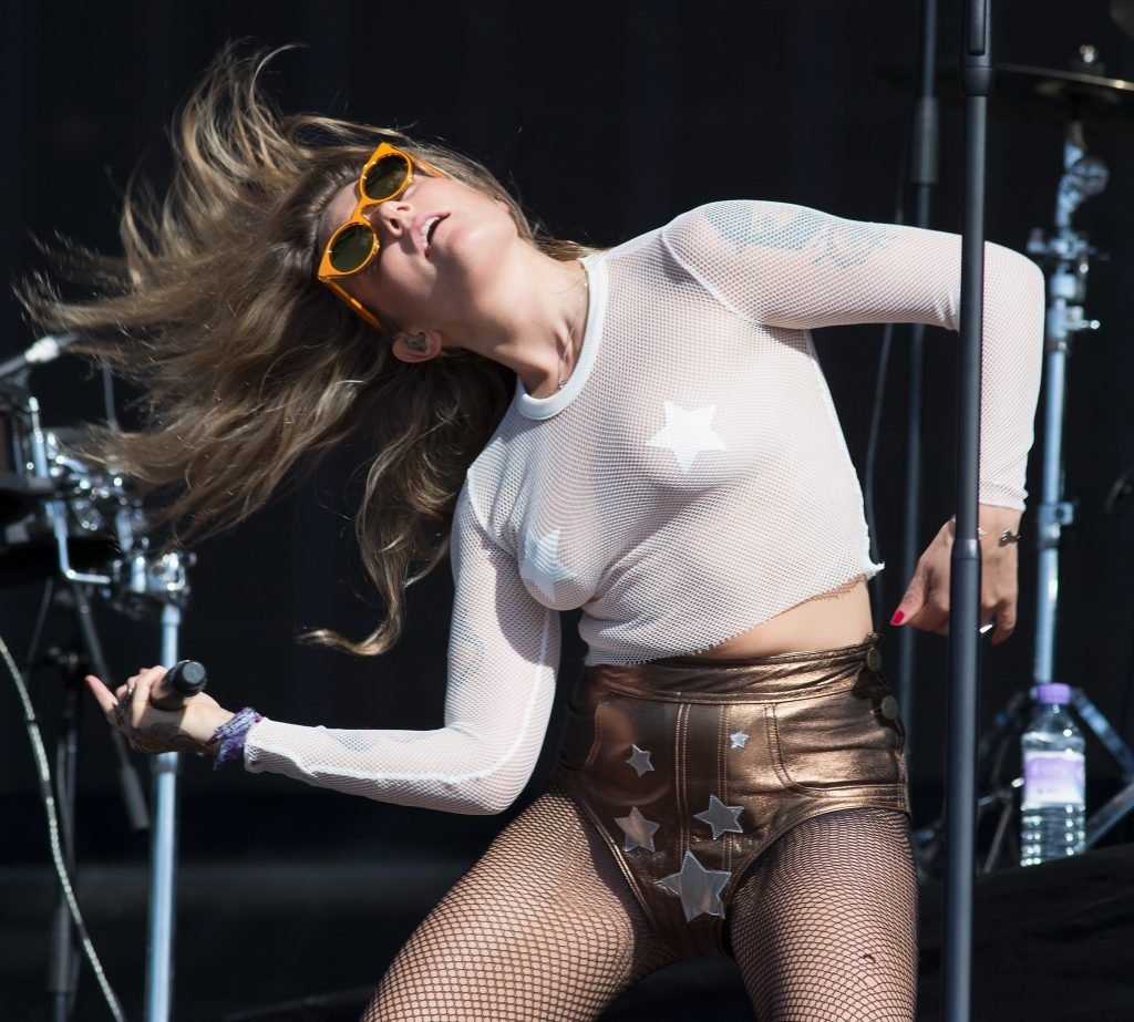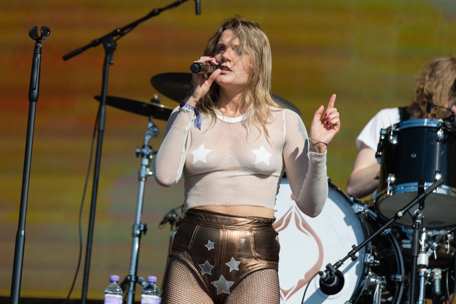 Tove Lo actúa en el escenario con una camiseta blanca de malla y pasties en sus pechos en el British Summer Time Festival en Hyde Park, Londres, 07/02/2017. Ebba Nilsson es una cantautora. Edad – 29.