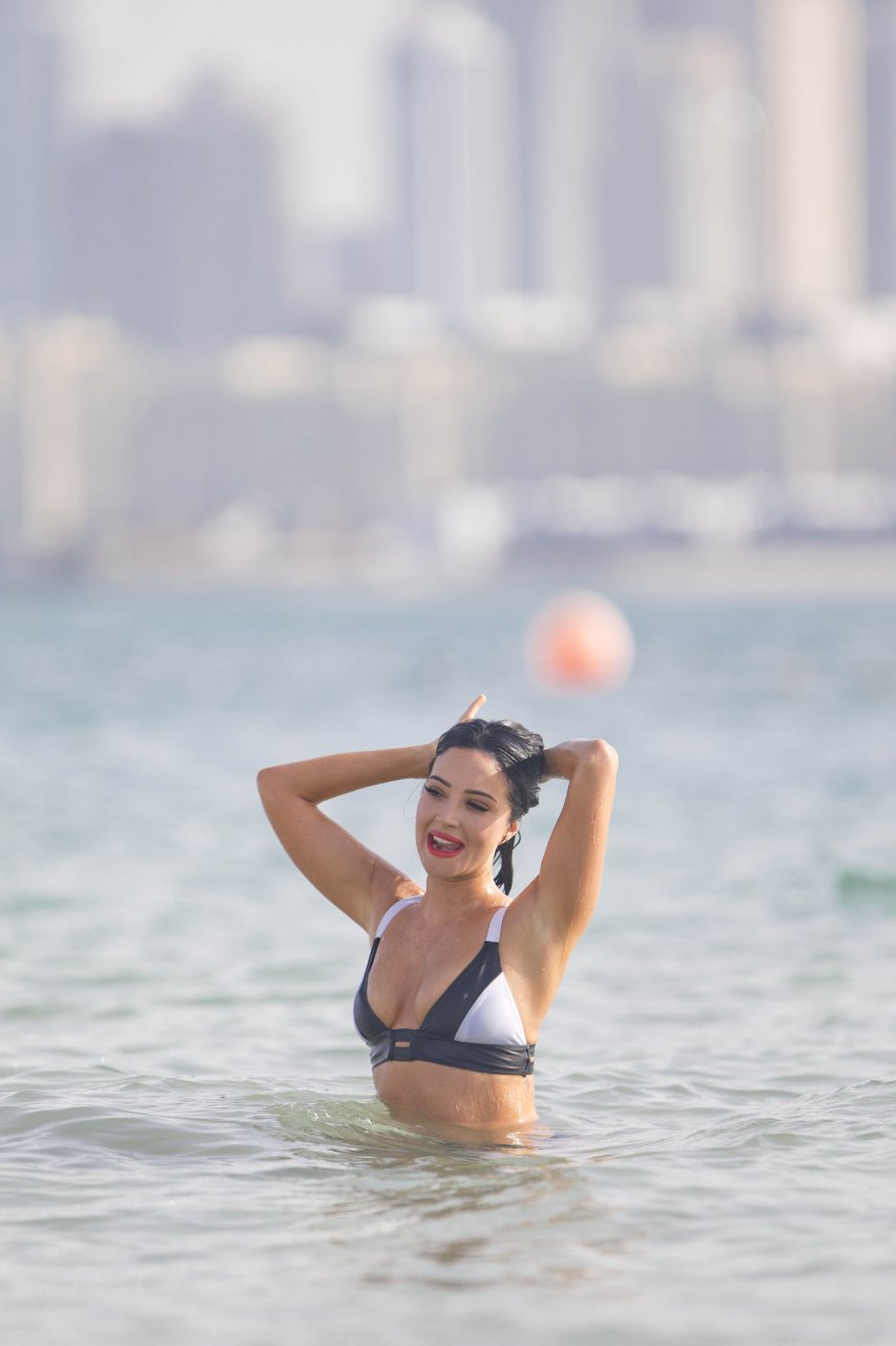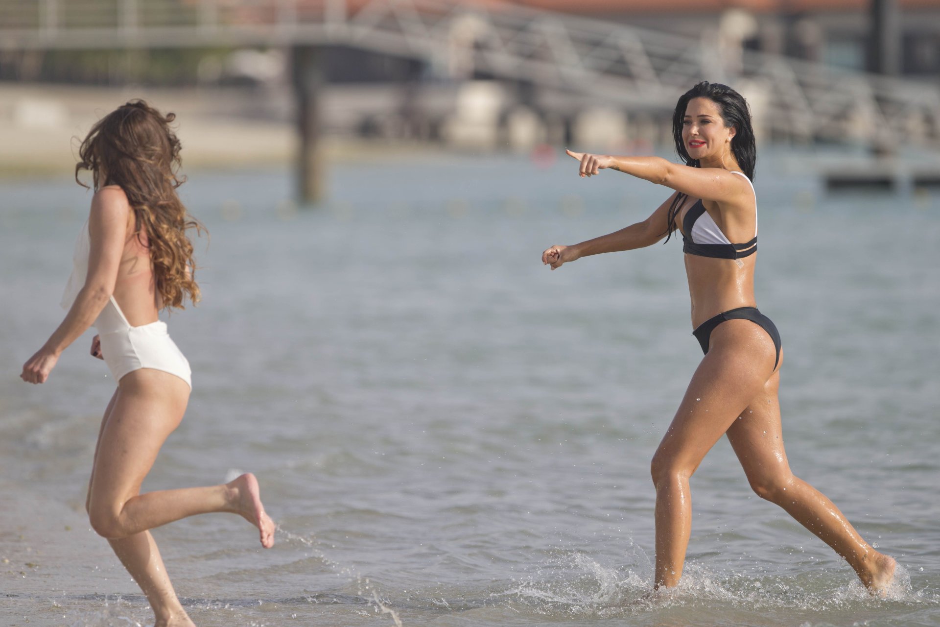 Tulisa Contostavlos y una chica desconocida vistas en Dubái usando un bikini, 19/03/2016. Cuerpo mojado, pequeño deslizamiento de pezón y bonito trasero. Tulisa Contostavlos es una cantante, compositora, actriz y personalidad televisiva inglesa. Edad: 27 (13 de julio de 1988).