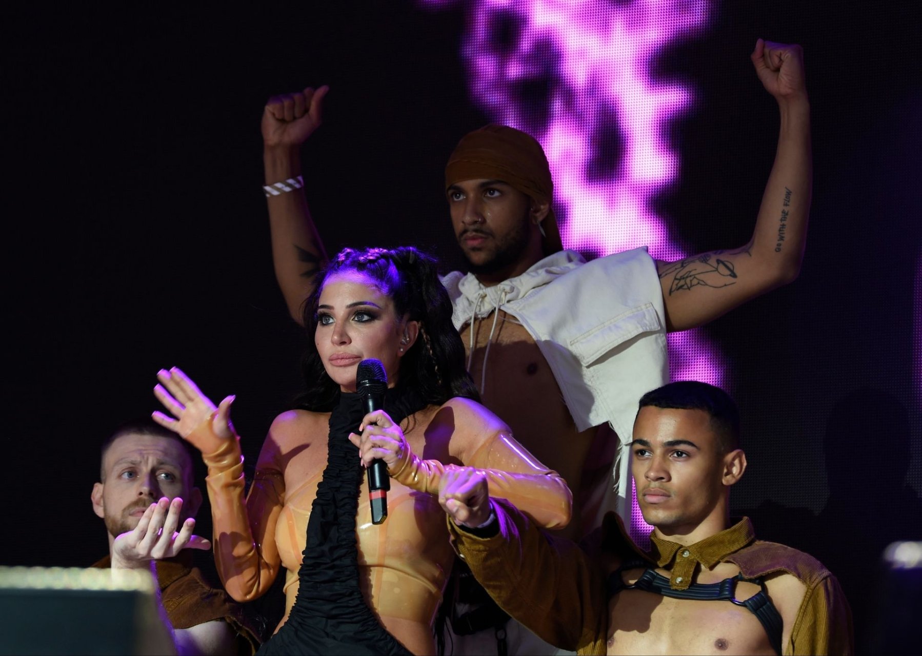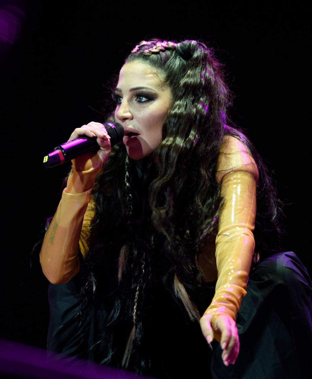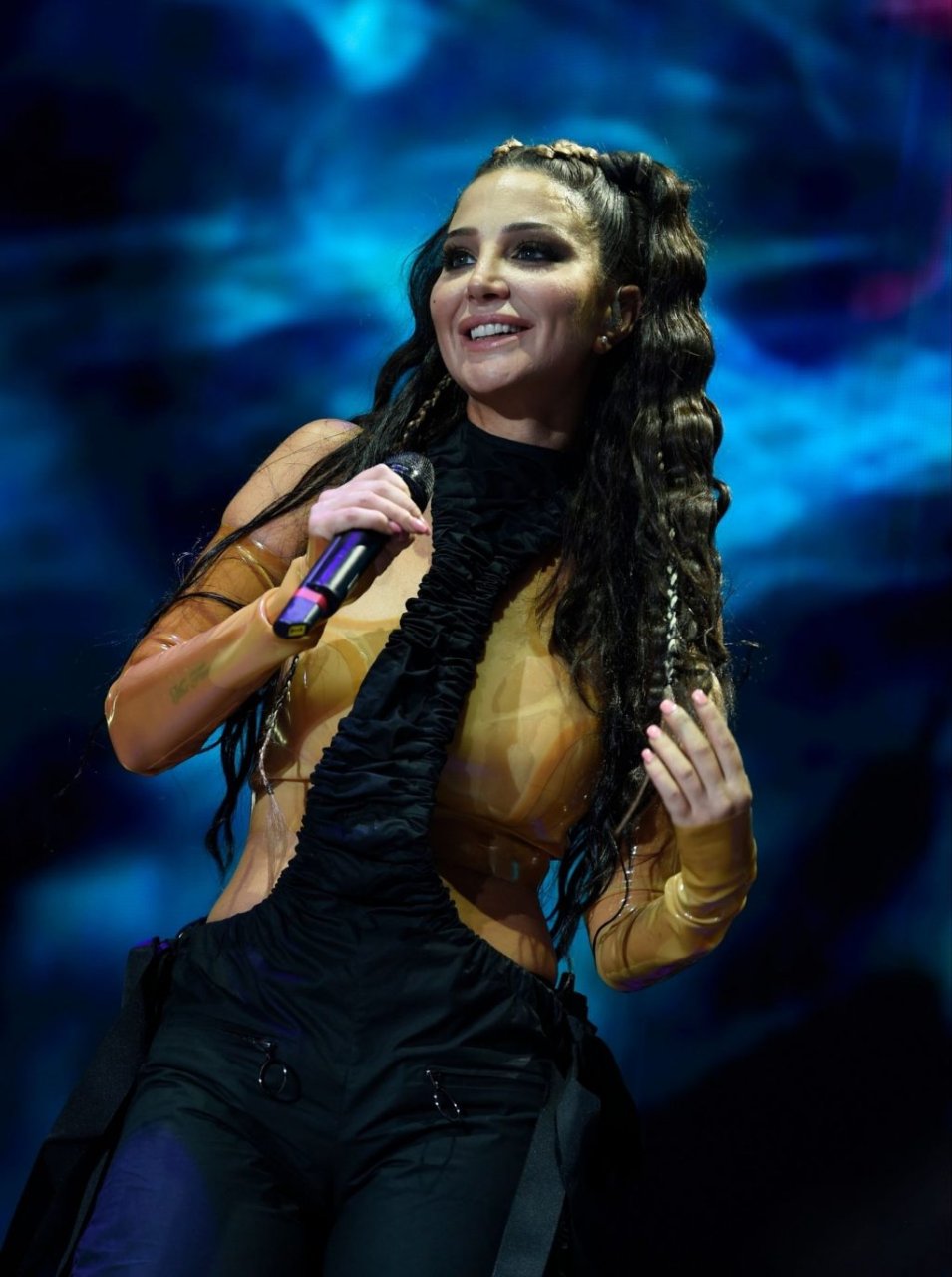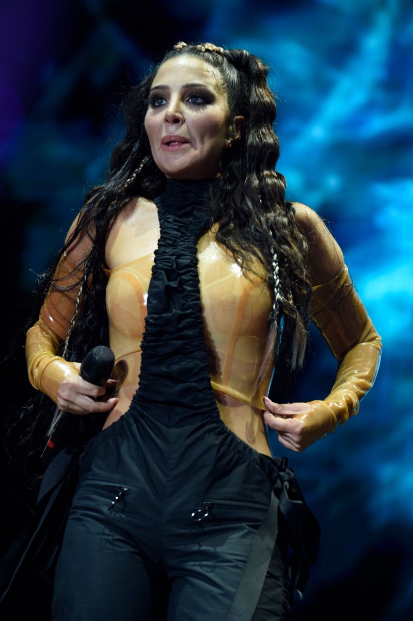 La cantante y compositora inglesa Tulisa (Tula Paulinea Contostavlos) fue fotografiada mientras actuaba en vivo en Manchester Pride, 25/08/2019.