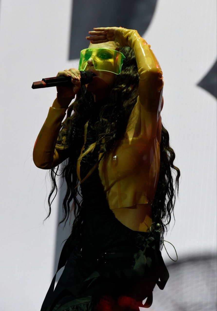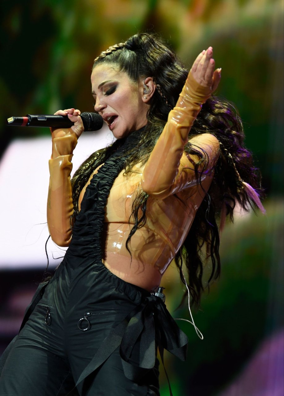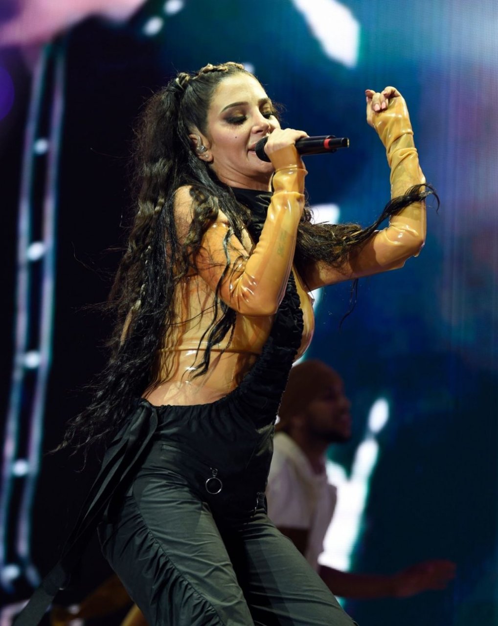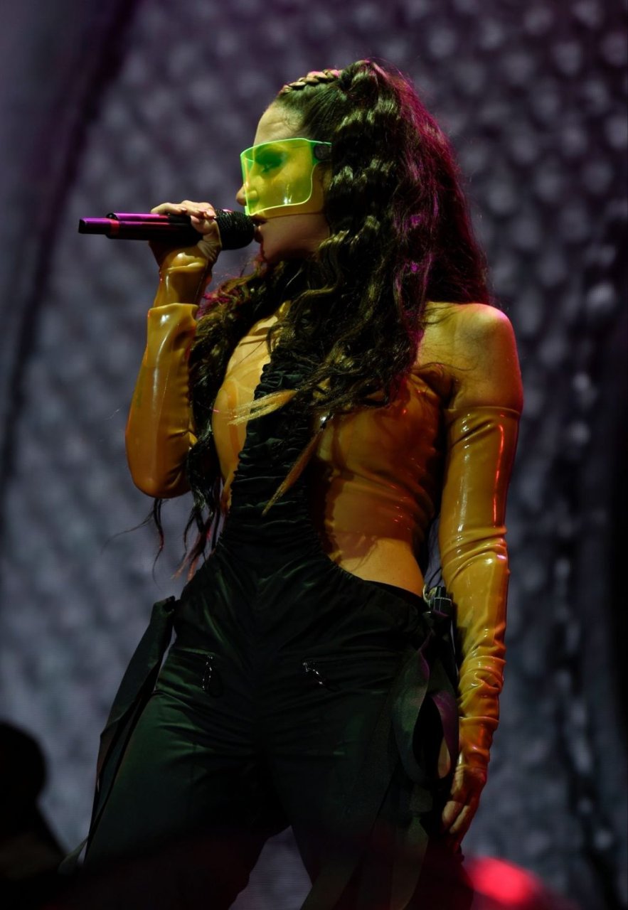 La cantante y compositora inglesa Tulisa (Tula Paulinea Contostavlos) fue fotografiada mientras actuaba en vivo en Manchester Pride, 25/08/2019.