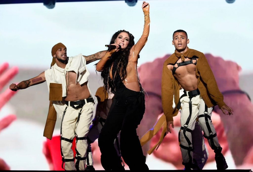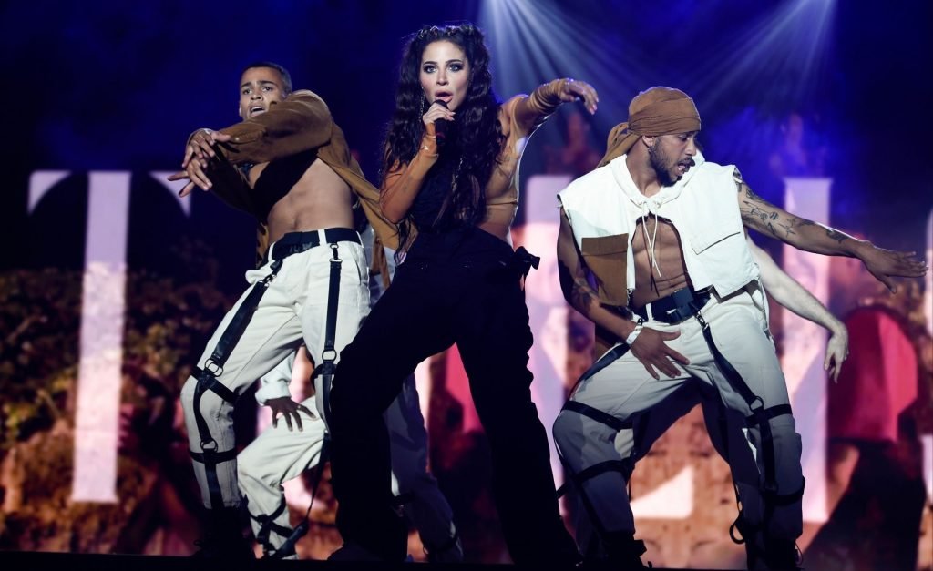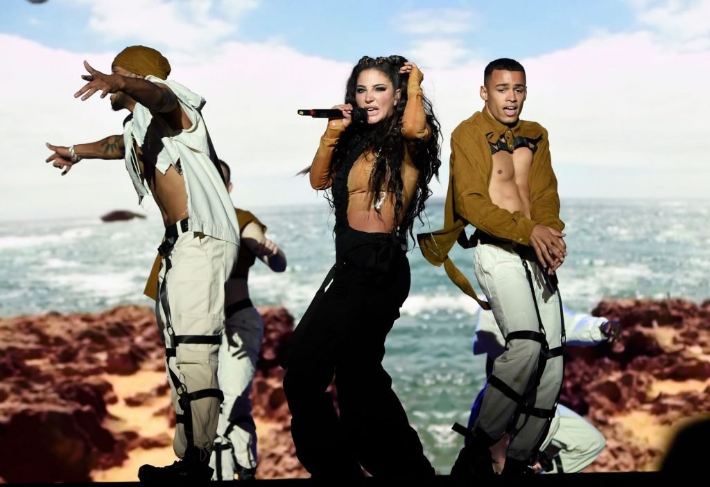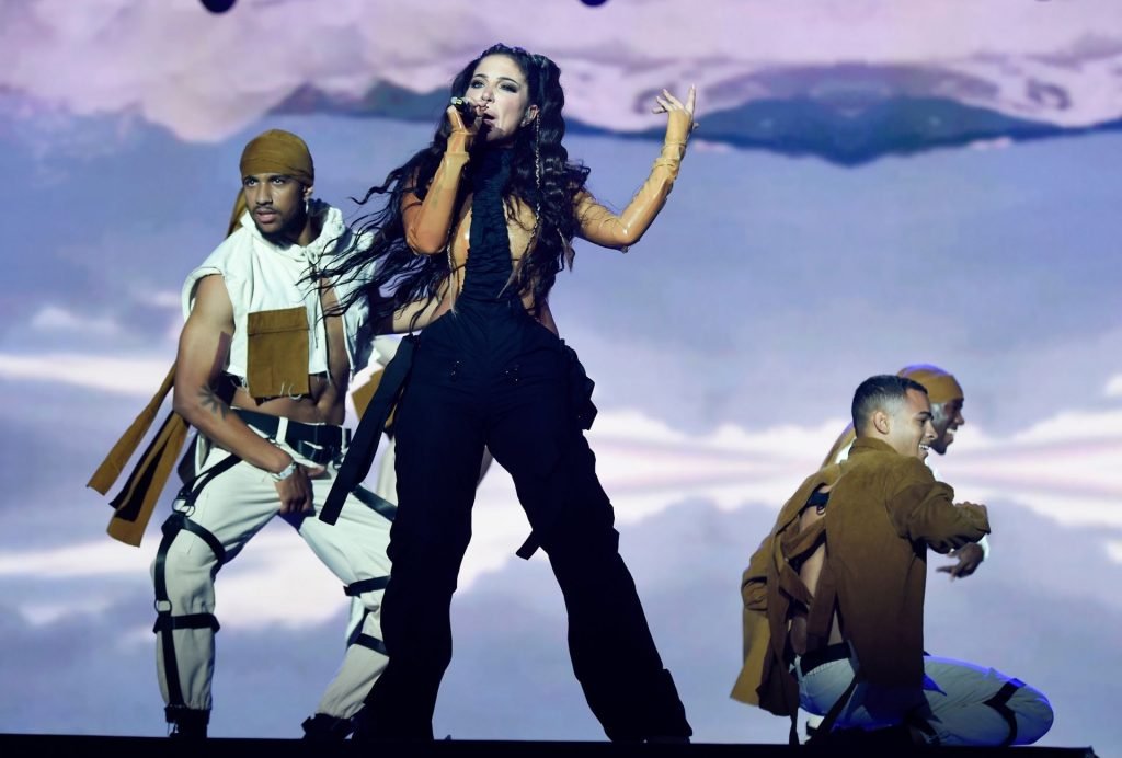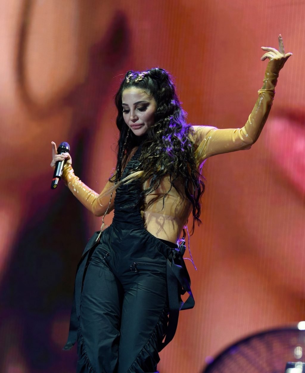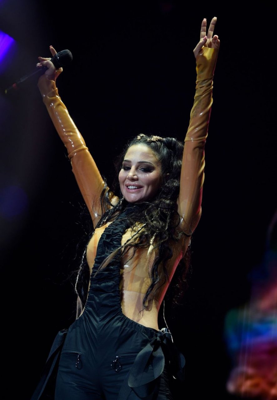 La cantante y compositora inglesa Tulisa (Tula Paulinea Contostavlos) fue fotografiada mientras actuaba en vivo en Manchester Pride, 25/08/2019.