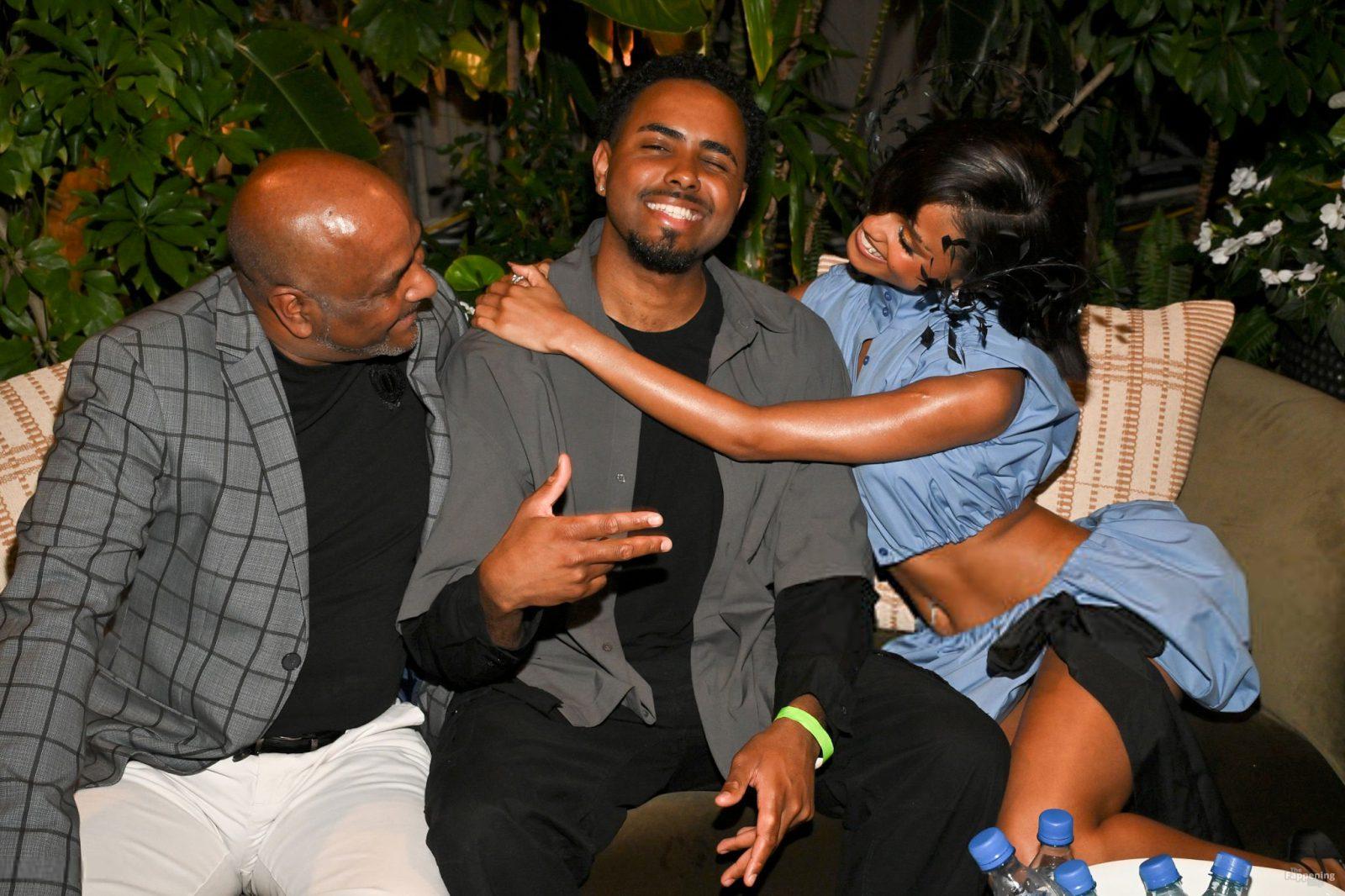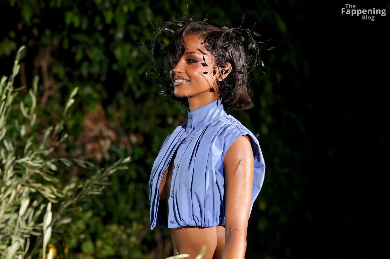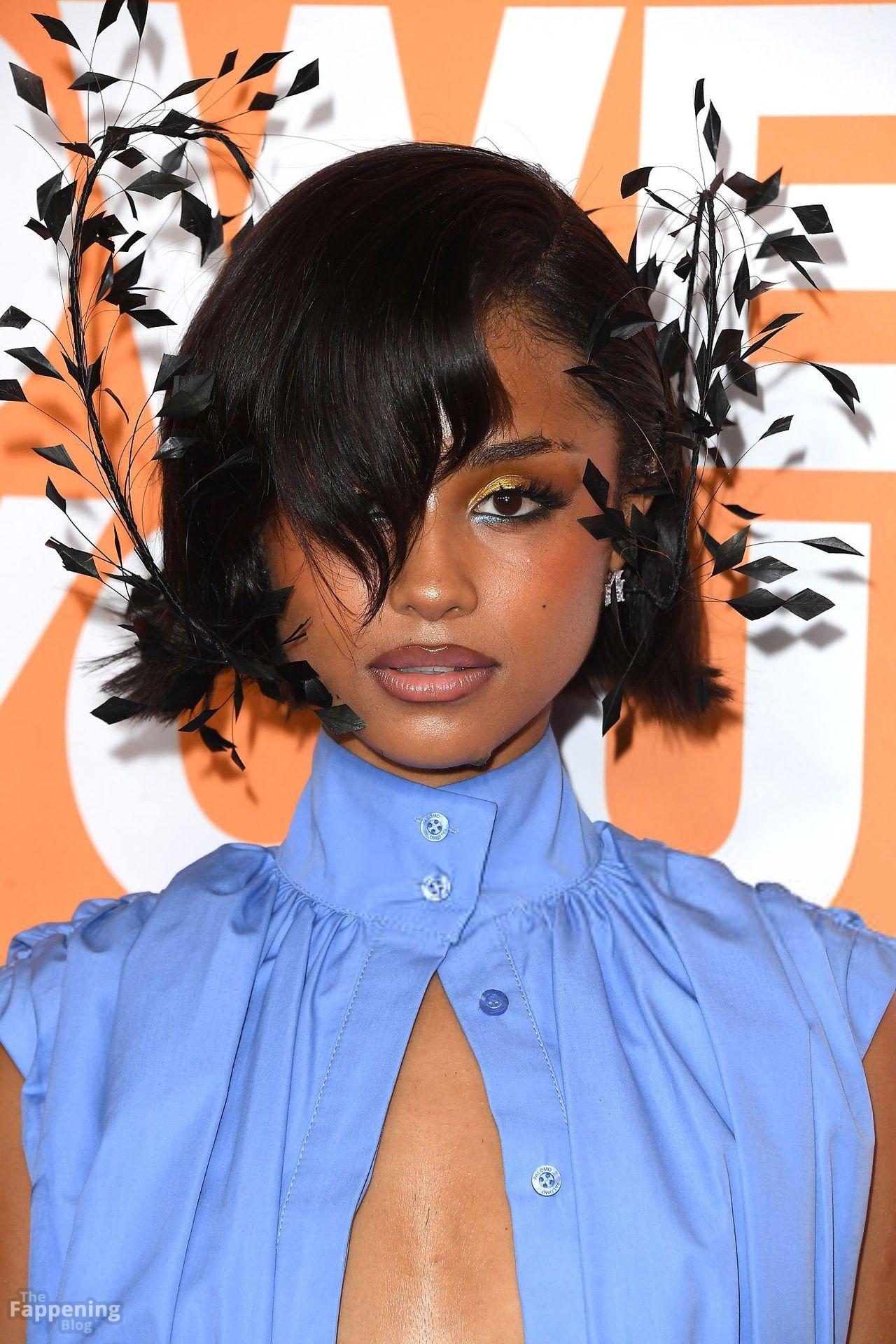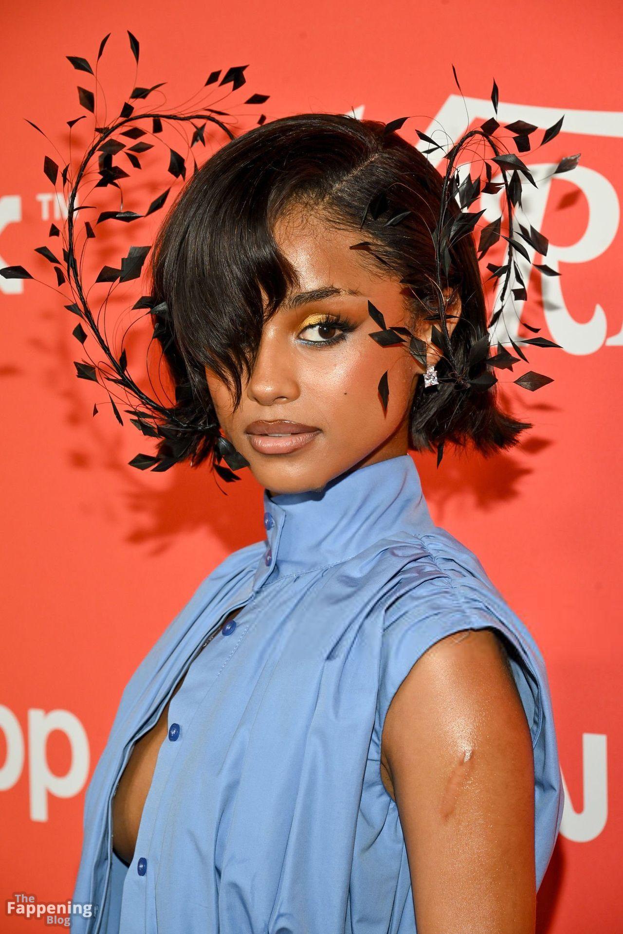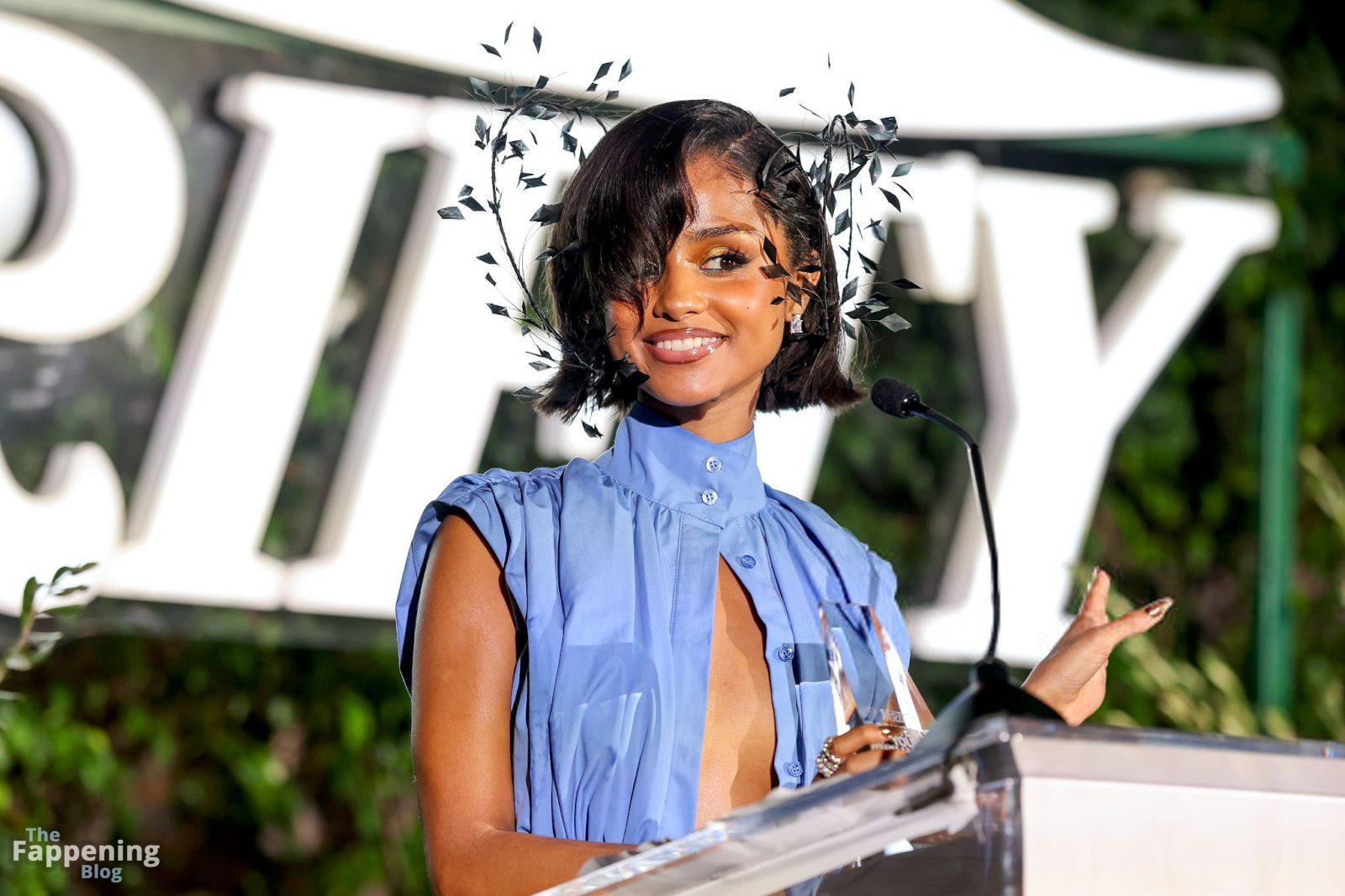 Tyla fue fotografiada en el evento Variety Power Of Young Hollywood 2025 en el Four Seasons de Beverly Hills, luciendo un top azul sin sostén con un flex de pecho, una minifalda.