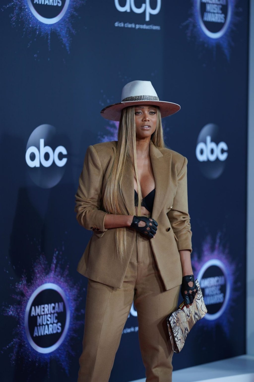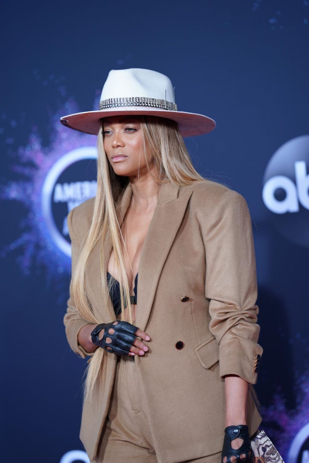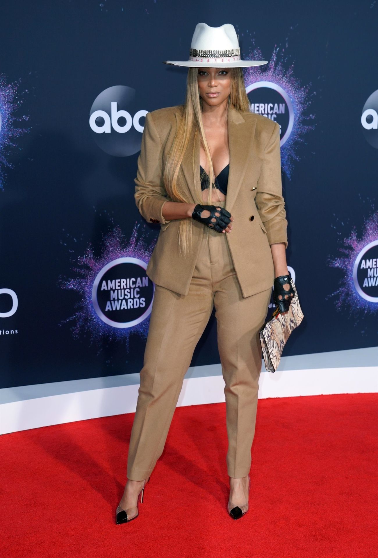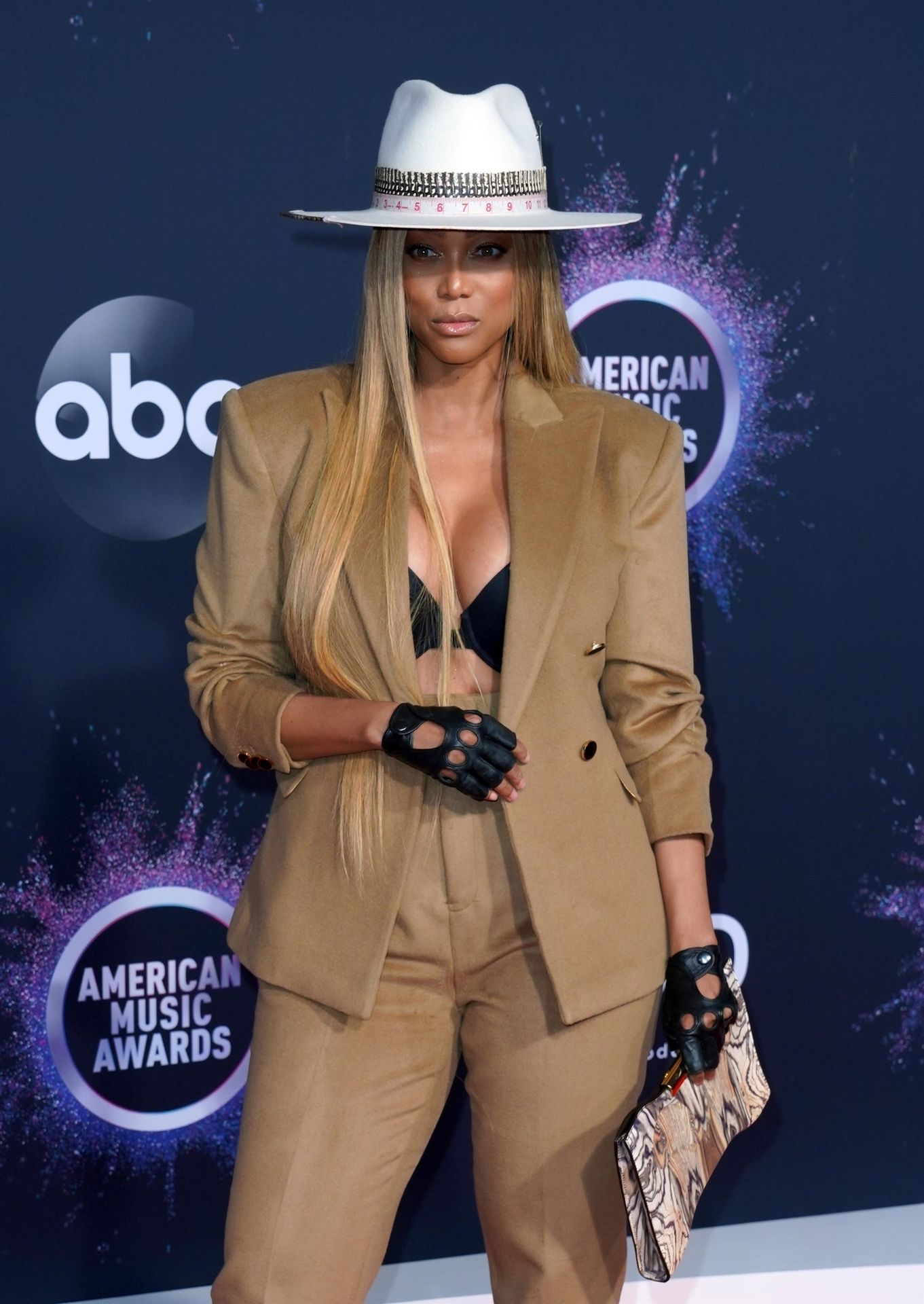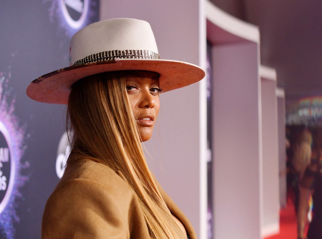 Modelo americana con curvas, presentadora de televisión Tyra Banks asiste a los American Music Awards 2019 en el Microsoft Theater de Los Ángeles, 24/11/2019. Parece Pharrell Williams con tetas.