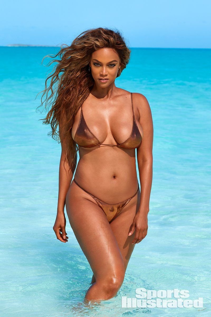 ¡Está sexy para su edad! La personalidad de televisión de 45 años Tyra Banks fue fotografiada por Laretta Houston para la Edición de Trajes de Baño 2019 de Sports Illustrated en Great Exuma, Bahamas. ¡Todos nuestros chicos quisieran verla con los pechos al descubierto aquí!