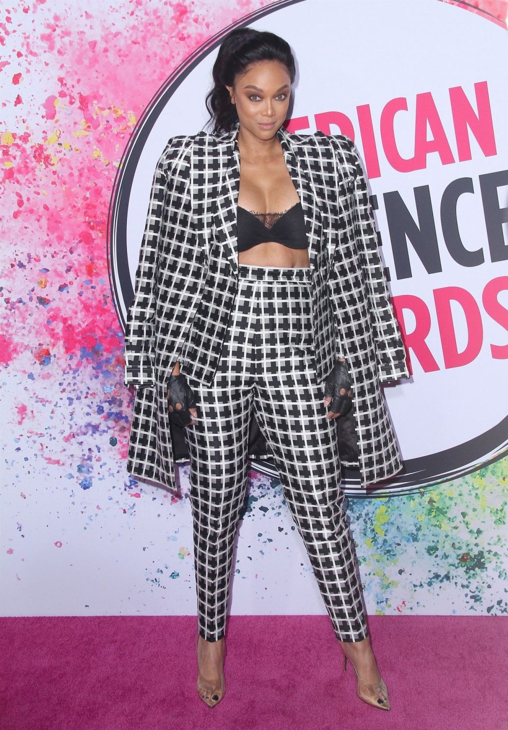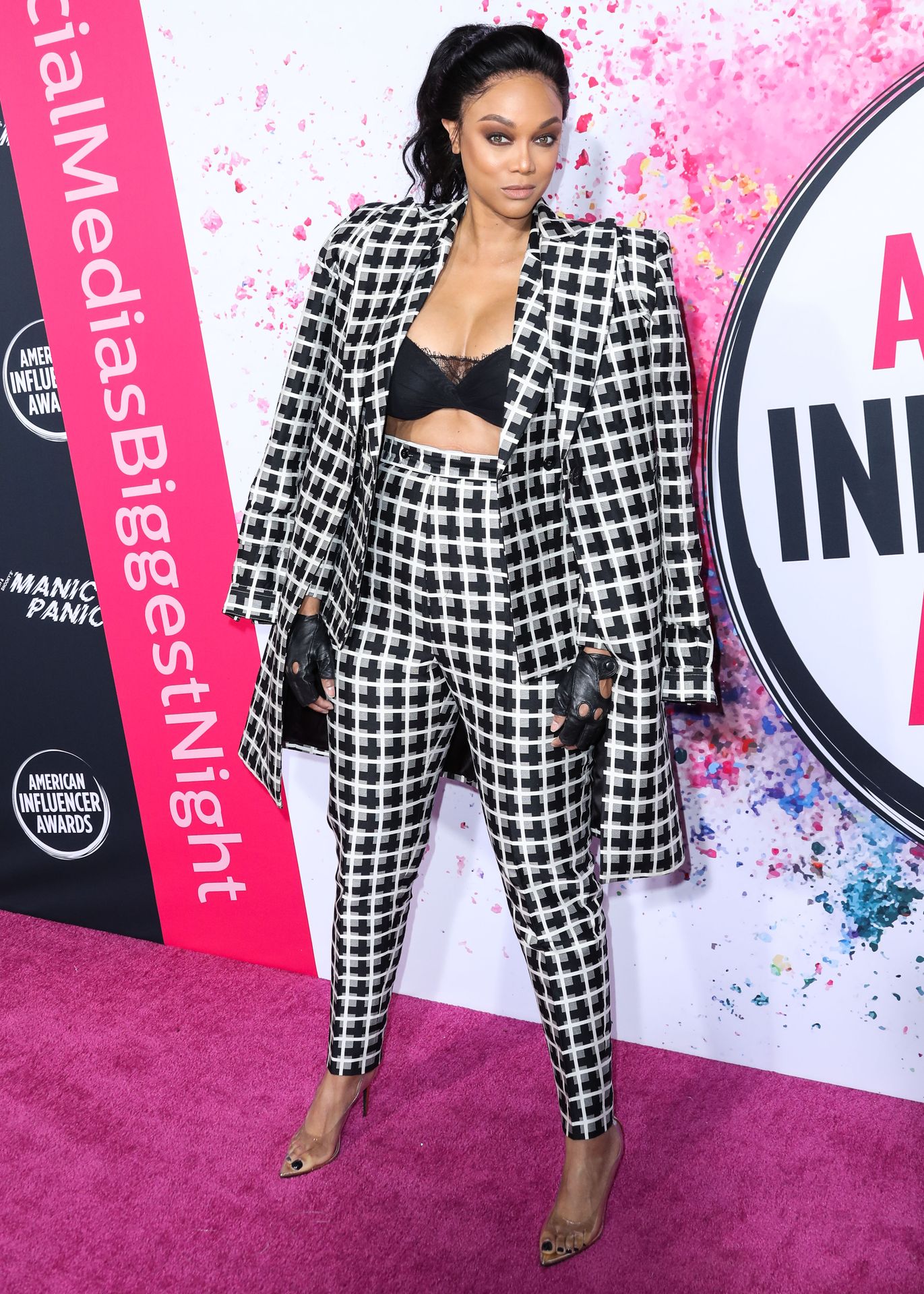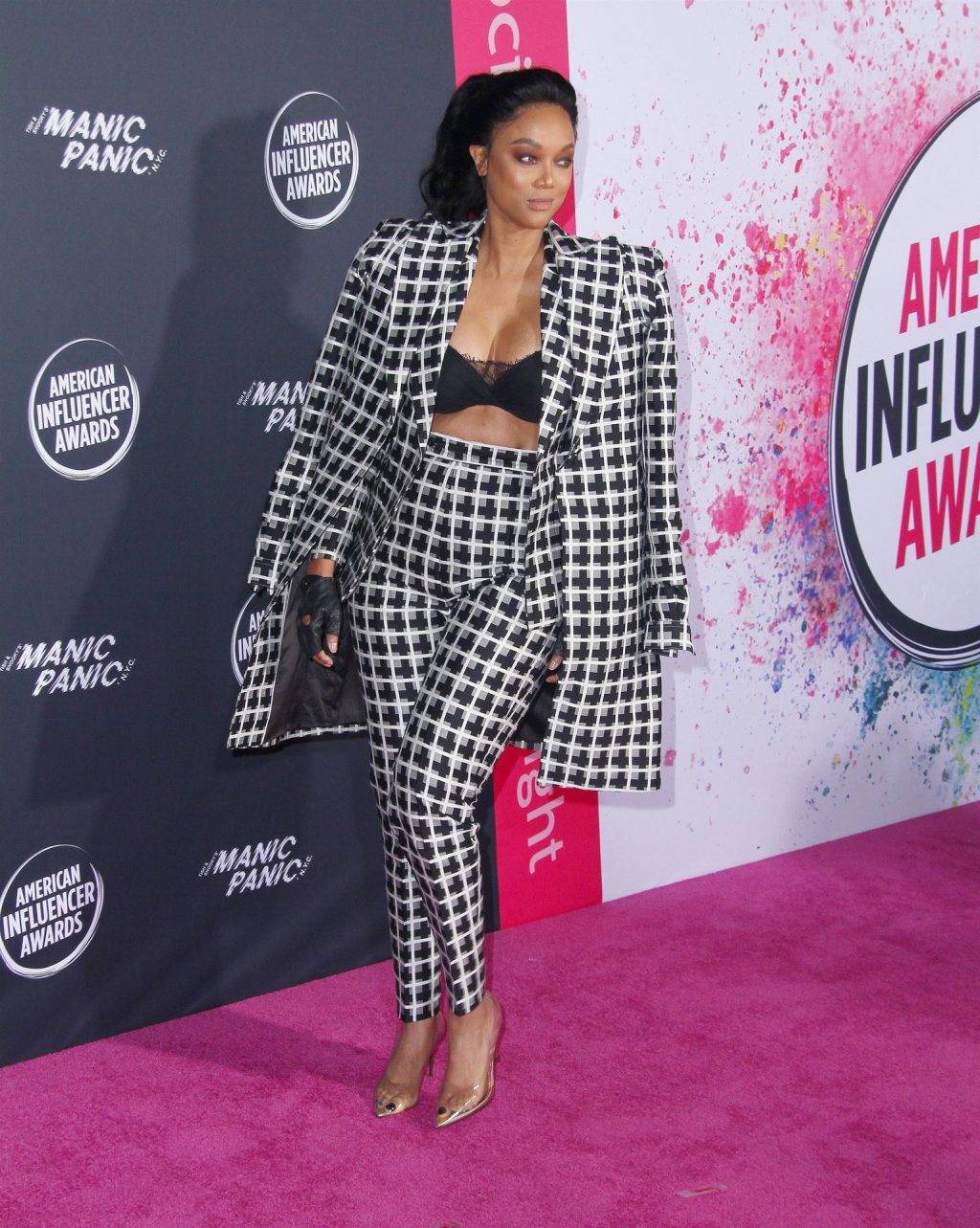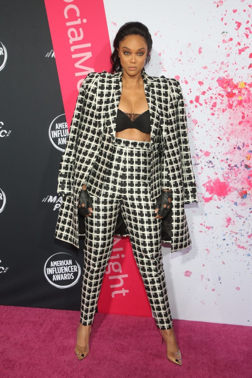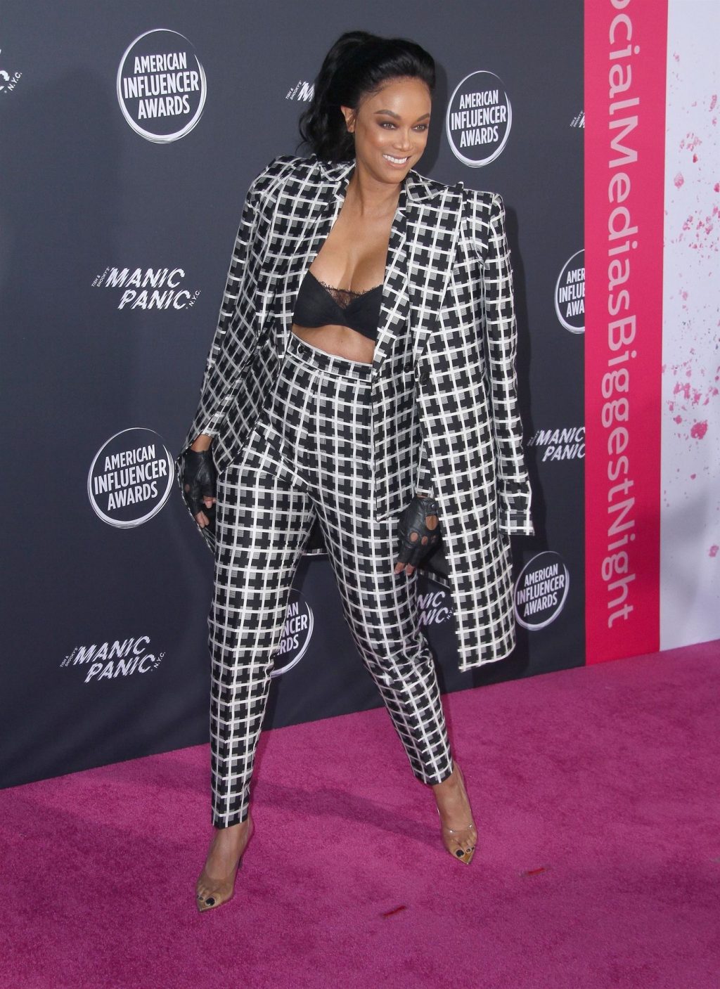 Model/modelo y actriz Tyra Banks mostró su bonito escote en la 2ª Edición Anual de los American Influencer Awards 2019 celebrada en el Dolby Theatre en Hollywood, 18/11/2019.