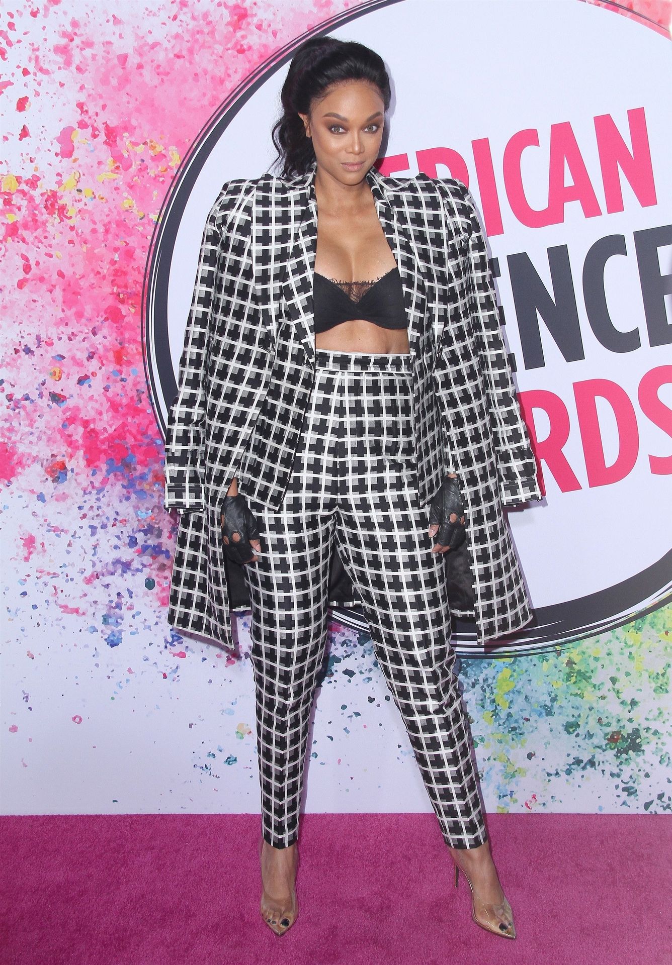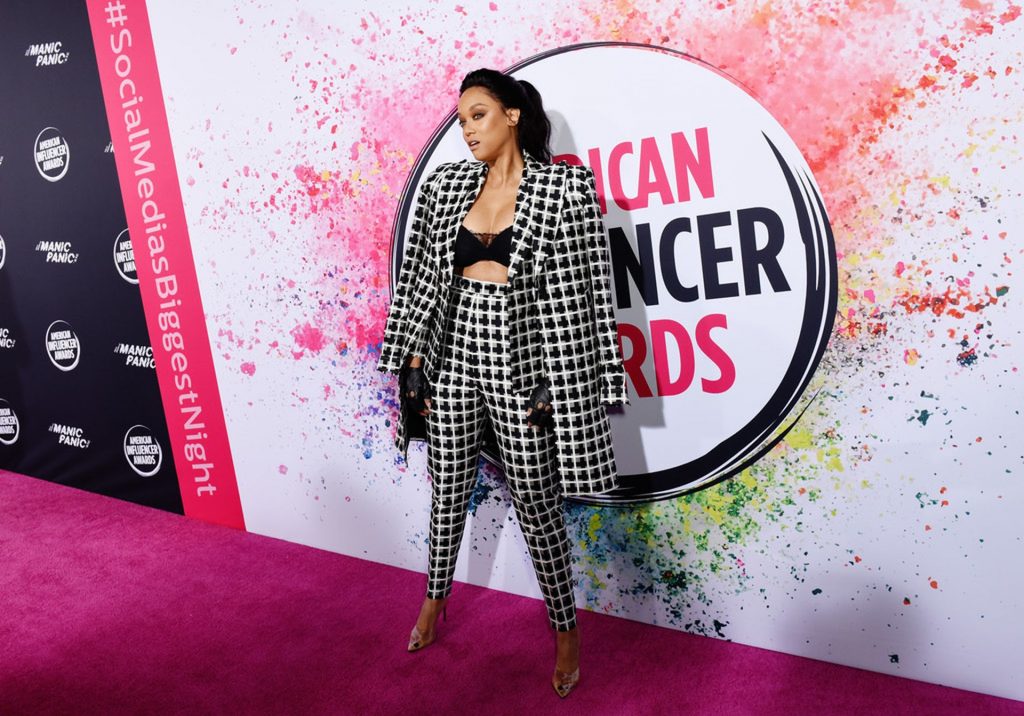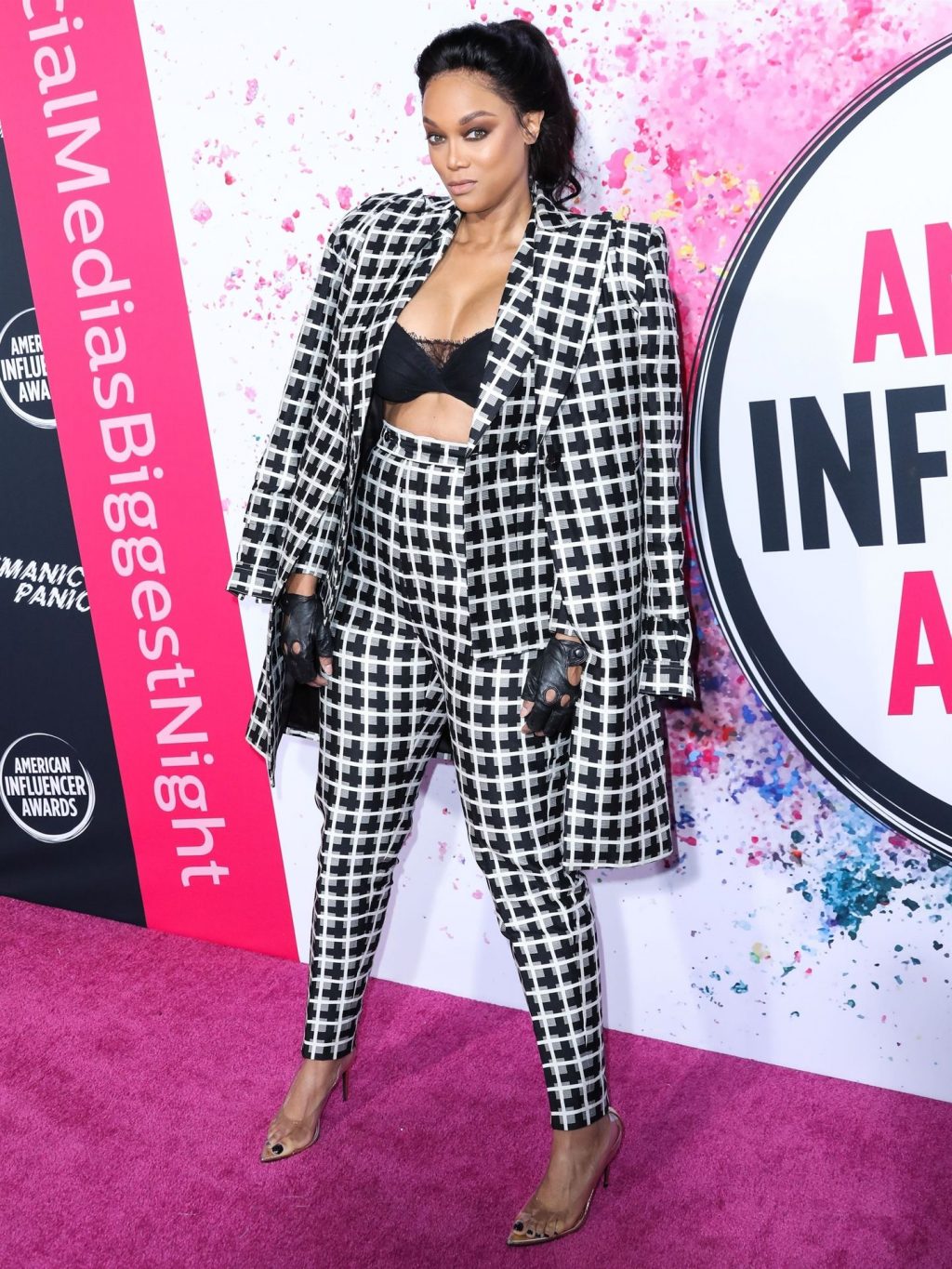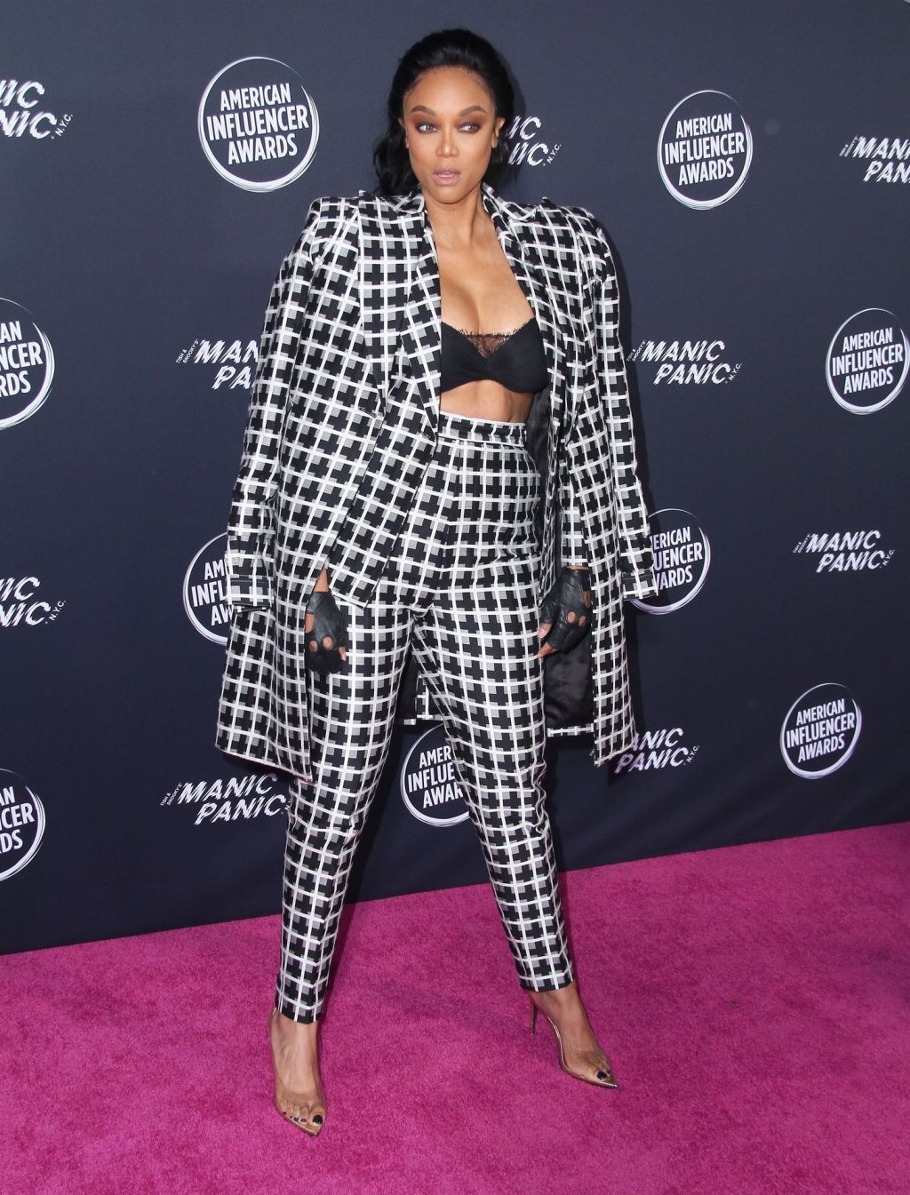 Model/modelo y actriz Tyra Banks mostró su bonito escote en la 2ª Edición Anual de los American Influencer Awards 2019 celebrada en el Dolby Theatre en Hollywood, 18/11/2019.